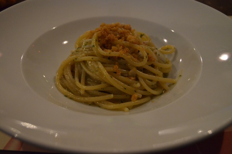 Actually, I had tried to walk in at 7pm, except the restaurant does not open for dinner service until 7:30pm. Oops. Once seated, the waitress started off about the menu in very rapid Italian, and apologized when I awkwardly volunteered, “…English?” because apparently I had said grazi like a local. I suppose there’s a silver lining in everything.