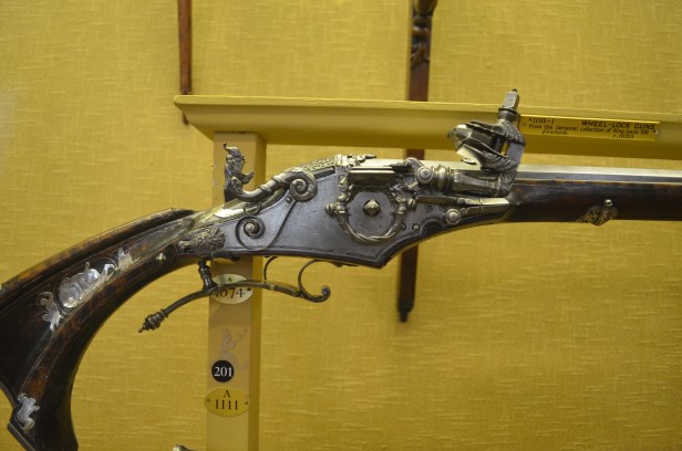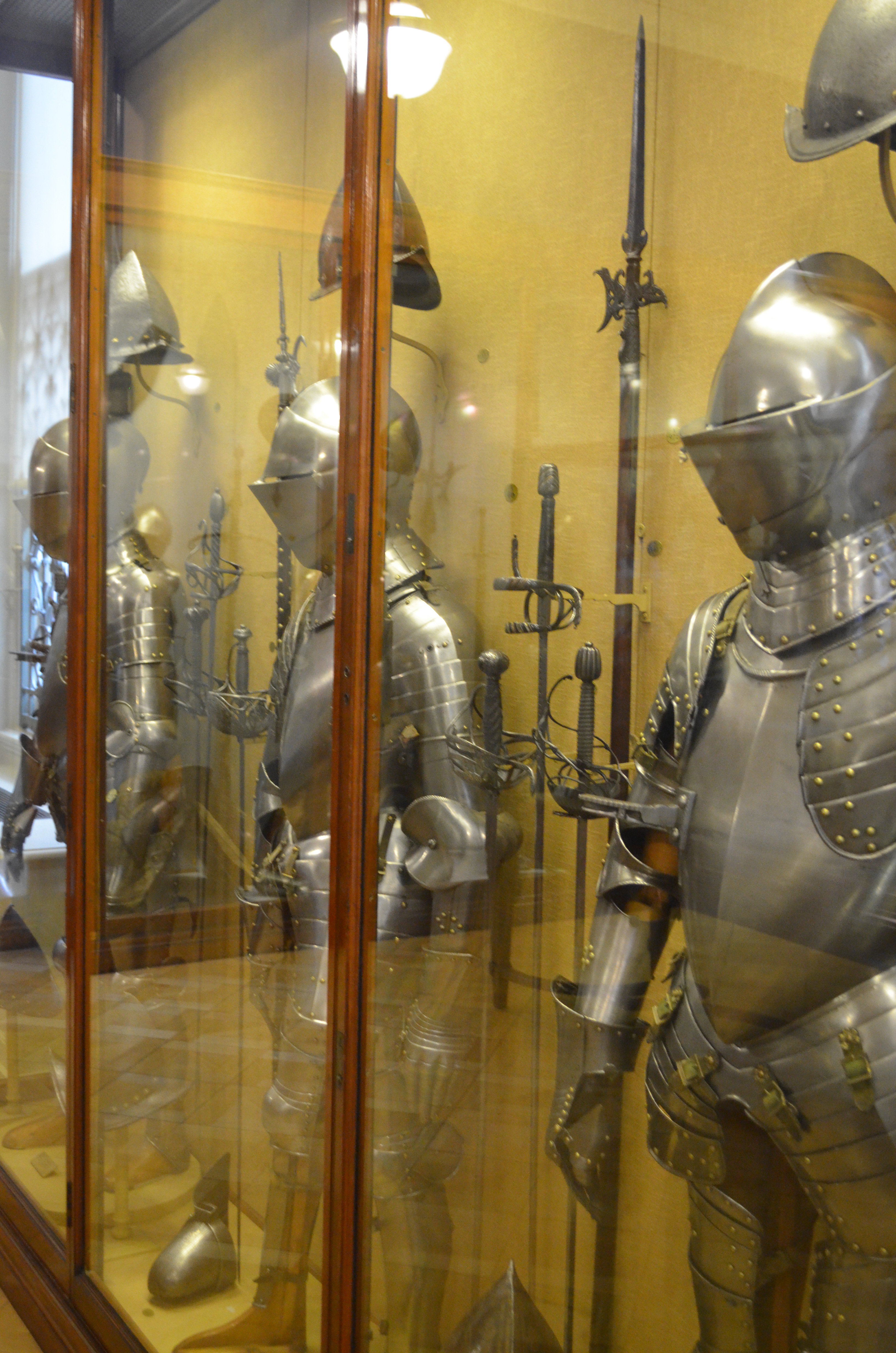 Just as, if not more, interesting as the artwork and furniture is the Arms and Armour department, a gallery of all sorts of knives, swords, shields, axes, maces, bows, mail, helms, full sets of armor for knights mounted and afoot, rifles, cannons.