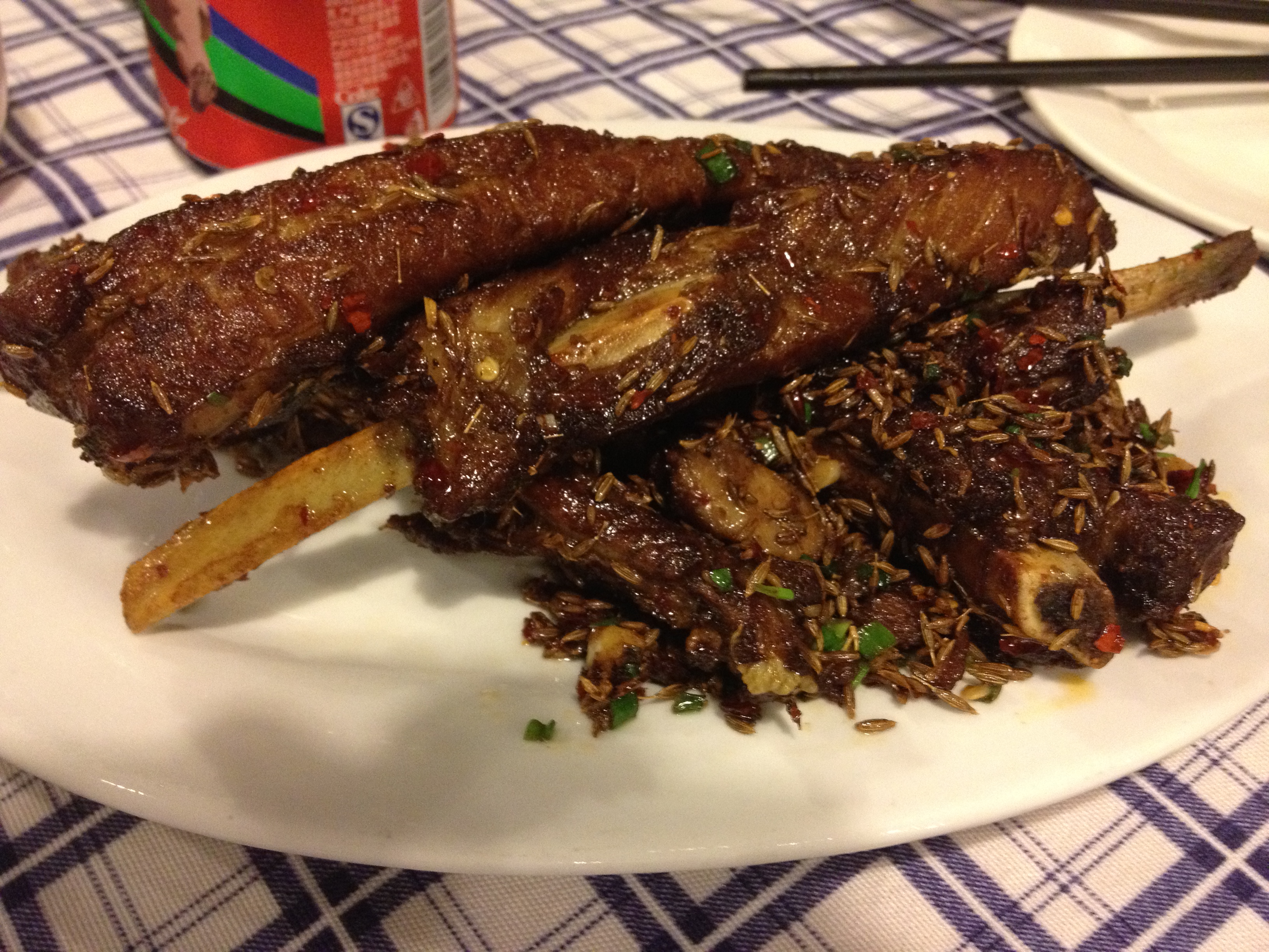 I’d been here once already in early February when I first visited Myra, and the spicy cuisine had helped warm our bones during a chilly Shanghai winter. We’d gotten a hotpot full of bamboo, tofu, and sliced pork belly, and had finished with a hot bowl of sugary glutinous rice balls (better than it sounds, although not necessarily more PG-13). Now that it was full-on summer, we didn’t need heat for heat’s sake, so our menu choices were a bit more about flavor and included a few chef’s classics that we hadn’t tried last time. Namely, the fried spareribs, smothered in cumin and other herbs, greasy and fall-off-the-bone tender.