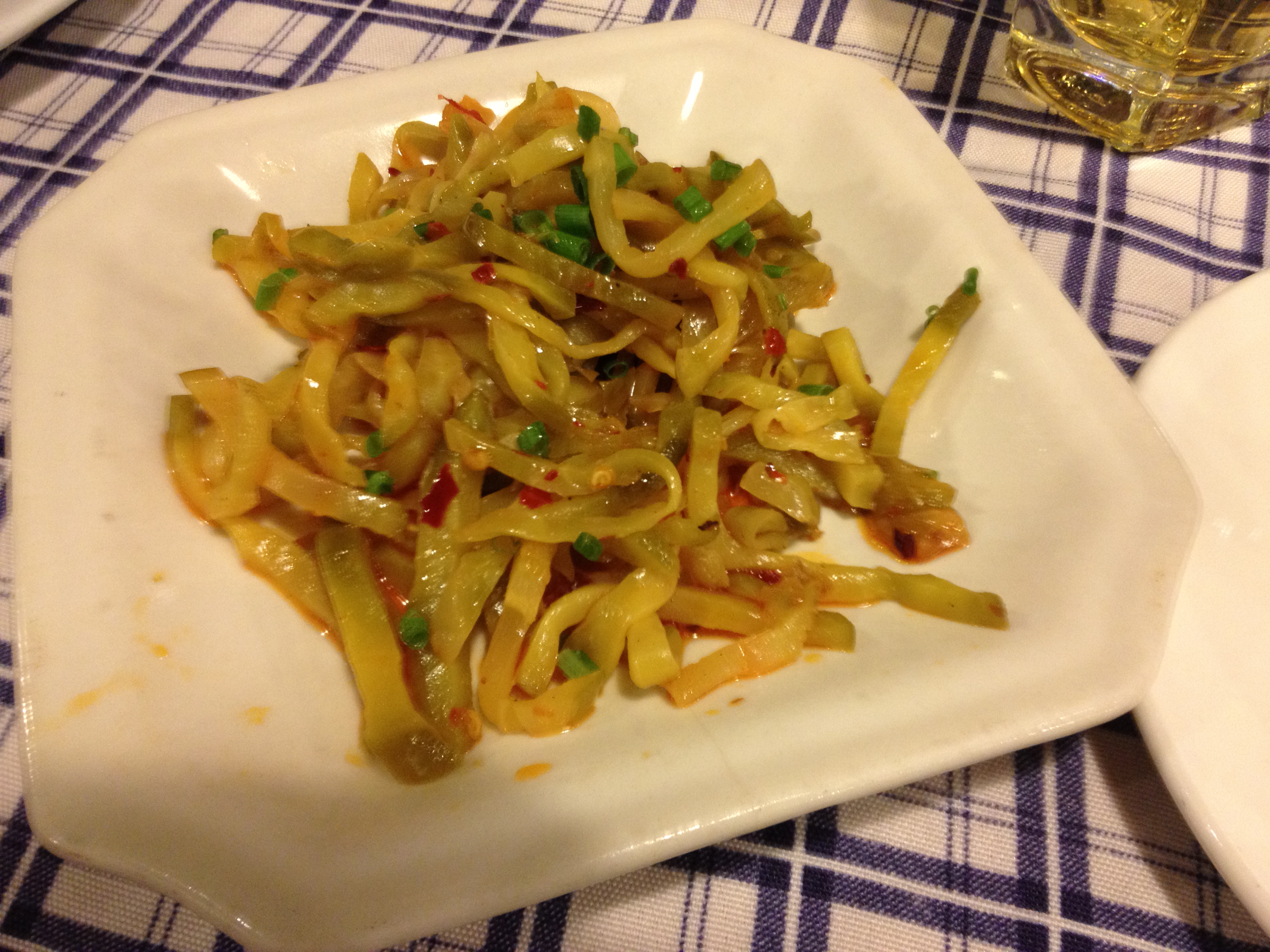 We had a few appetizers as well – pickled veggies, sliced pig ear (not pictured). It’s rare that zha cai, the pickled mustard plant that sustained many a Chinese kid’s childhood rice-heavy meals, would be on a menu, but when I saw it on Di Shui Dong’s menu, I felt obliged to order it out of some mix of curiosity and nostalgia. (It tasted fine, maybe even a little strange without the familiar twang of preservatives.)