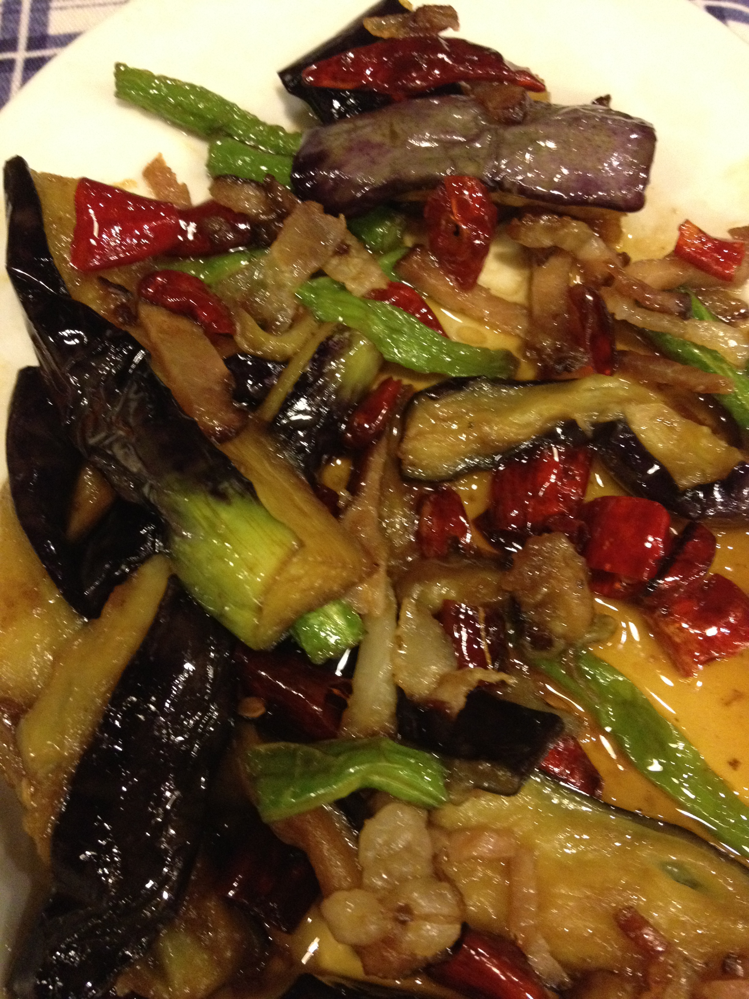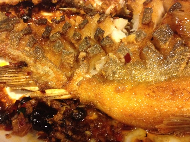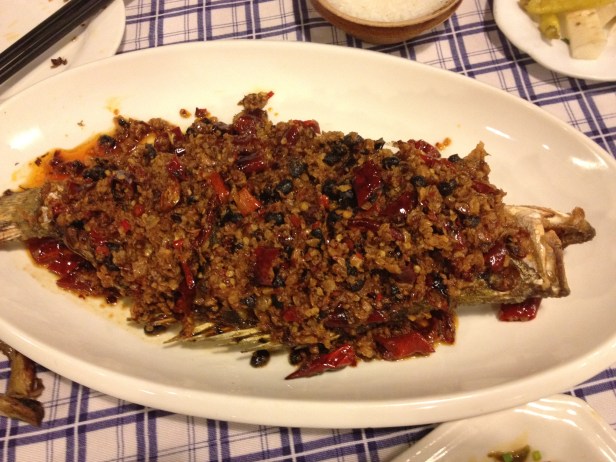 Then, some of our old favorites – sauteed eggplant and green beans, and fried fish with black bean and garlic sauce.