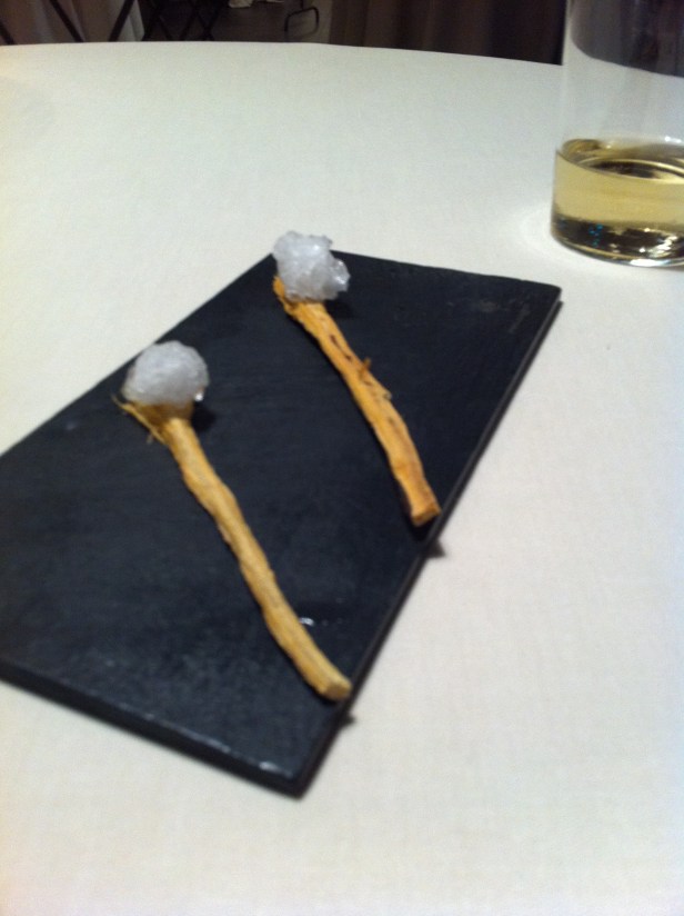 Still, I also couldn’t help but be excited by the novelty of what Mugaritz had to offer – and if I was being introspective at all, that kind of cash money just as well marked a commitment to higher forms of culinary experience, the price of admission to an exhibition of craft, an extravagant carnival of dishes and waiters, and for the possibility of encountering genius. Something like a cultural skydive. My rationalization, of course, but who’s to tell me otherwise?