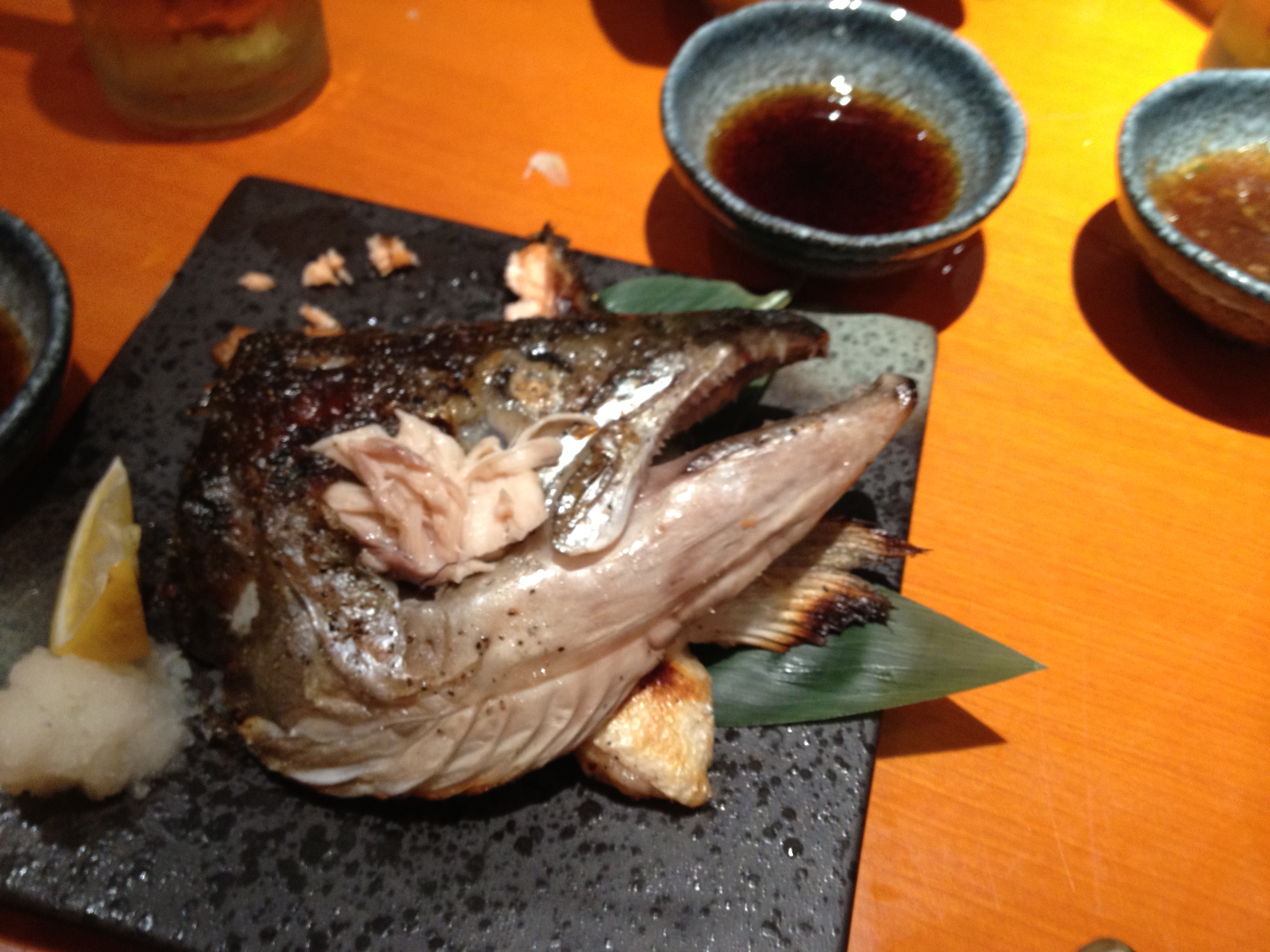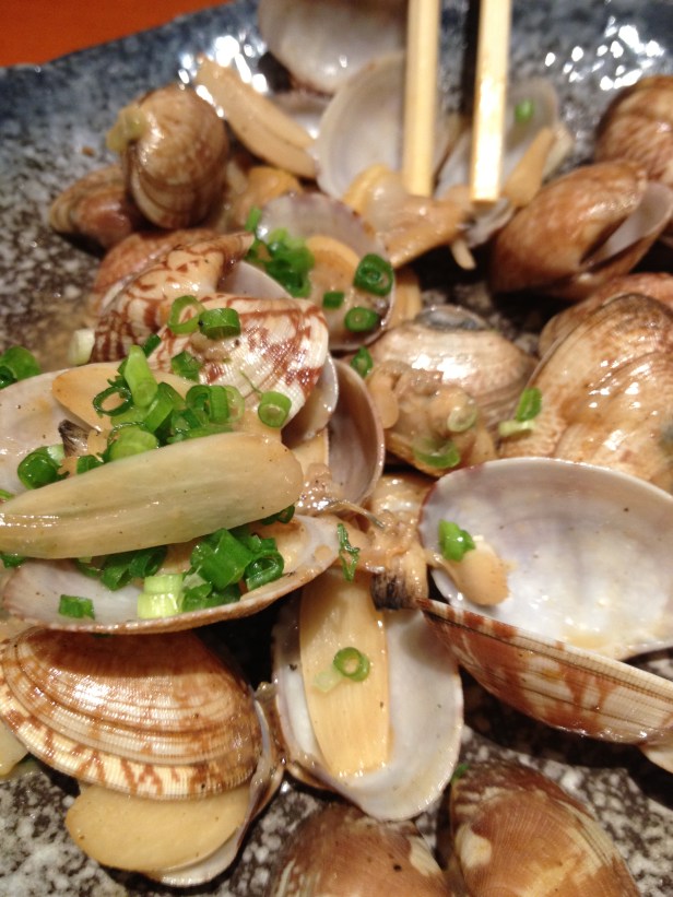 Essentially, the whole menu is fair game (except for the finer sushi and sashimi, namely toro and uni), so that included sushi and sashimi platters, yakitori, udon, sukiyaki, grilled fish, crab legs, clams, a few soup and salad selections, and so forth. And an almost-endless supply of Asahi and sake.