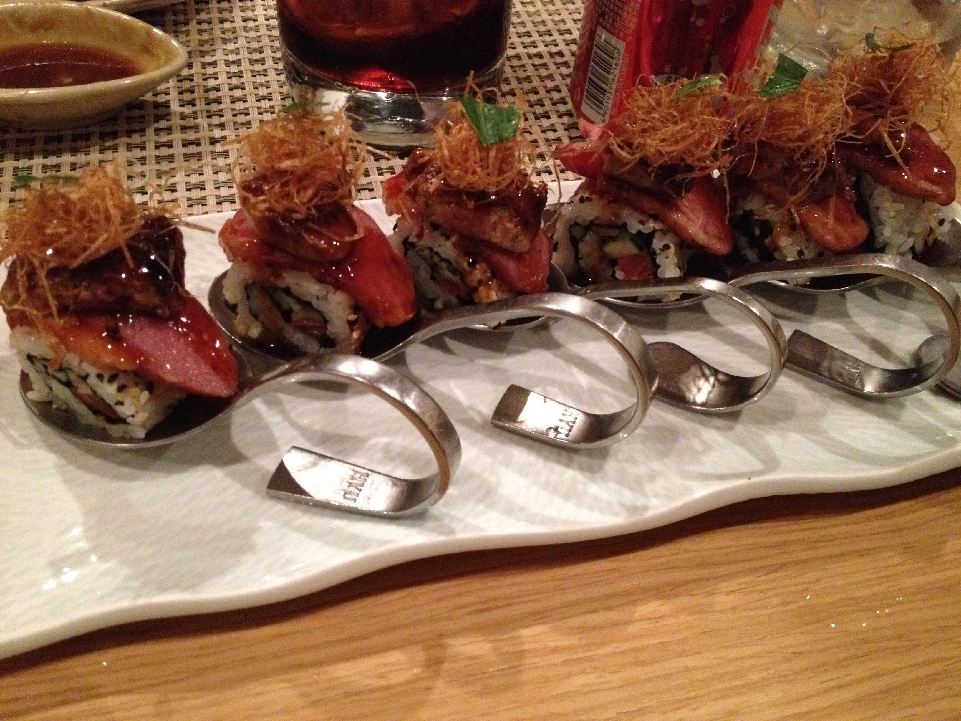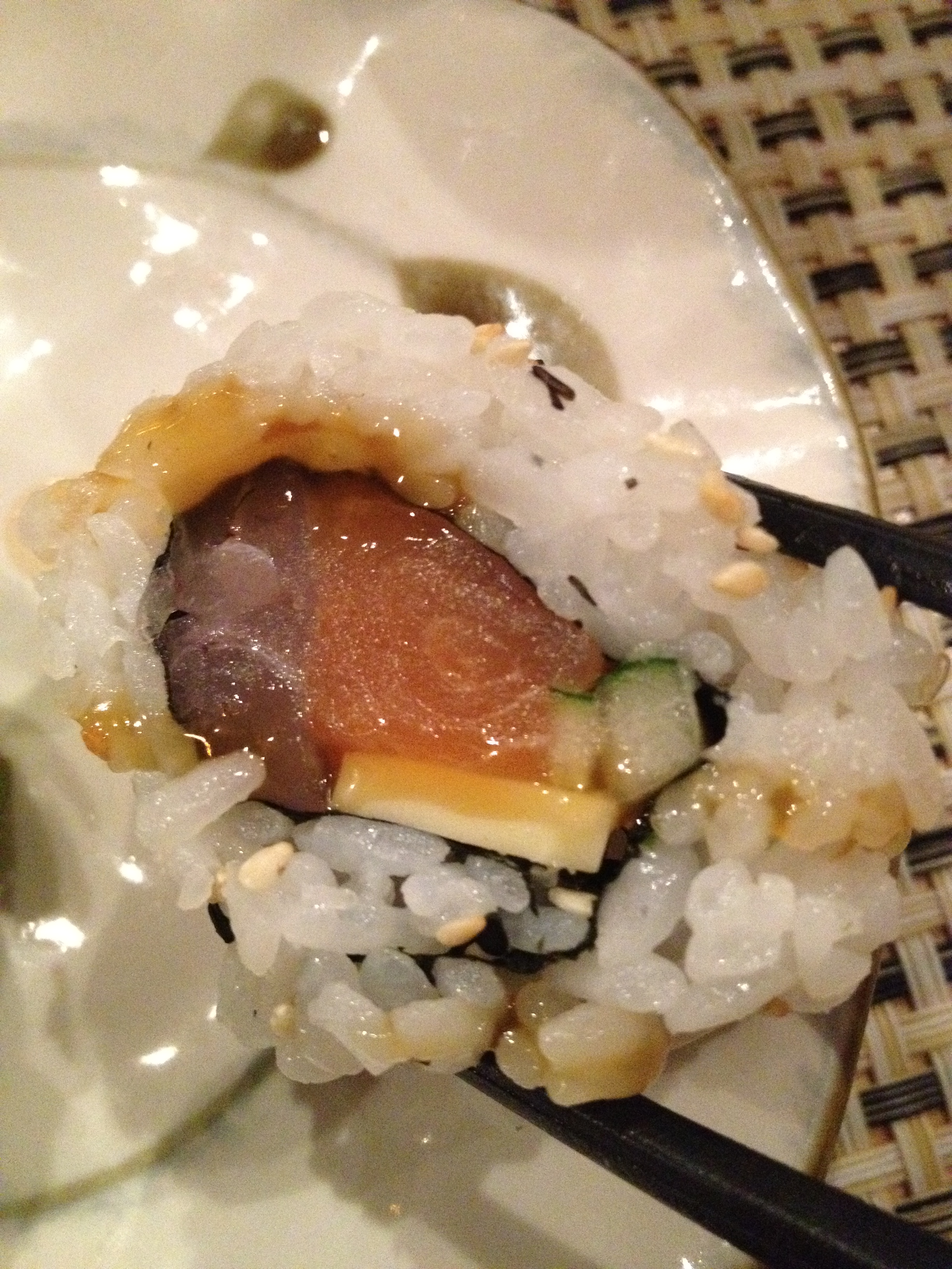 The seared beef maki roll, which came topped with caramelized onions, was also good, but not quite as memorable as the duck and foie gras combination.