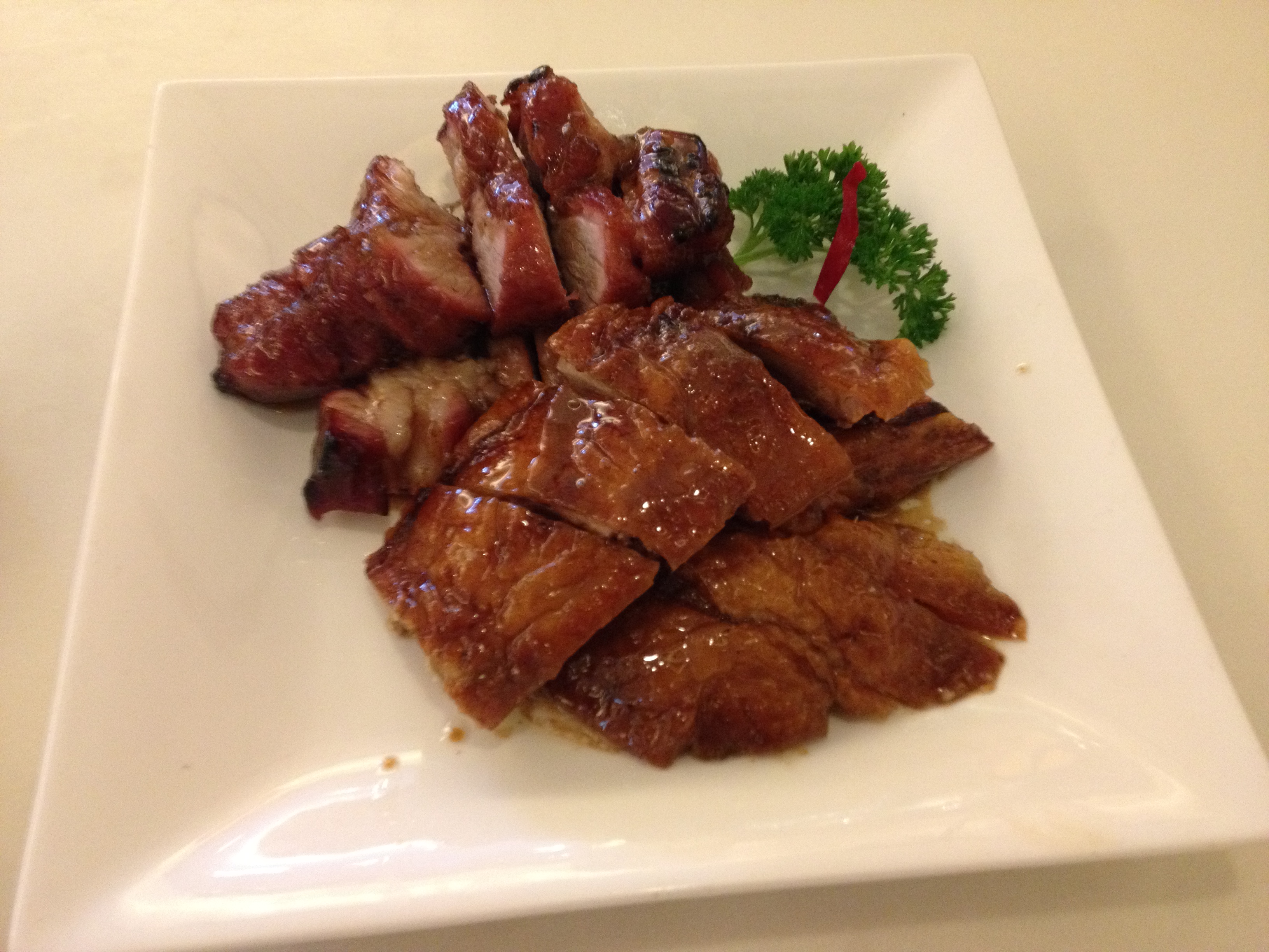 (1) Cha shao pork buns, Mexican custard buns, and coconut tart, (2) Malaysian beef stew curry with rice, (3) cha shao, crispy pork, roast duck (4) sizzling king prawns with fried noodles, (5) beef fried rice with XO sauce, and (6) tangerine limeade.