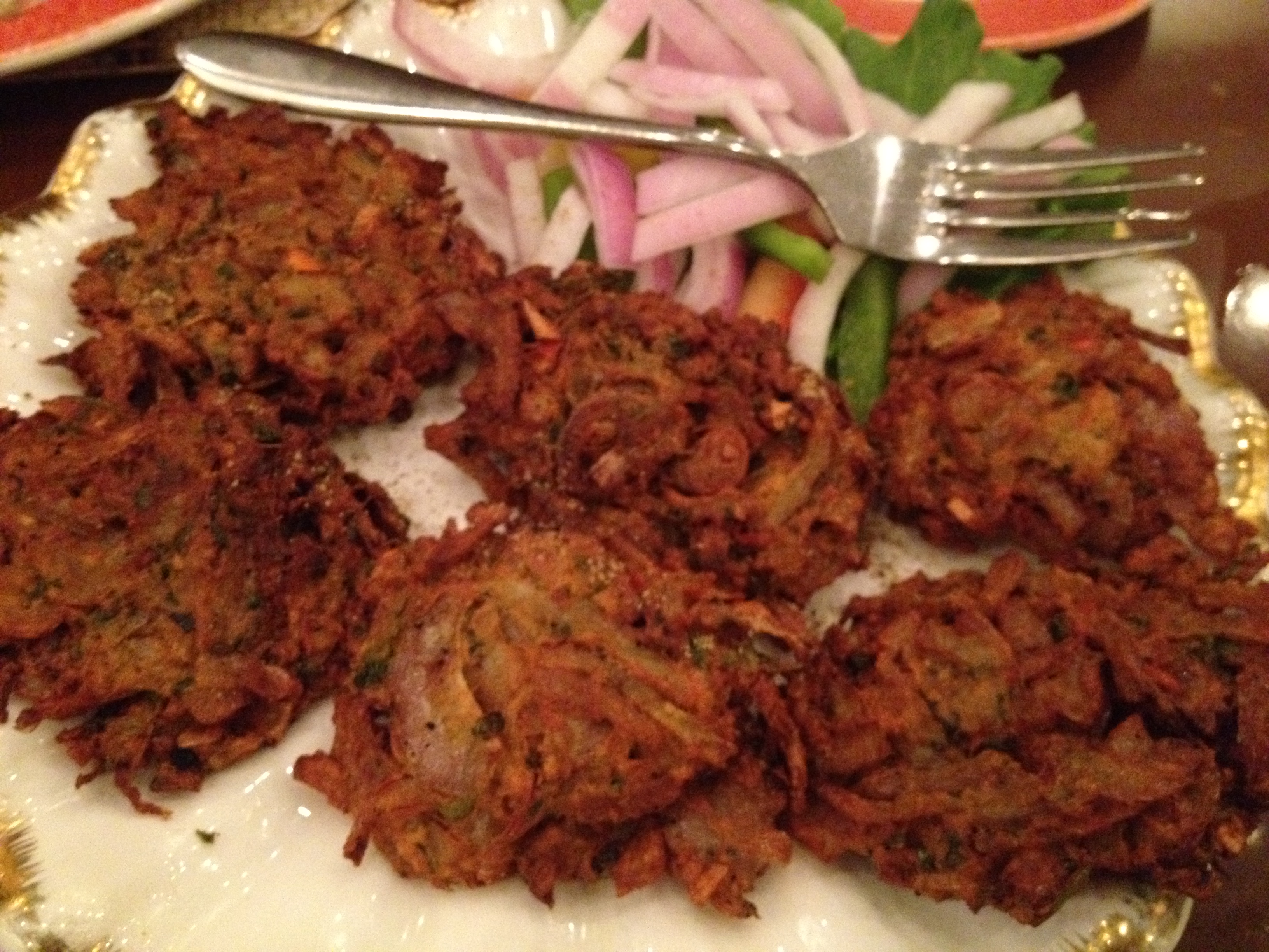 The bhajiya was probably my favorite dish of the night. I am a complete sucker for onions, and on top of my fondness for most fried things, the blend of spices had just enough kick to balance the dollops of tamarind chutney I added. Also, I relish the implied freedom and bravado of devouring raw onions, which is basically playing a practical joke on whoever you happen to be with, except that it’s a really drawn out and the other person knows she’s part of it the whole time. So I ate a whole bunch of onions.