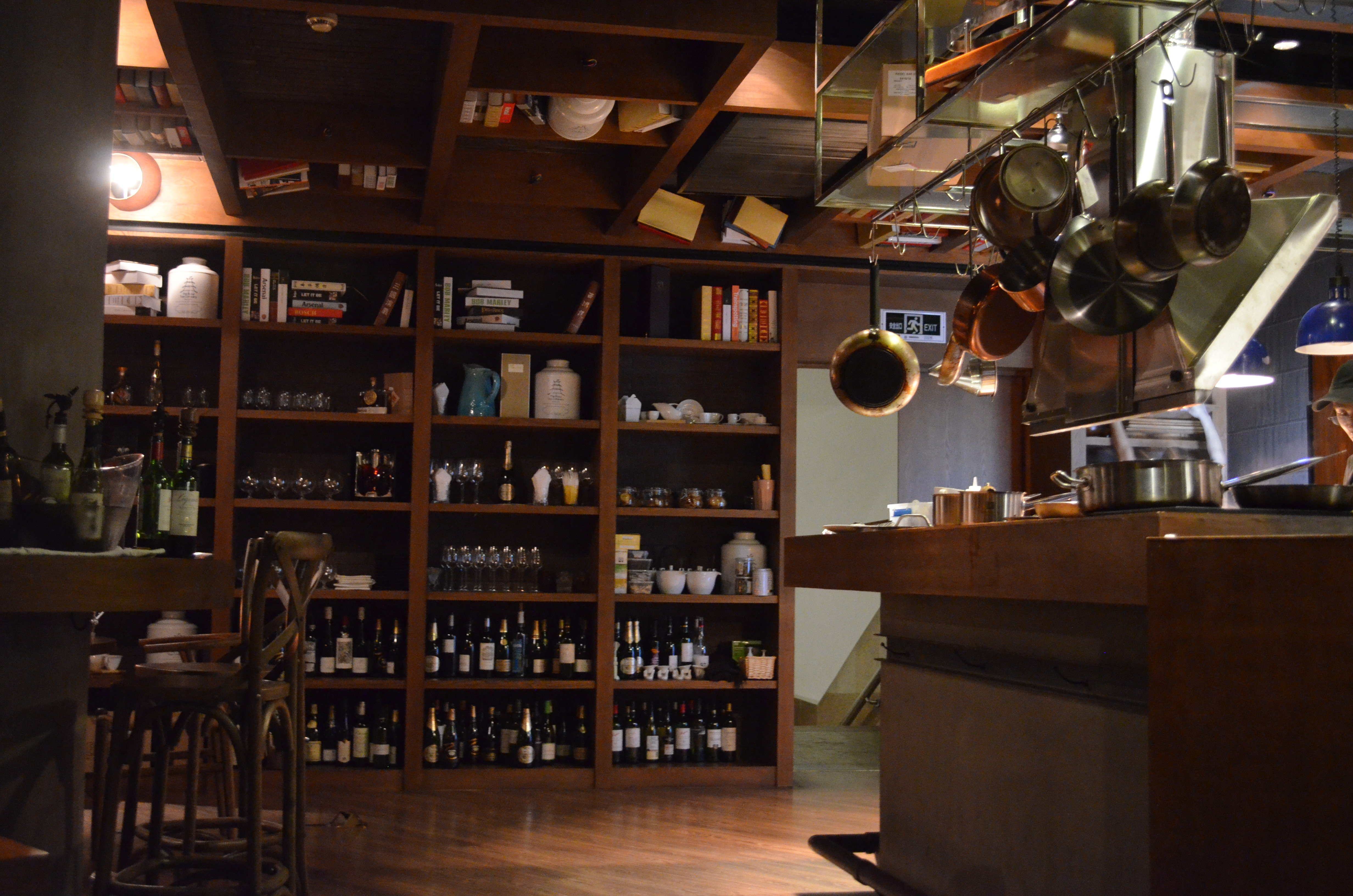 Sometimes you just root for a restaurant to survive. I’m rooting for Bouquet, a new wine bar with an eclectic menu of cold appetizers, salads, a few chef’s specials, mostly of Western influence. What’s visually nice is the glisten of the open kitchen on one end as you walk in, and throughout the rest of the space, varying degrees of hushed restraint, like a spacious mix of evening treehouse, Victorian library, and osteria. The trouble for Bouquet is that it’s back on the third floor of a Chinese bookstore, a half-block off a main street that gets plenty of foot traffic but mainly in transit. So I’m rooting for the place.