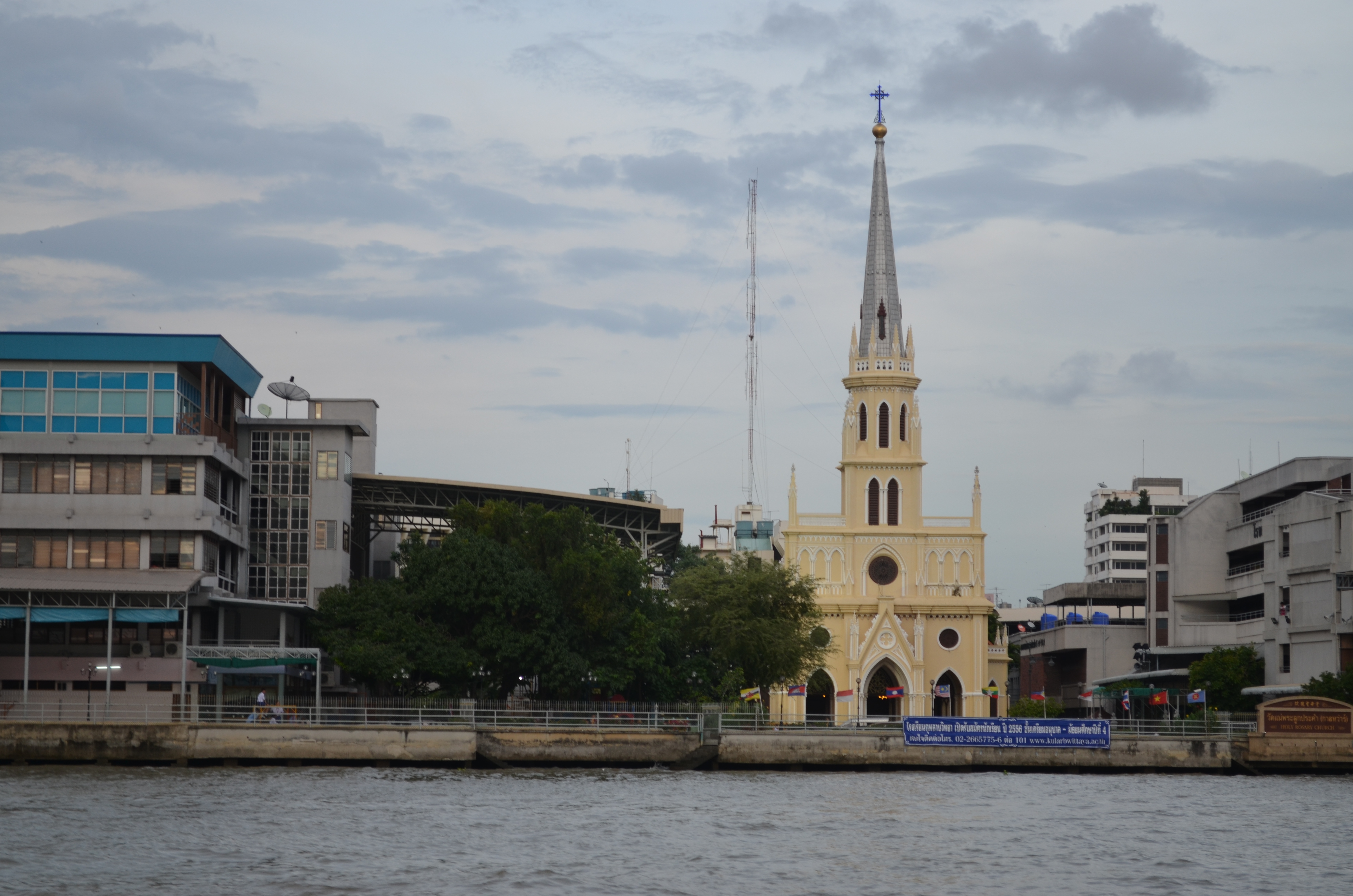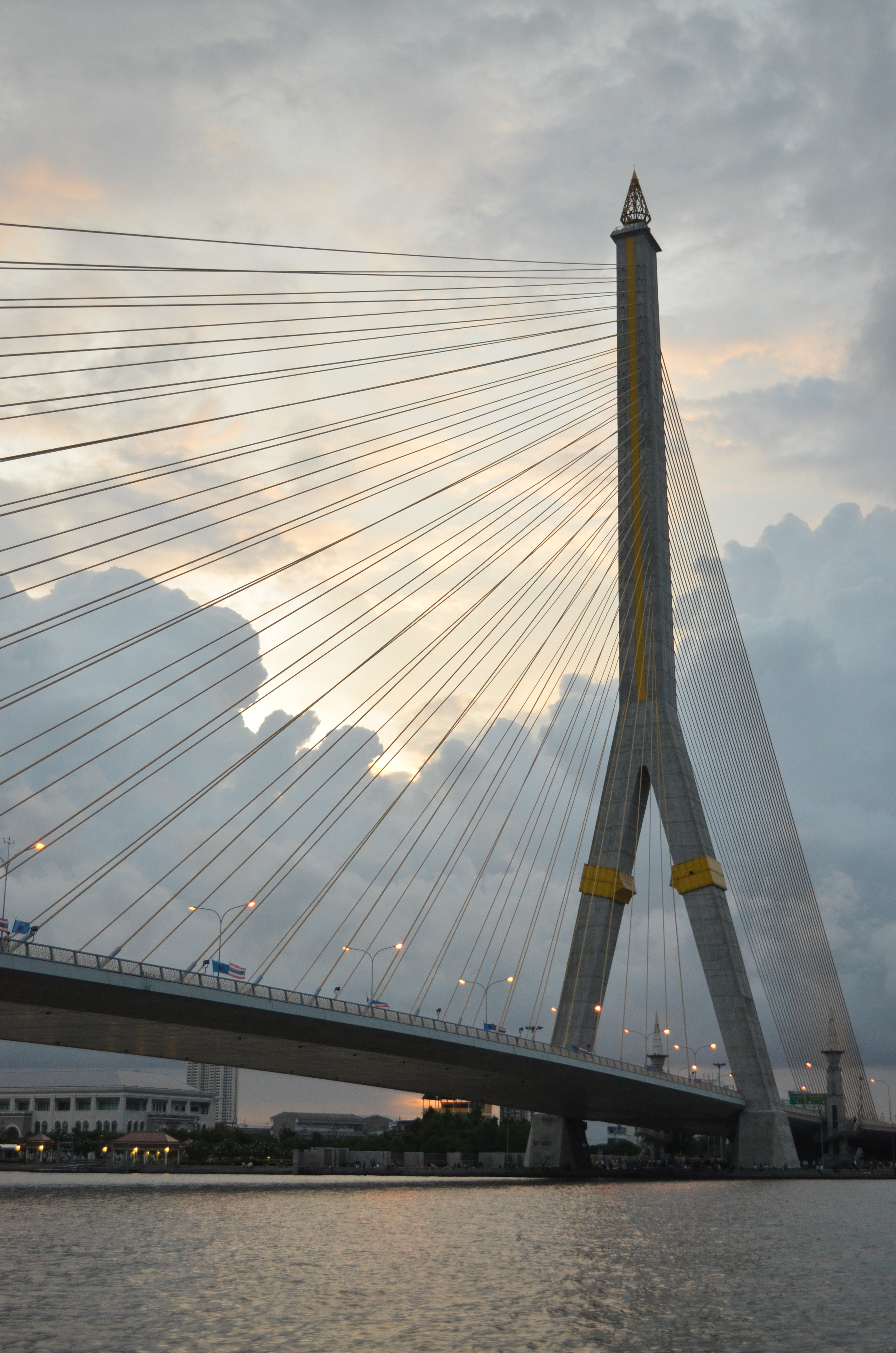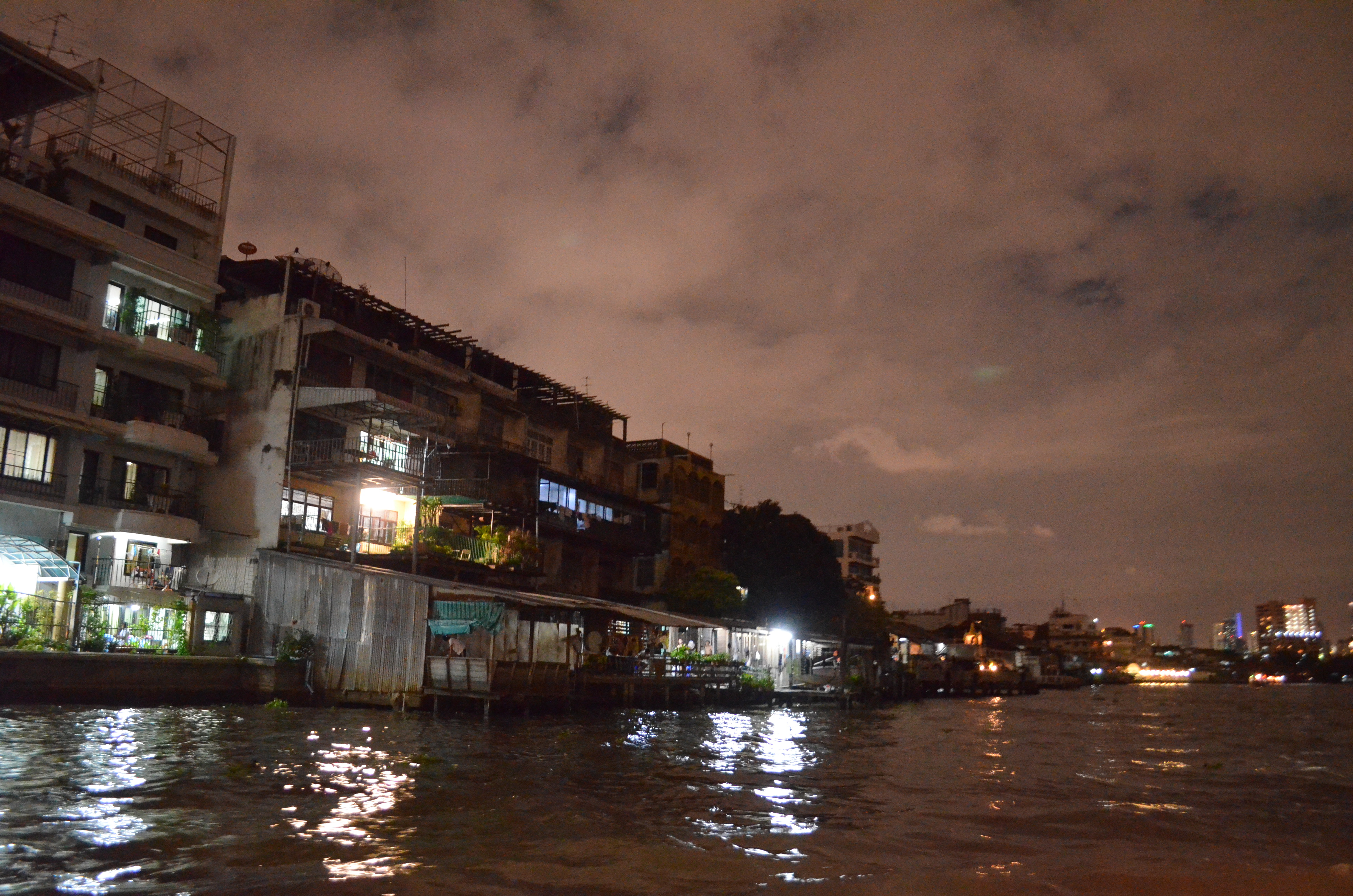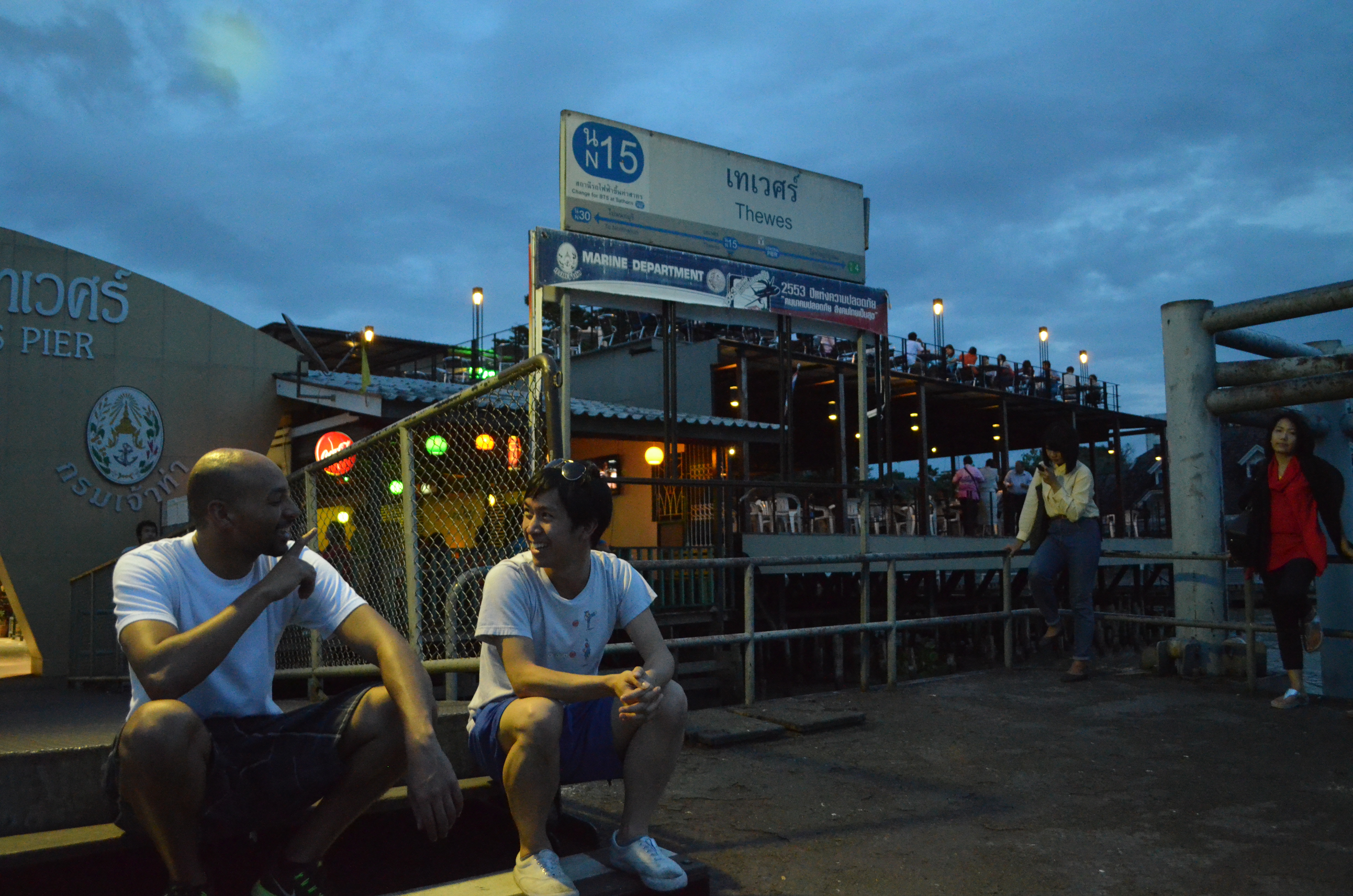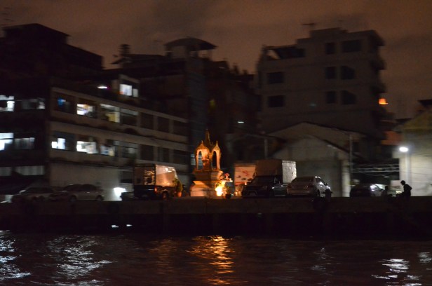 Last week, a few friends and I hopped on the orange line of the Chao Phraya Express Boat at Sathon Pier, near the Thaksin BTS station, and headed upriver around dusk to the Thewes Pier station just north of the magnificent Rama VIII bridge, and back south again after sunset.