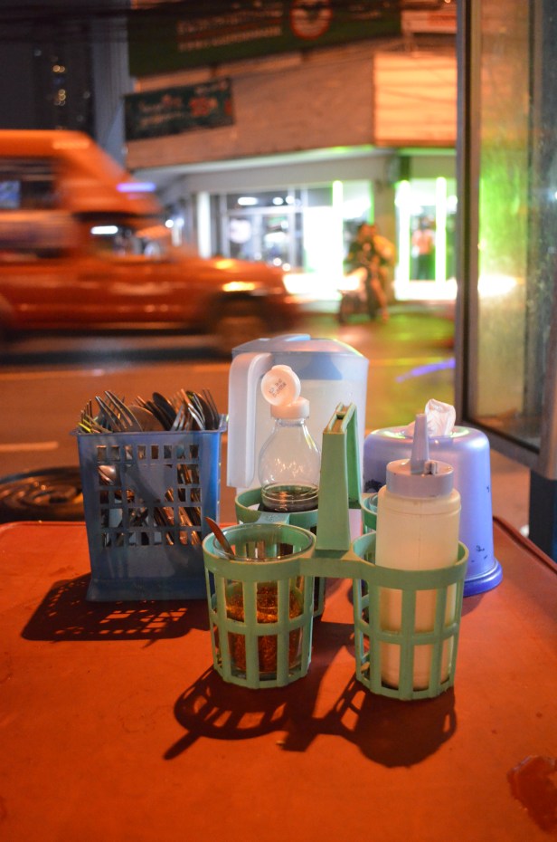 On top of that: the surrealism of being in Bangkok on a Tuesday night in late August, chowing on street food at a rickety table on a drenched sidewalk under a sprawling tarp next to a stall of bubbling broth and piles of rice noodles. It was hard to shake the smile from my face and the spreading warmth of happiness that could also have well been because of the noodle soup.