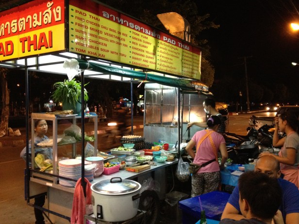 When we moved onto Chiang Mai a few days later, and needed a quick bite before touristing it up at a weeknight Muay Thai fight (where we unsurprisingly lost 600 baht of wagers and also had to buy our effeminate Thai bookie a large Singha beer), we also ended up on a street corner lined with food stalls.