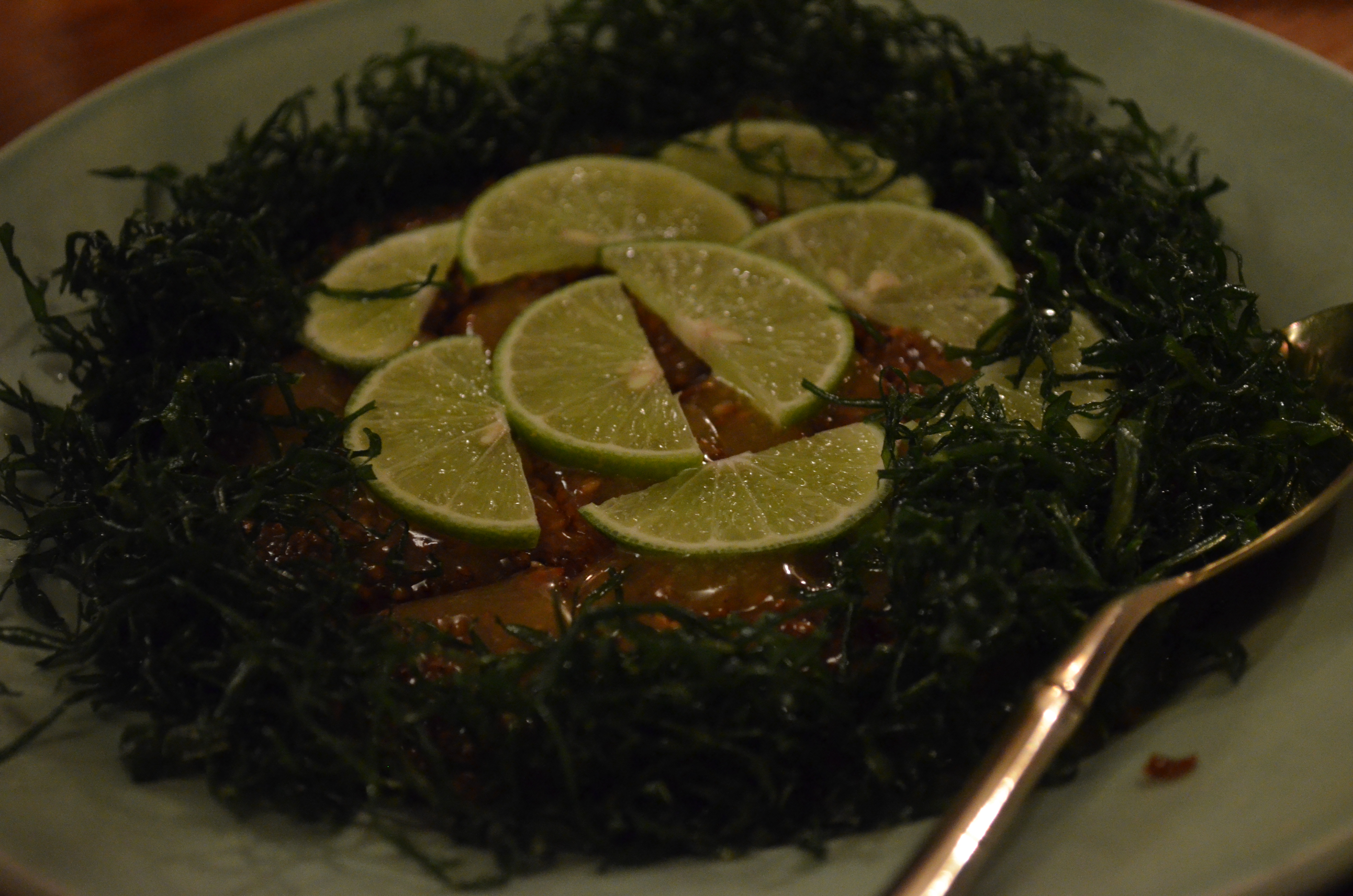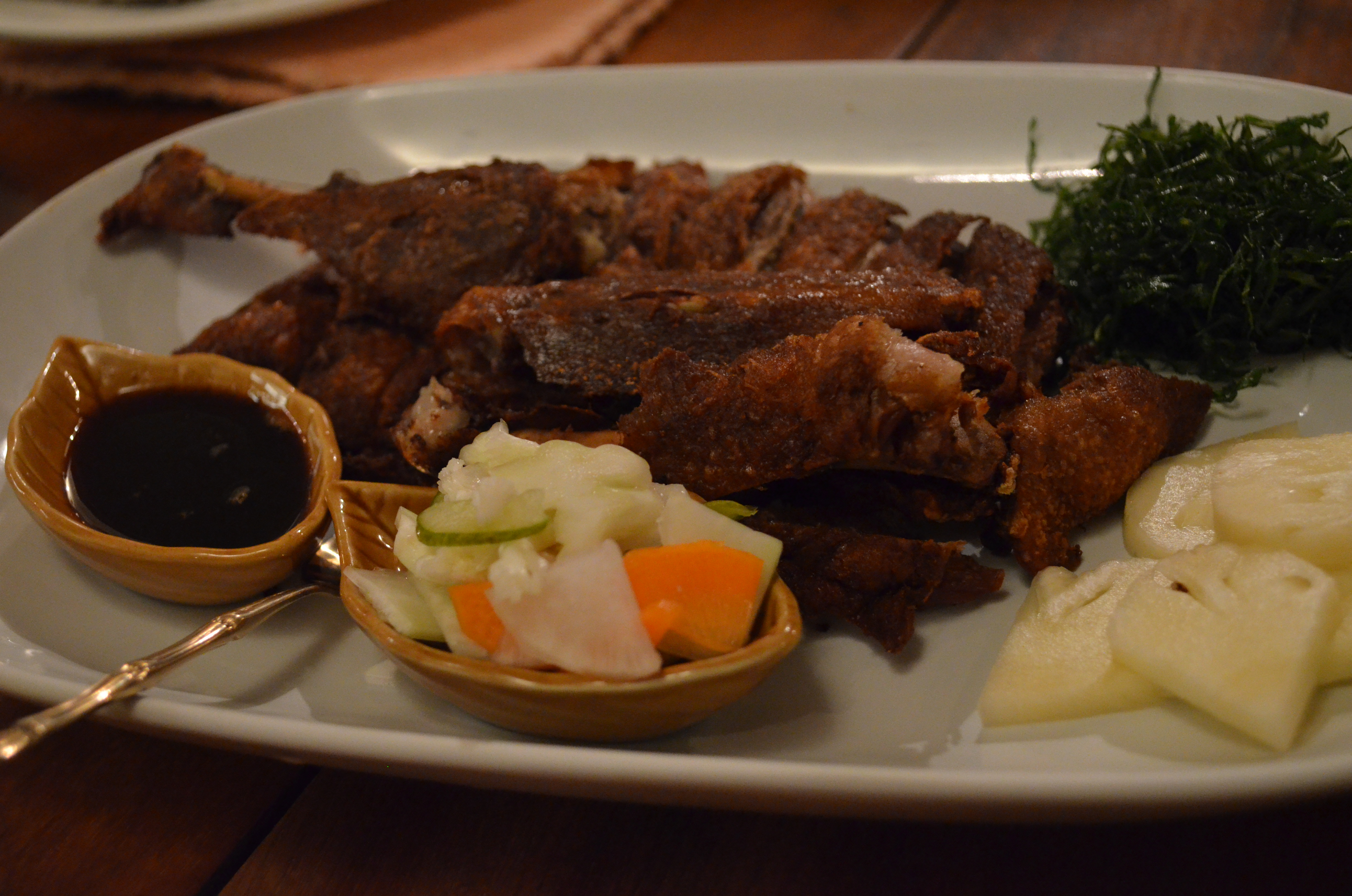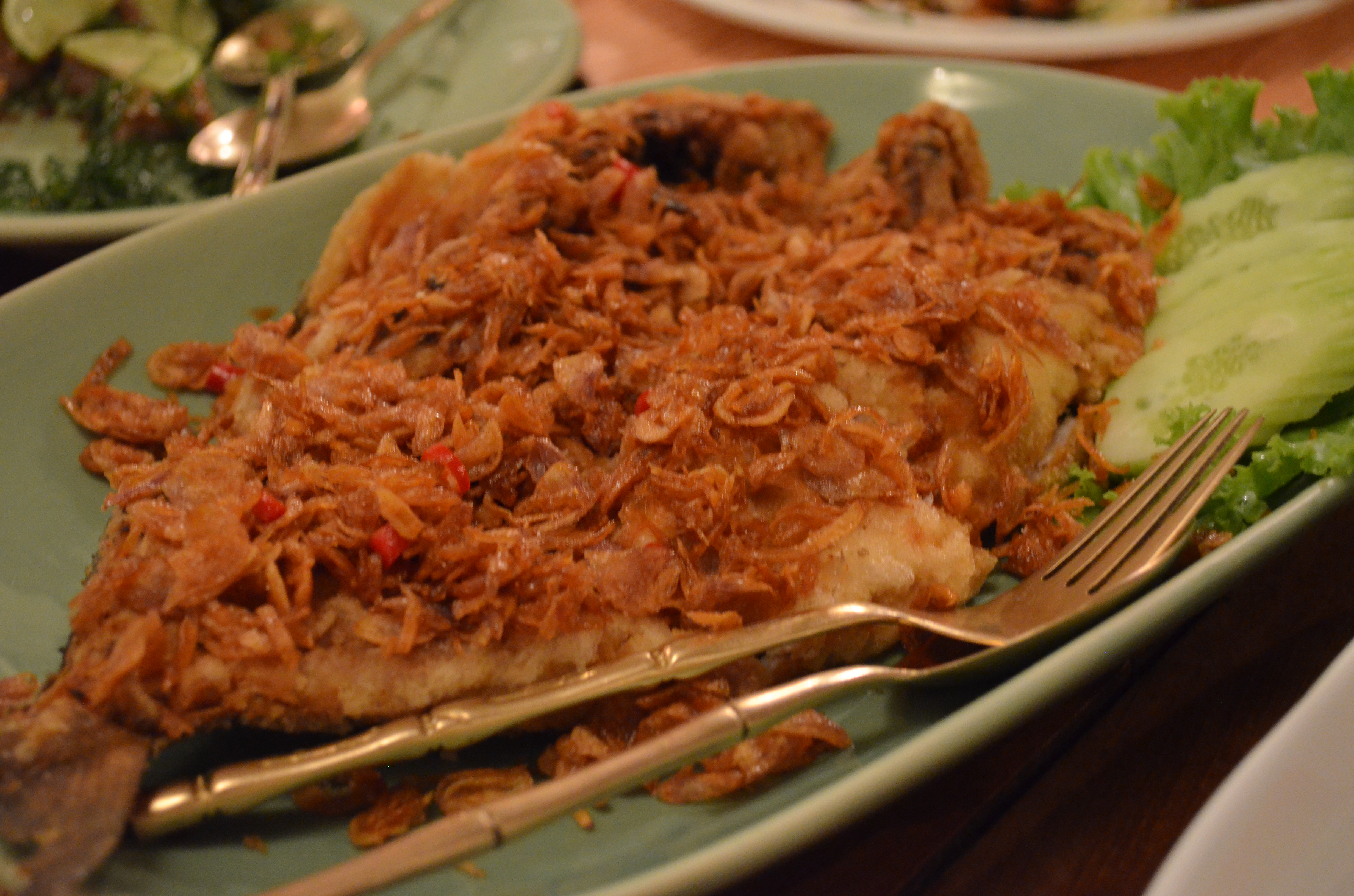 We also had crispy duck, a breaded-and-fried and glazed dish with limes whose minced meat I can’t recall (whether it was chicken or fish or otherwise), and a fried fish topped with garlic and chilis.
