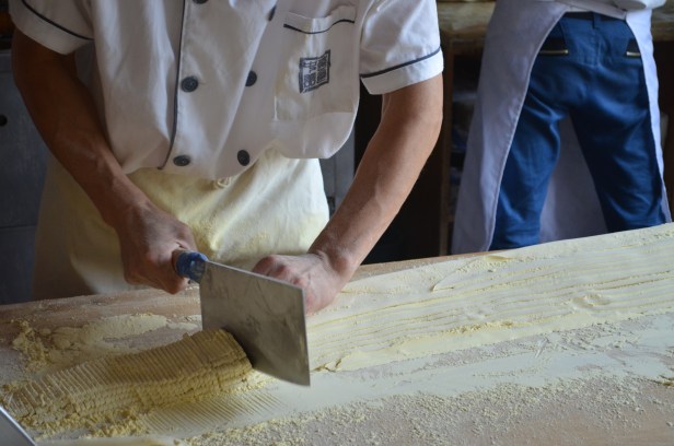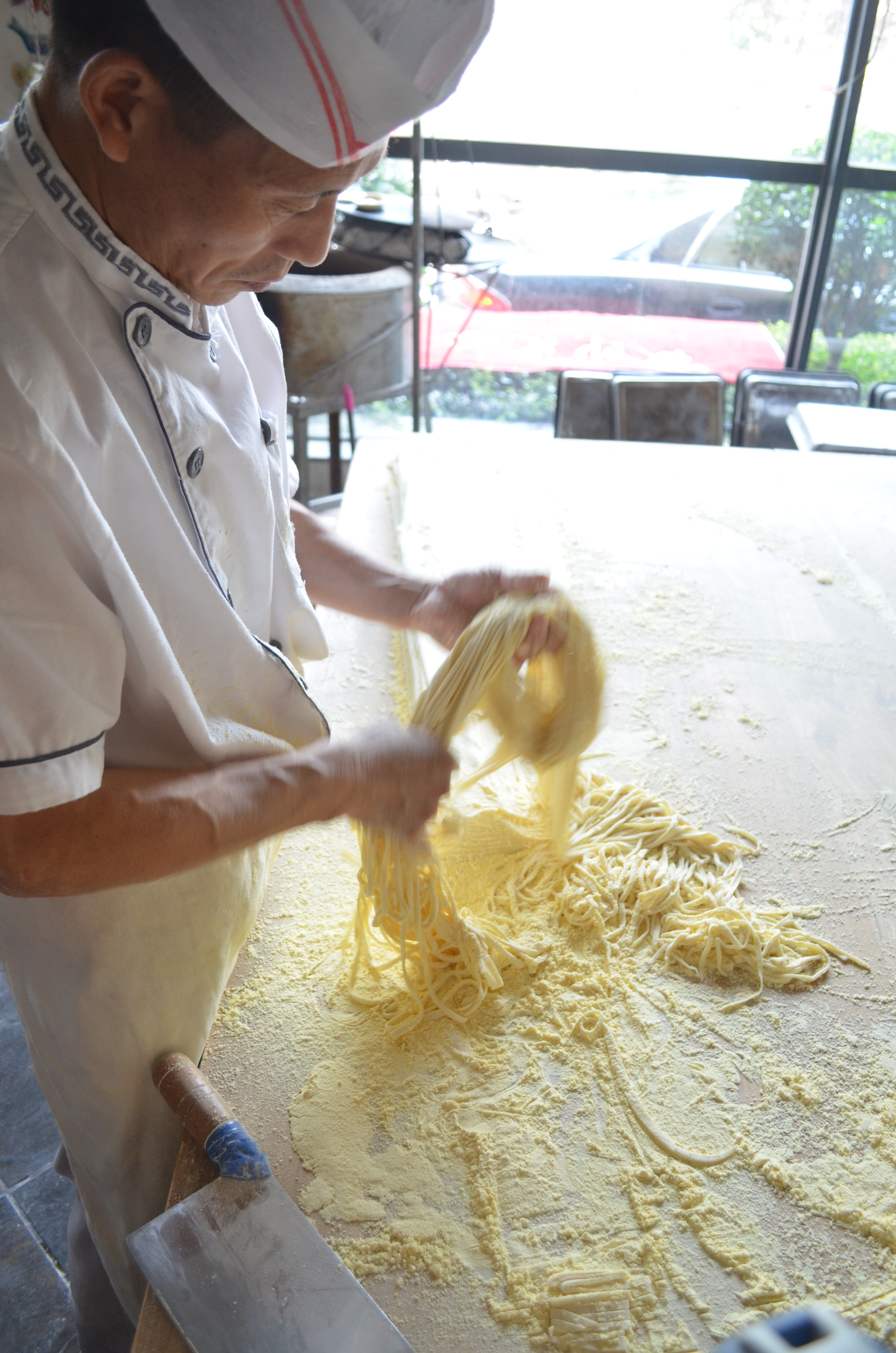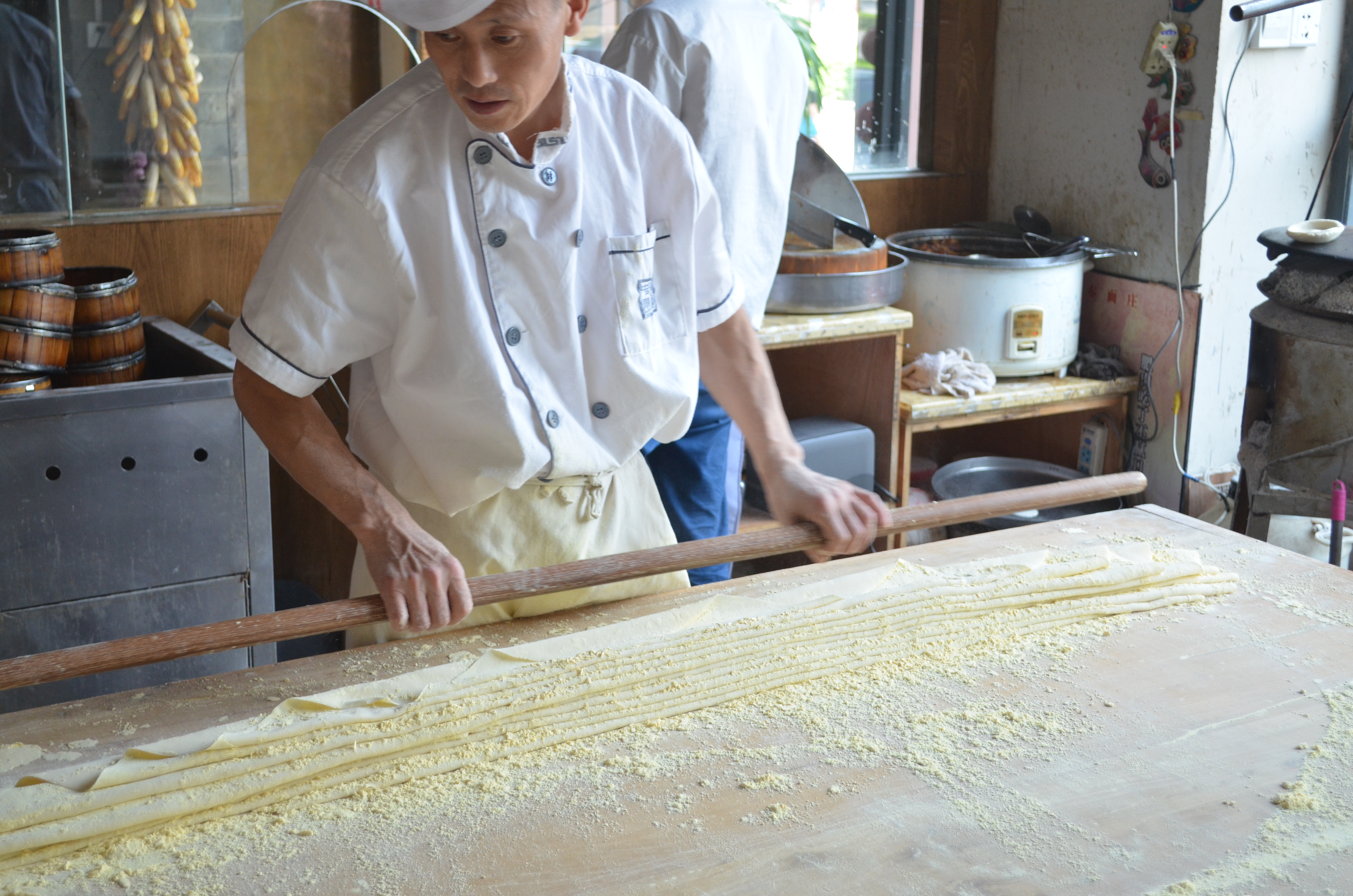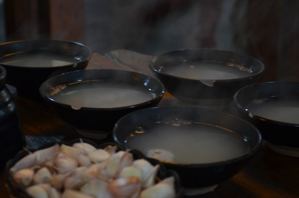 Te next day, before our flight back to Shanghai, our tour guide Kathy took us to a Xi’an-style cut noodle (dao xiao mian) shop. You drink the noodle broth separately, and peel and take little bites of raw garlic cloves as you eat the noodles.