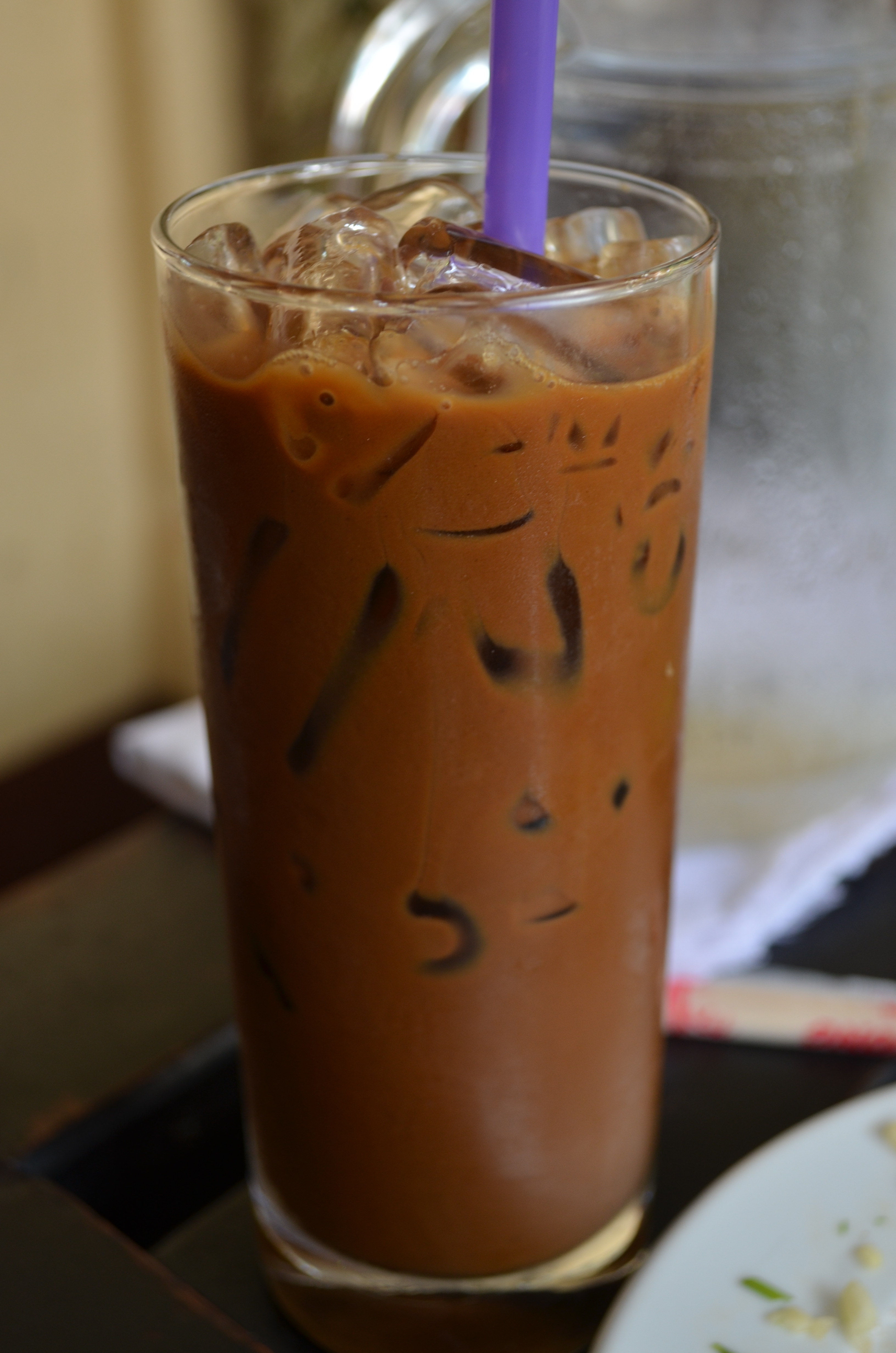 I finished with a tall glass of iced coffee – the lady brought out the tupperware of glistening coffee grounds and explained that the beans were hand-picked from the nearby forests and then roasted in woks. It was hard to tell how much coffee she put in (most likely a lot, because I was wired afterwards) but the taste is delightfully mellowed by heavy doses of condensed milk.