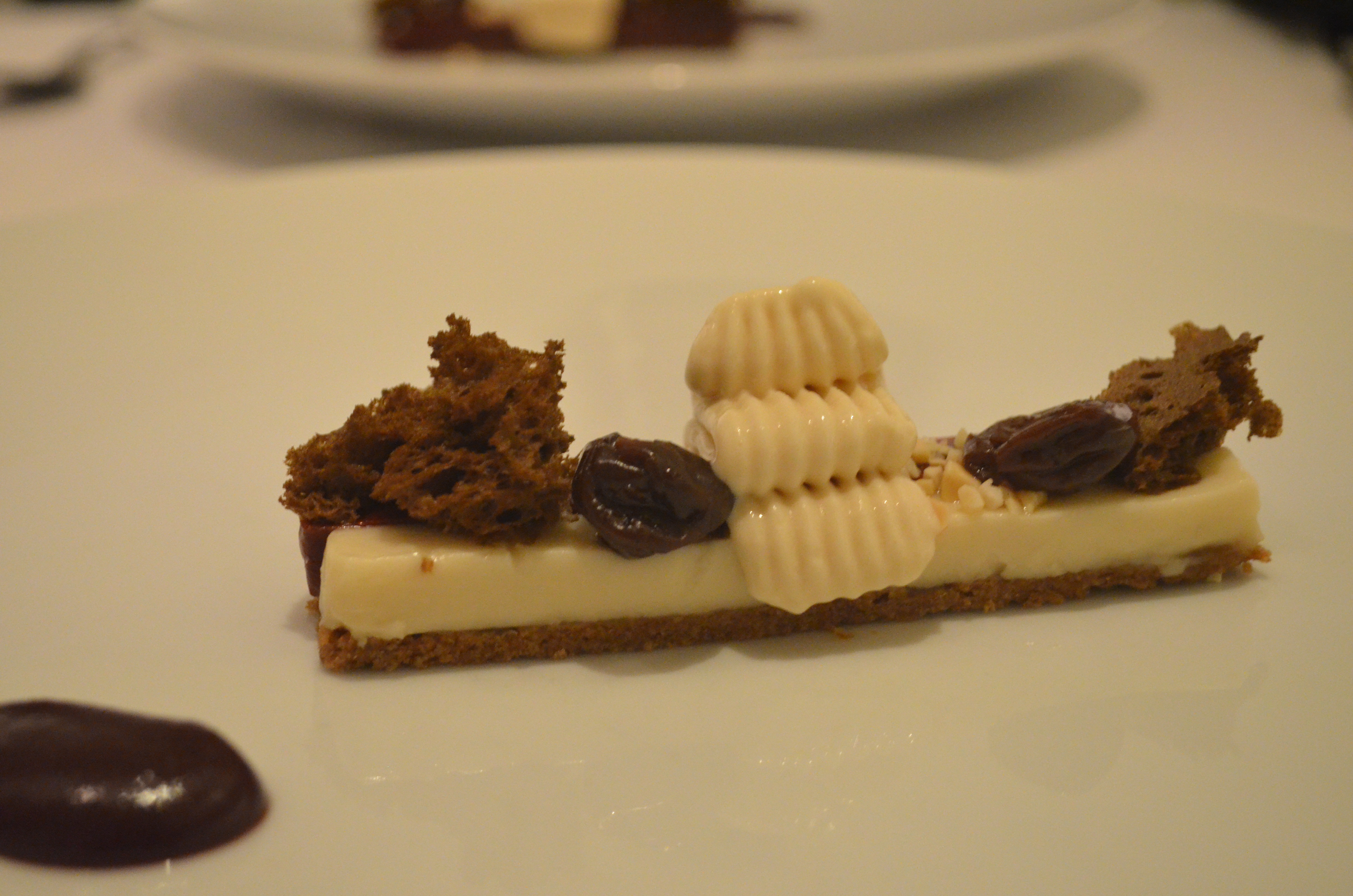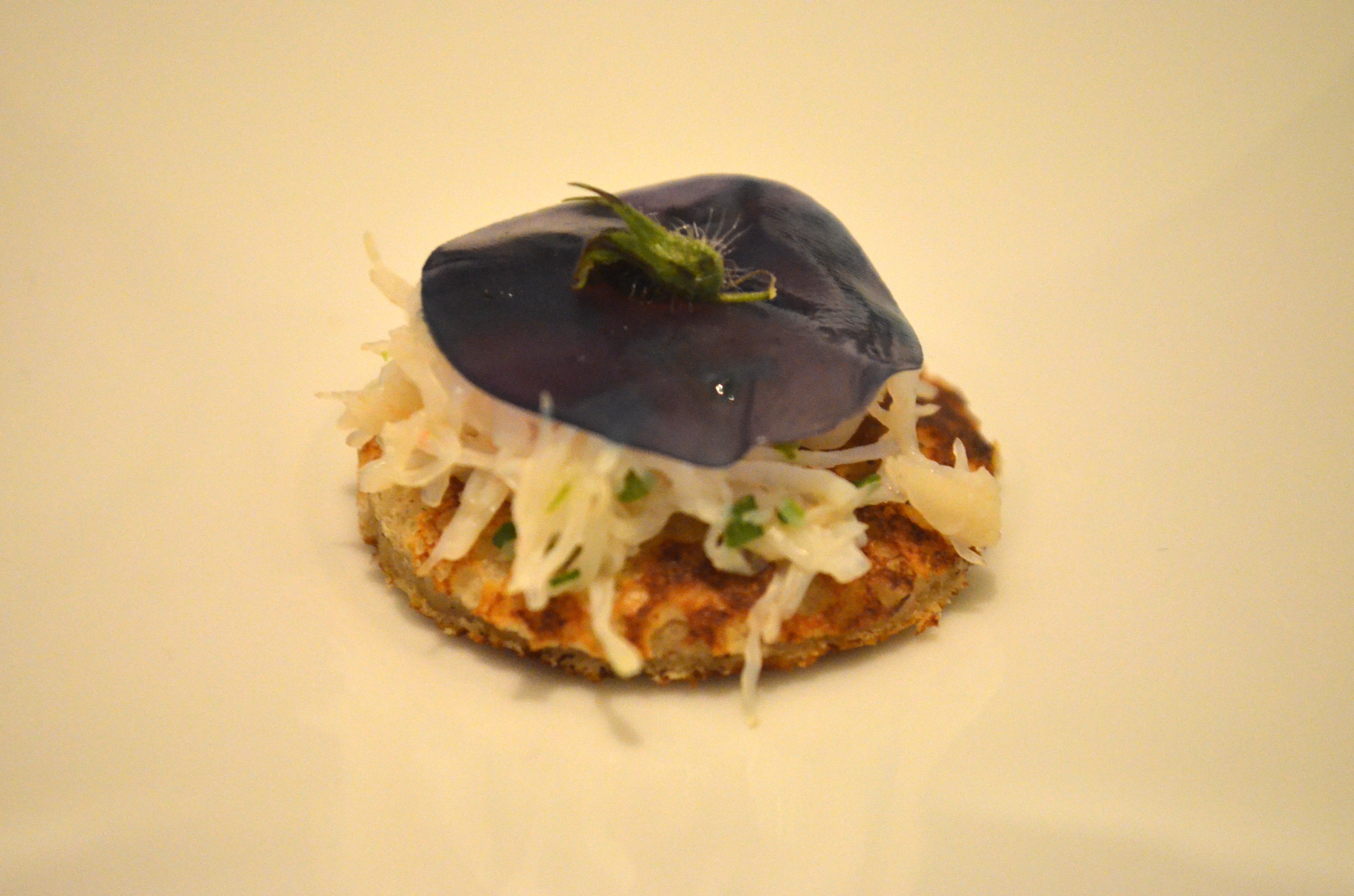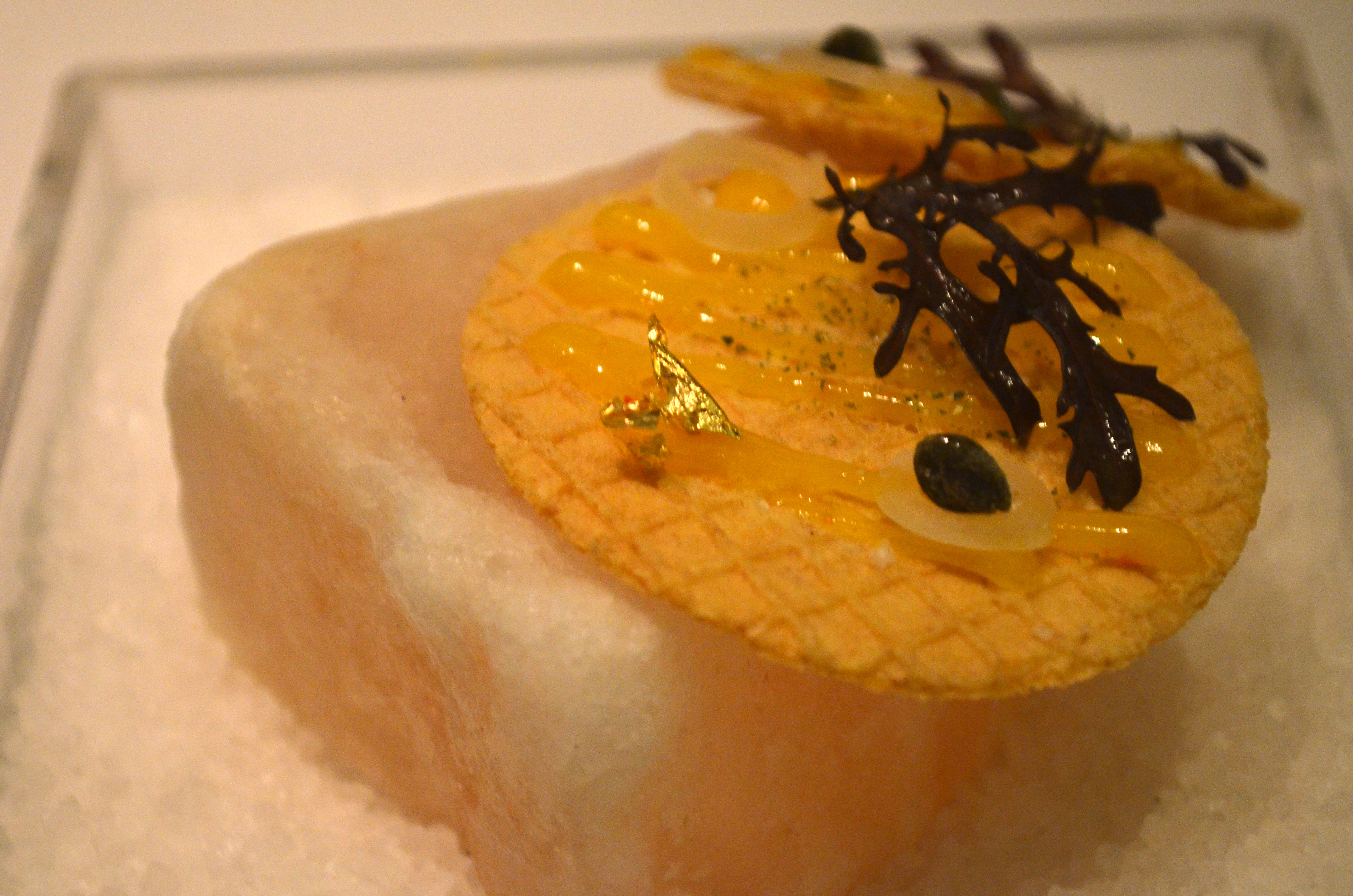 One of the amuse-bouche, really just a morsel of (potato) cracker, was filled with a rich Mornay sauce (think Béchamel on crack) with an overwhelming cheesiness. and the cupcake-like snack was interesting in terms of presentation, with a soft cake set atop a bed of dark powder so that when you pick each one up, it took some of the seasoning powder with it, and as you place it in your mouth the bottom, with the powder, is the first thing that hits your tongue. A good idea that I hadn’t seen often before, albeit probably pretty narrow in practicality.