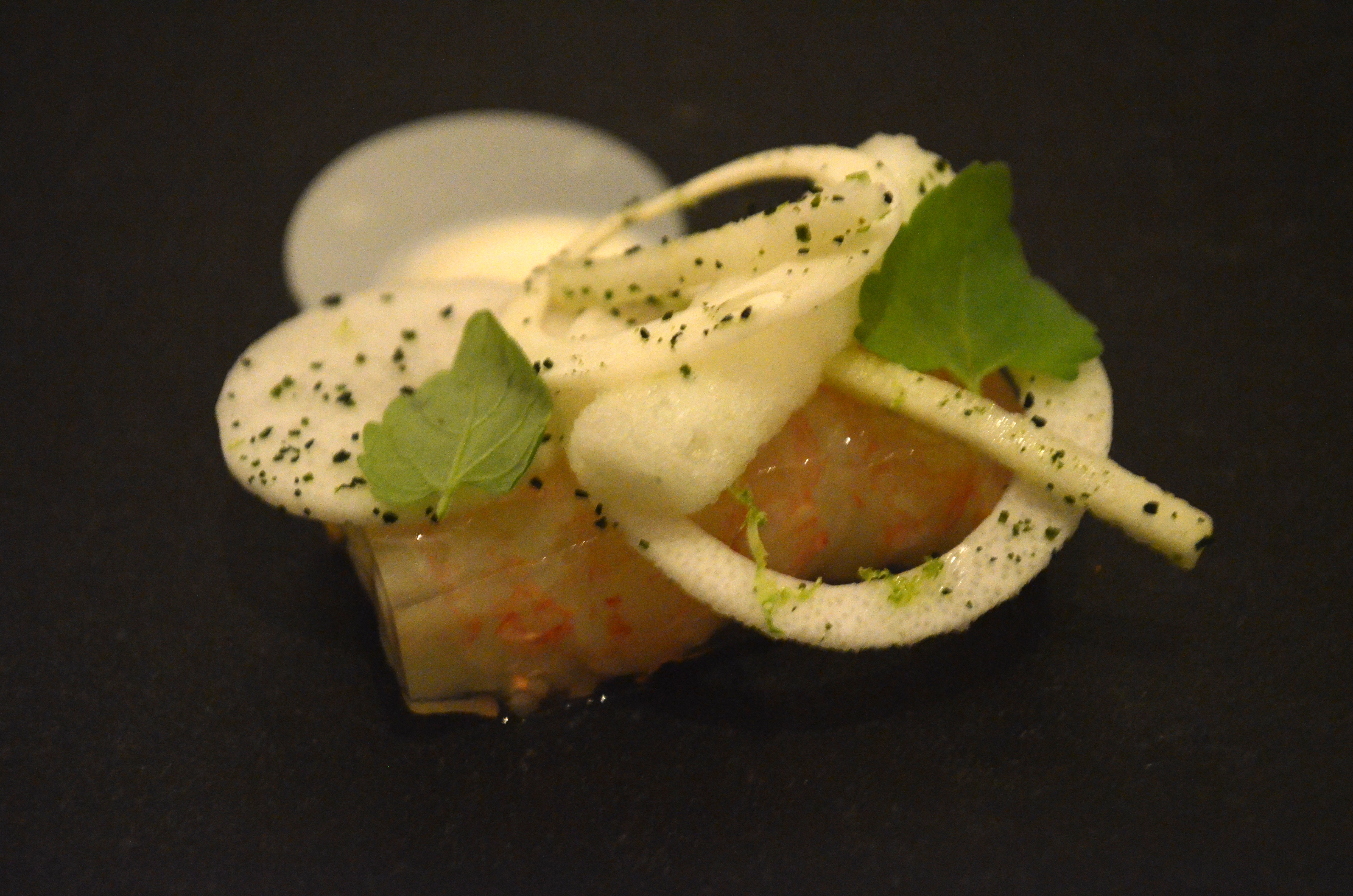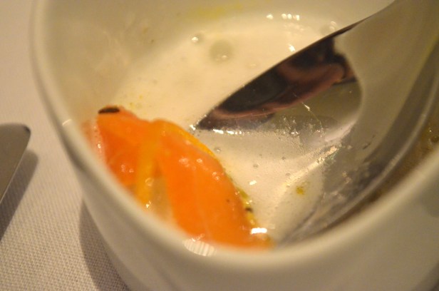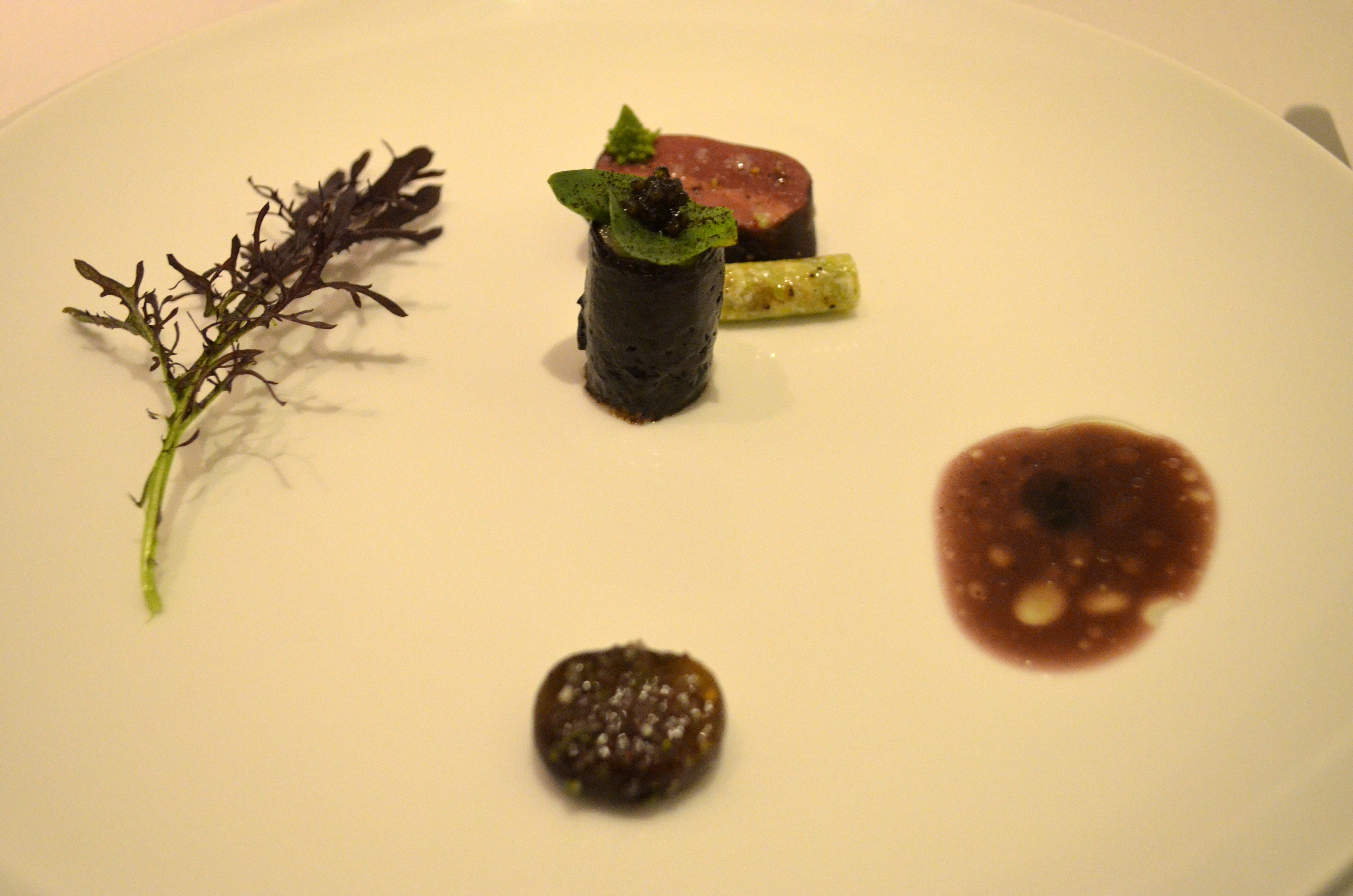 These few dishes all featured meat in spacially condensed forms – foie gras, langoustine, wood pigeon. I’m still more partial to pan-seared foie gras than any other incarnation, but this bite was exceptionally clean and bright, as was the langoustine (in a less potent and fatty way).