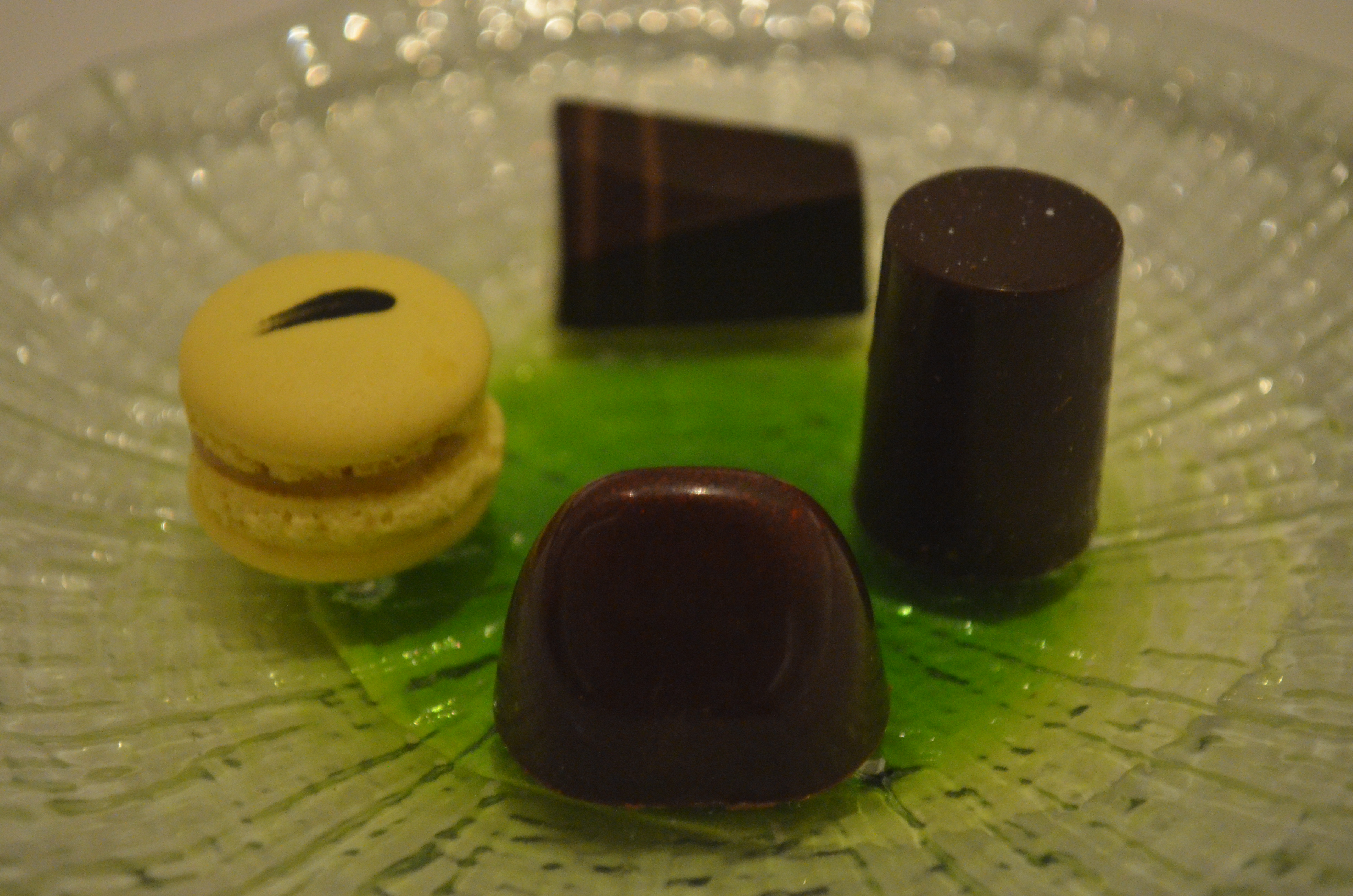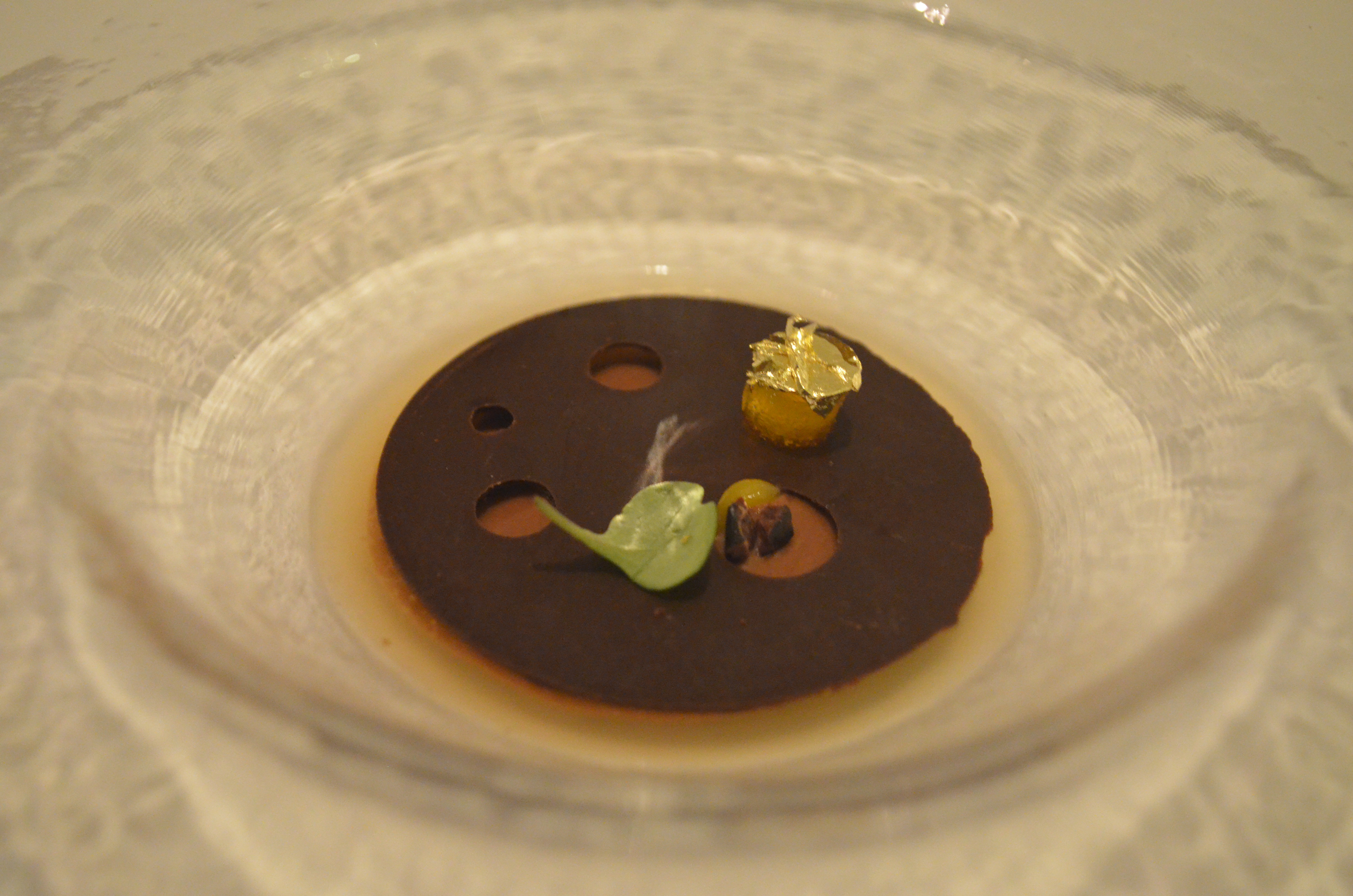 My favorite dessert followed, a sponge cake with maple, sour cherry, coffee, and almond elements with toast-flavored ice cream (the bottom crust was especially tasty). Then, a wafer of dark chocolate atop apricot syrup, and a smattering of small dessert bites (candied fruits, chocolates, a macaron). By the end of the chocolate leg of this particular marathon, we were stuffed and exhausted. In sum, from technical and flavor perspectives, the Corton tasting menu was a very interesting journey; compared to other lengthy high-end menus (notably Mugaritz, Arzak, and Benu), the story wasn’t as quite as clear or powerful, and the highlights weren’t quite on such a high order of perfection as those noted restaurants. Nevertheless, there were quite a handful of innovations and incredible flavor notes that excited and/or surprised, and on these sort of risky culinary rides, this one ended really quite well.