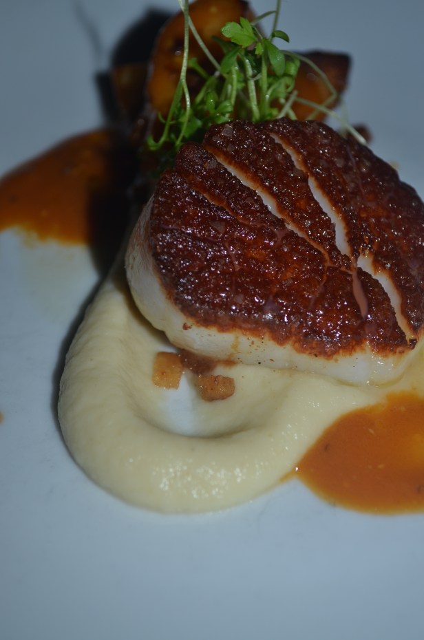 For appetizers, we ordered the creamy polenta (with fricassee of truffled mushrooms), fritto misto, and seared scallop, and received a few extra appetizers on the house: ricotta dumplings and raw yellowtail with sea salt.
