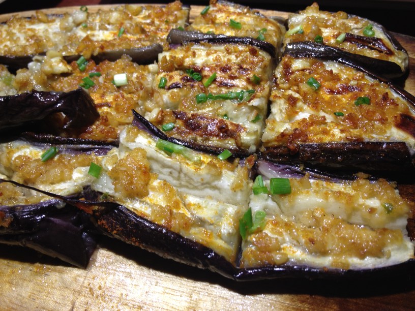 We started with pickled turnips (one of those childhood favorites for me), and then moved on to pork ribs (a bit too hands-on), grilled eggplant, sauteed cauliflower, stir-fried beef udon, garlic scallops (on the shell), black pepper veal, and finished with a peanut shaved ice dessert (not pictured).