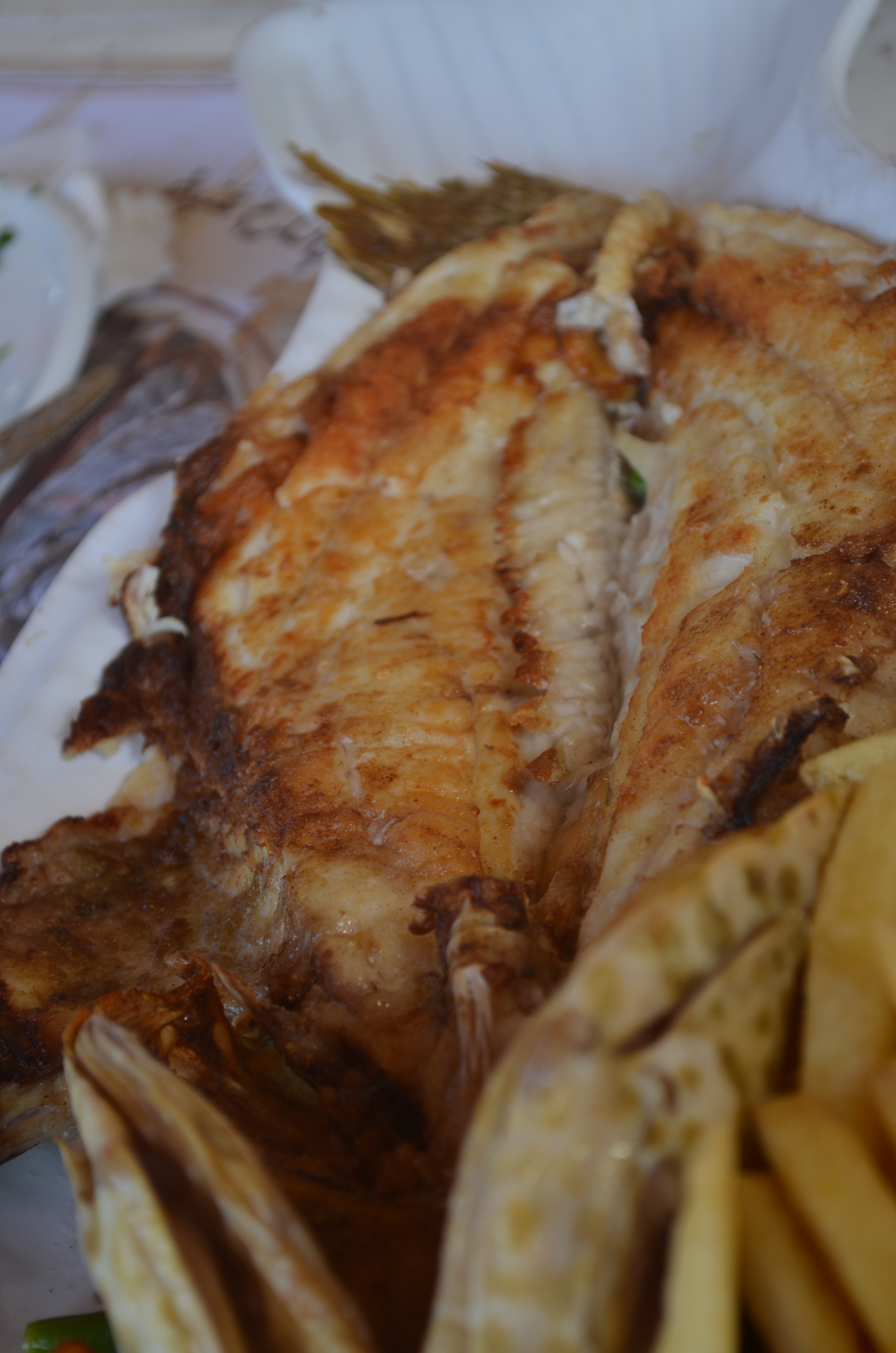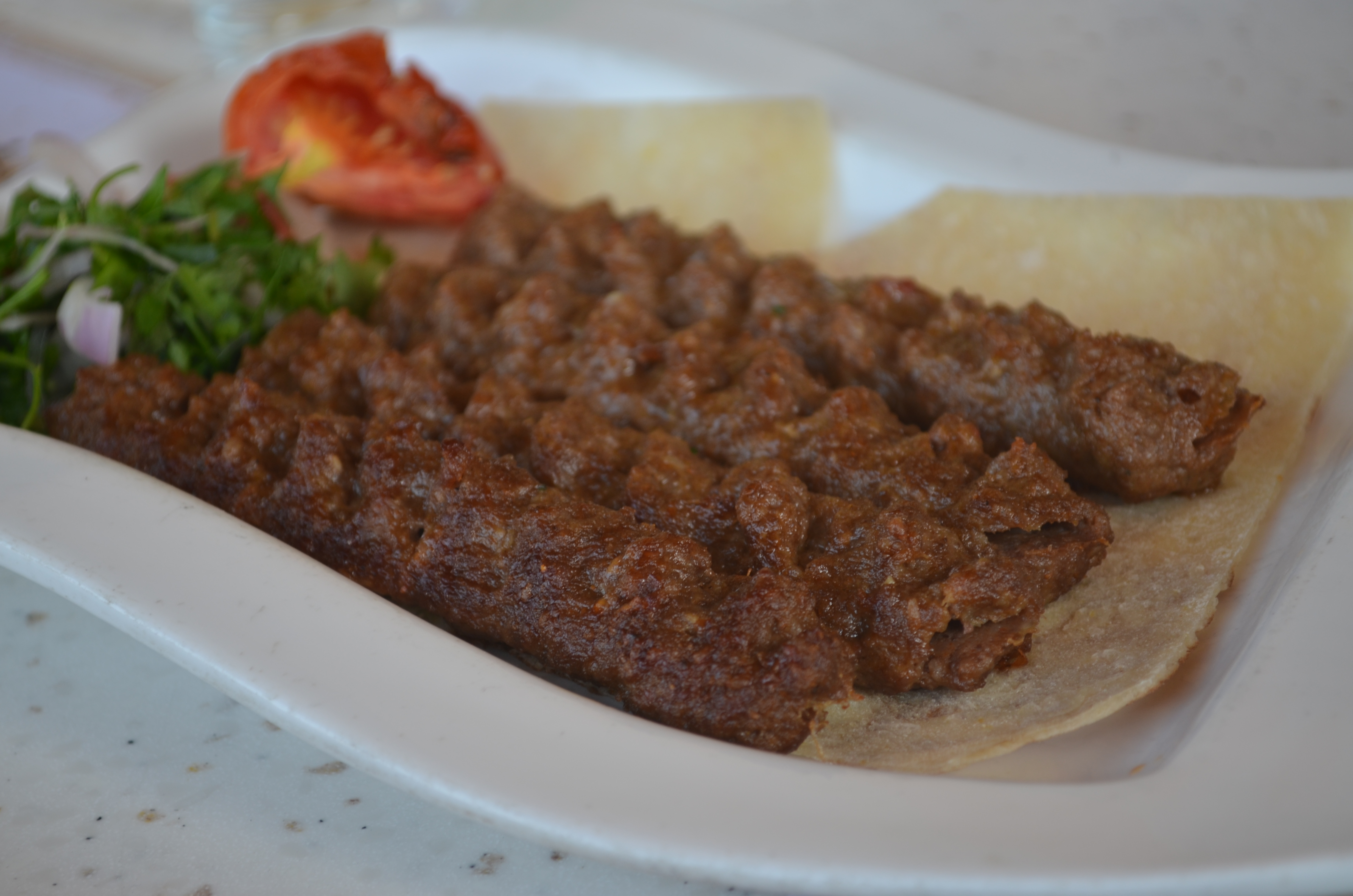 Myra’s cousin, who lives and works in Dubai, took us to an excellent Lebanese restaurant called Bazerkan in the Dubai Marina (along the Jumeirah Beach Resort “walk”), where we plopped down at a sunny table al fresco and stuffed ourselves with smooth, creamy hummus (the one with pine nuts was phenomenal), crisp and fresh vegetables, a surprisingly delicious lentil soup, grilled lamb chops, a fluffy spinach-and-cheese flatbread, kabobs, and a succulent white fish flayed and grilled with really good spices.