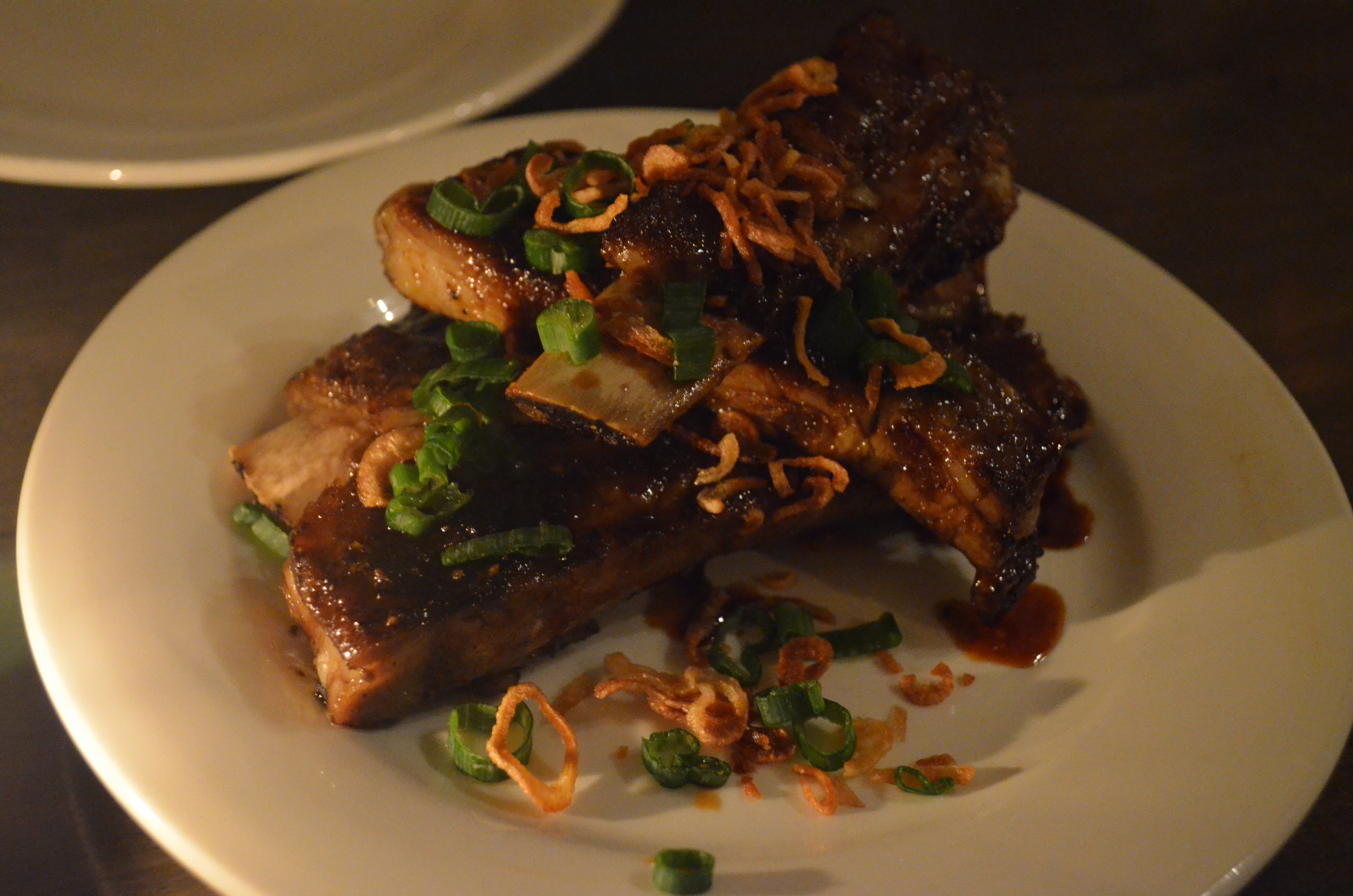 We started with the creamed kale (with grilled pork belly and housemade paneer) and spareribs (with Vietnamese caramel sauce). Although firmly rooted in the soul food armament, creamed vegetables aren’t usually my thing – Chinese food rarely cooks vegetables down that much, so that consistency and heaviness always seems a bit foreign. But the paneer is a really clever touch, a clean flavor and smooth texture that blends in with the kale. The ribs were tender, and the fried shallots were a big plus.