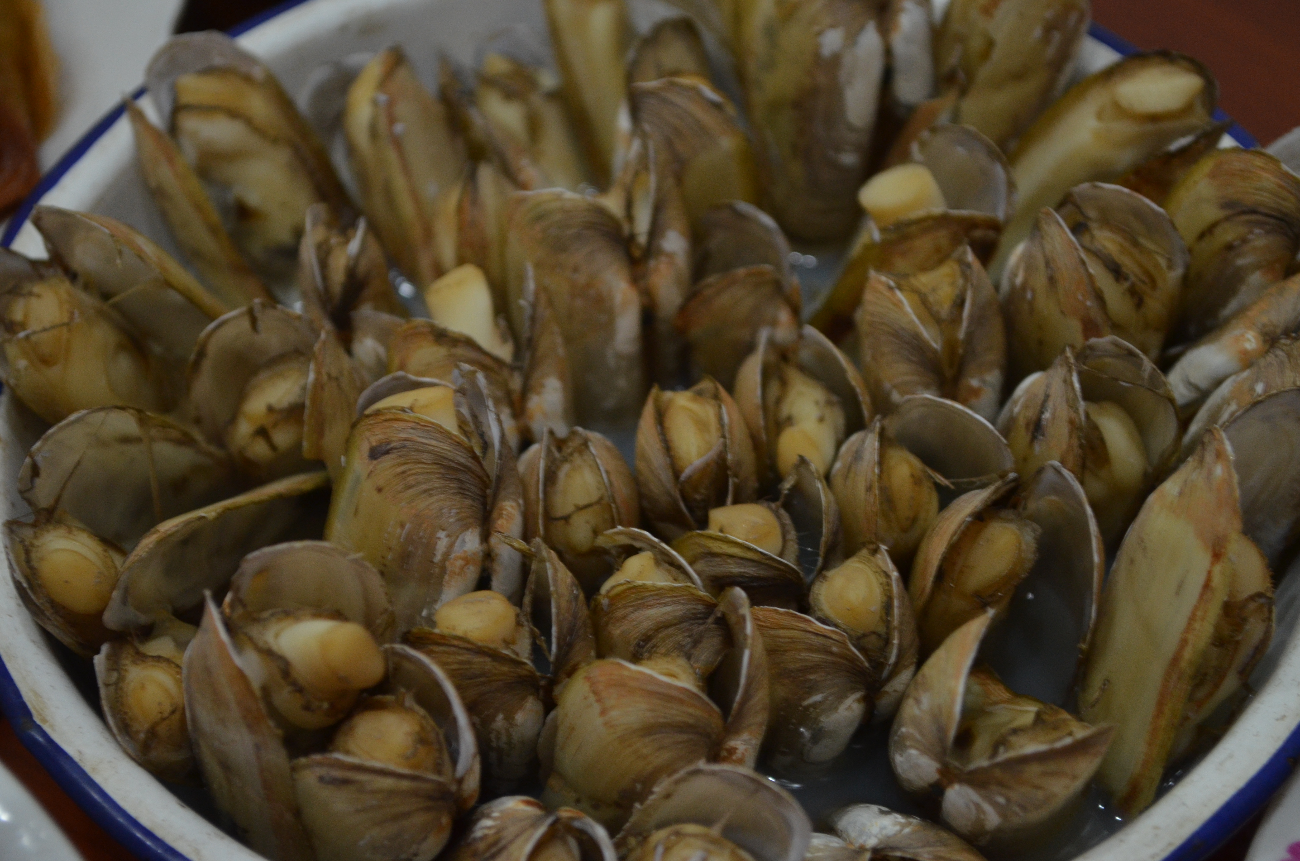 Next came shrimp, Fuzhou-style fish ball soup, steamed clams, and mashed taro. Fish balls are common everywhere in China, but only in Fuzhou are they filled with seasoned ground pork as if a soup dumpling (I also find the fish ball itself to be tastier). Mashed taro, although it looks a wreck, is one of my childhood favorites, similar to mashed sweet potato at American Thanksgivings, but less syrupy and more complex in flavor. McDonald’s even copped it for their taro pie desserts.