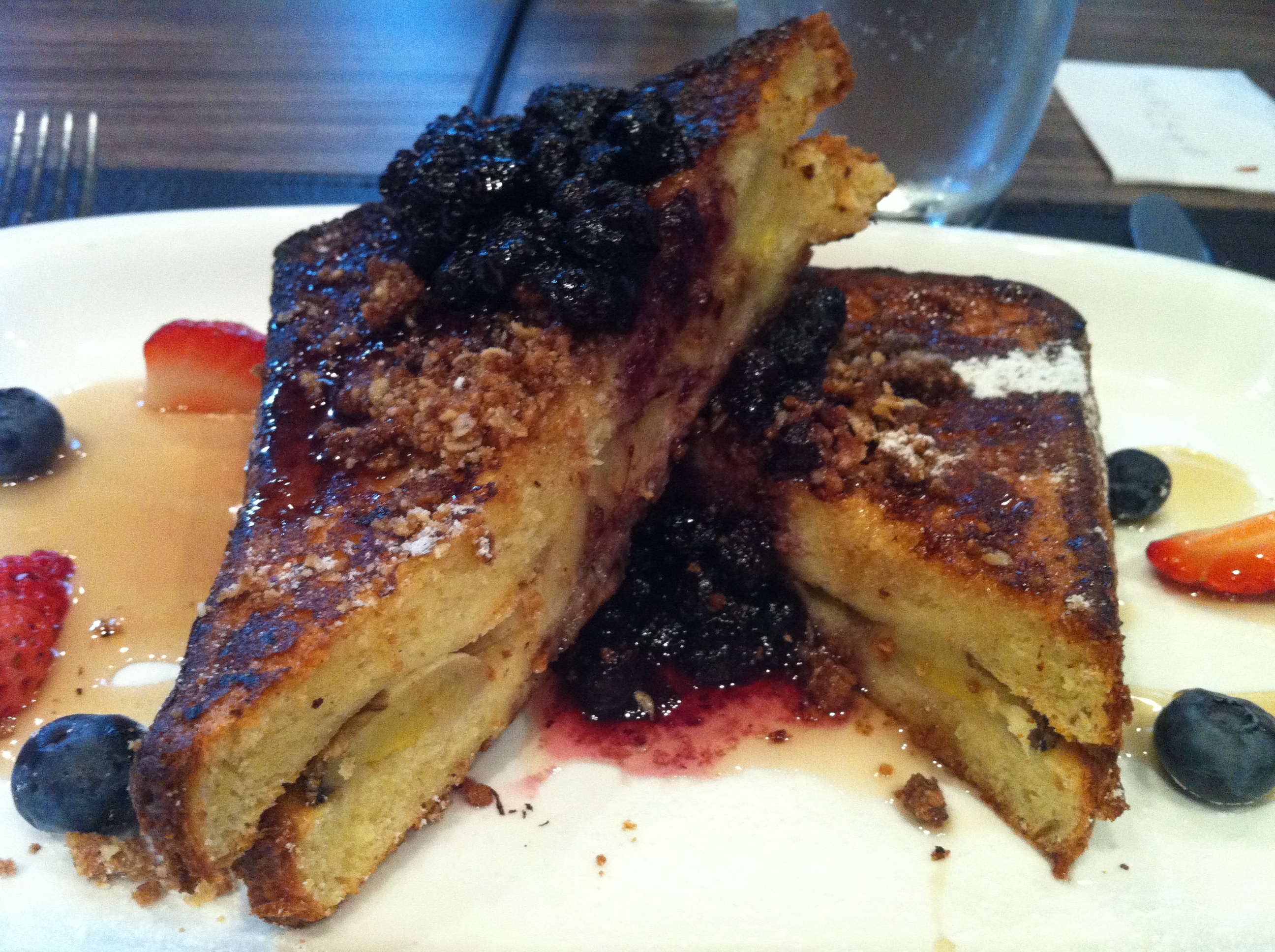 I also had a bite of a few other dishes (that other people ordered): the pancake soufflé (which, really, was just cornbread in a cast-iron skillet), banana french toast (picture courtesy of my friend Fanny), and (not pictured) homemade sausage & potato pancake french fries, which was our friend Dan’s individual order that we mistook for the duck fat fries (which we also ordered, for the table) and therefore of which we subsequently ate half. As much as I appreciated the effort, the Southern revival portion of the Madison brunch menu was just a bit underwhelming. The french toast, however, was delicious. The few bites I had made me wish I’d gone more traditional in my ordering. Apparently the poached eggs were quite tasty as well.