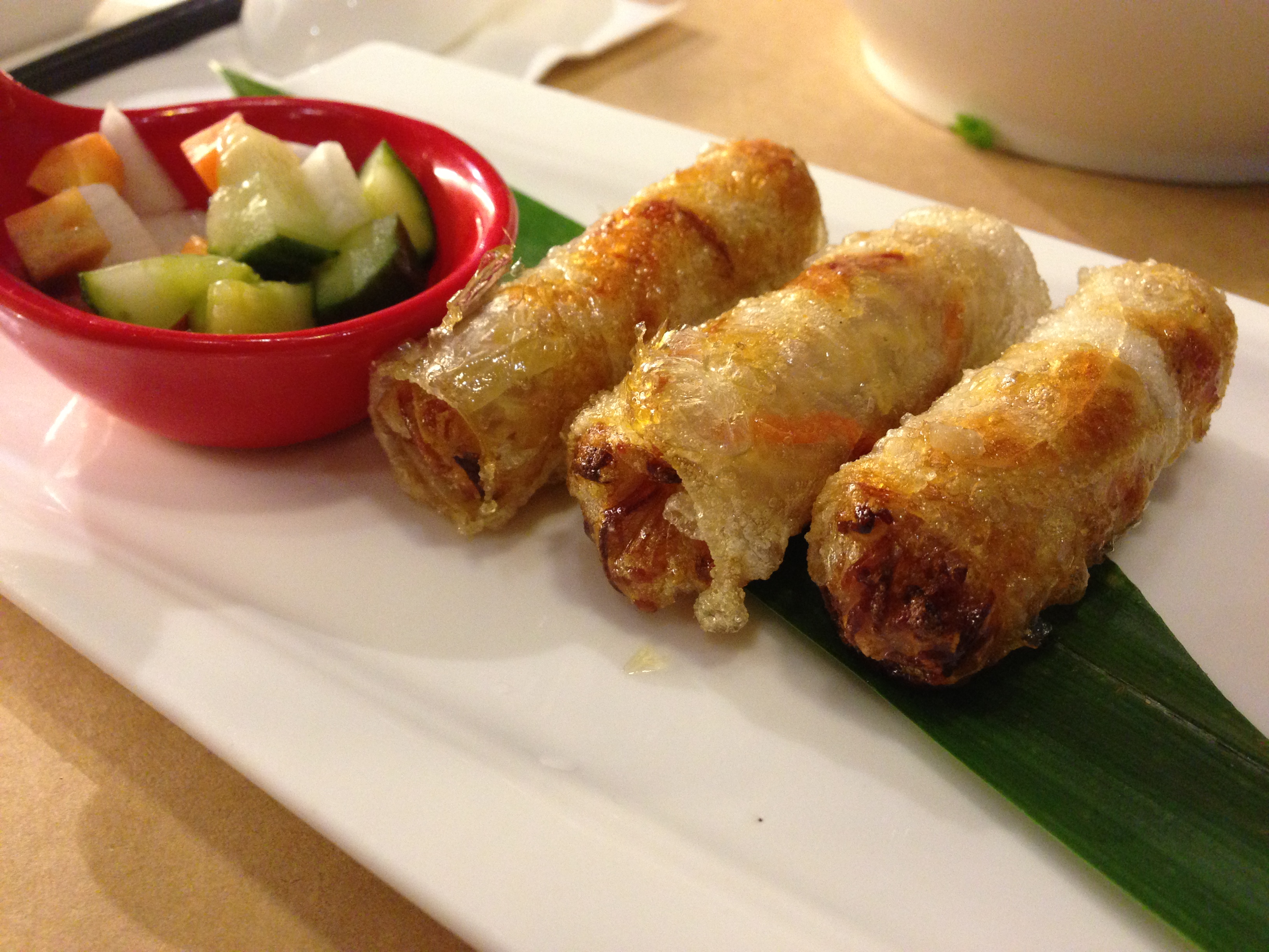 During lunch, the set menu comes with a few fried spring rolls and pickles, and the pork chop rice set comes with a small bowl of the pho soup base. At first, it also included the banana pudding (which is delicious), but since it became an extra, I stopped ordering it, if only because after the rolls and the pho, I was pretty full. Most of the time, the pork chop is tender, with a light coat of sauce (I’ll forgive them the one or two times they’ve overcooked it). Add a little fish sauce to the rice, if you aren’t against fish sauce.