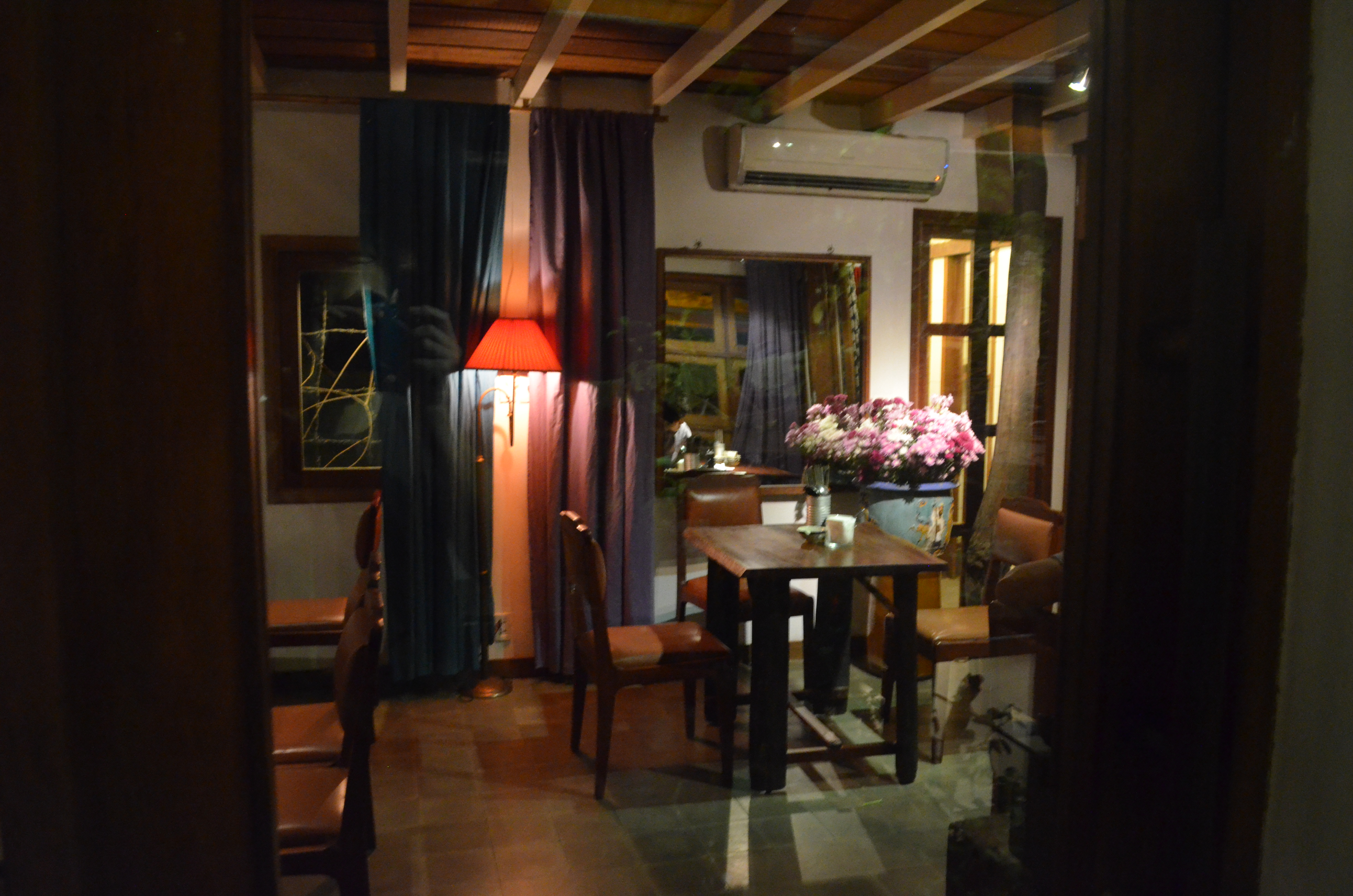 Our server, a young Vietnamese man with a huge Bieber-esque mop of hair, brought us some leather-bound menus. Mel had also suggested that we let the staff pick for us, and that was exactly what we did. It didn’t help my hunger or adrenaline level that on the walk over, I’d nearly been robbed of my camera by some dudes on motorbike (luckily I had held on tightly enough), so we were ready to eat. Young Bieber not only suggested specific dishes, but helped us match and proportion out our meal as well. We got some drinks to help cope with the muggy night air, admiring the wall decor as we waited for our food: