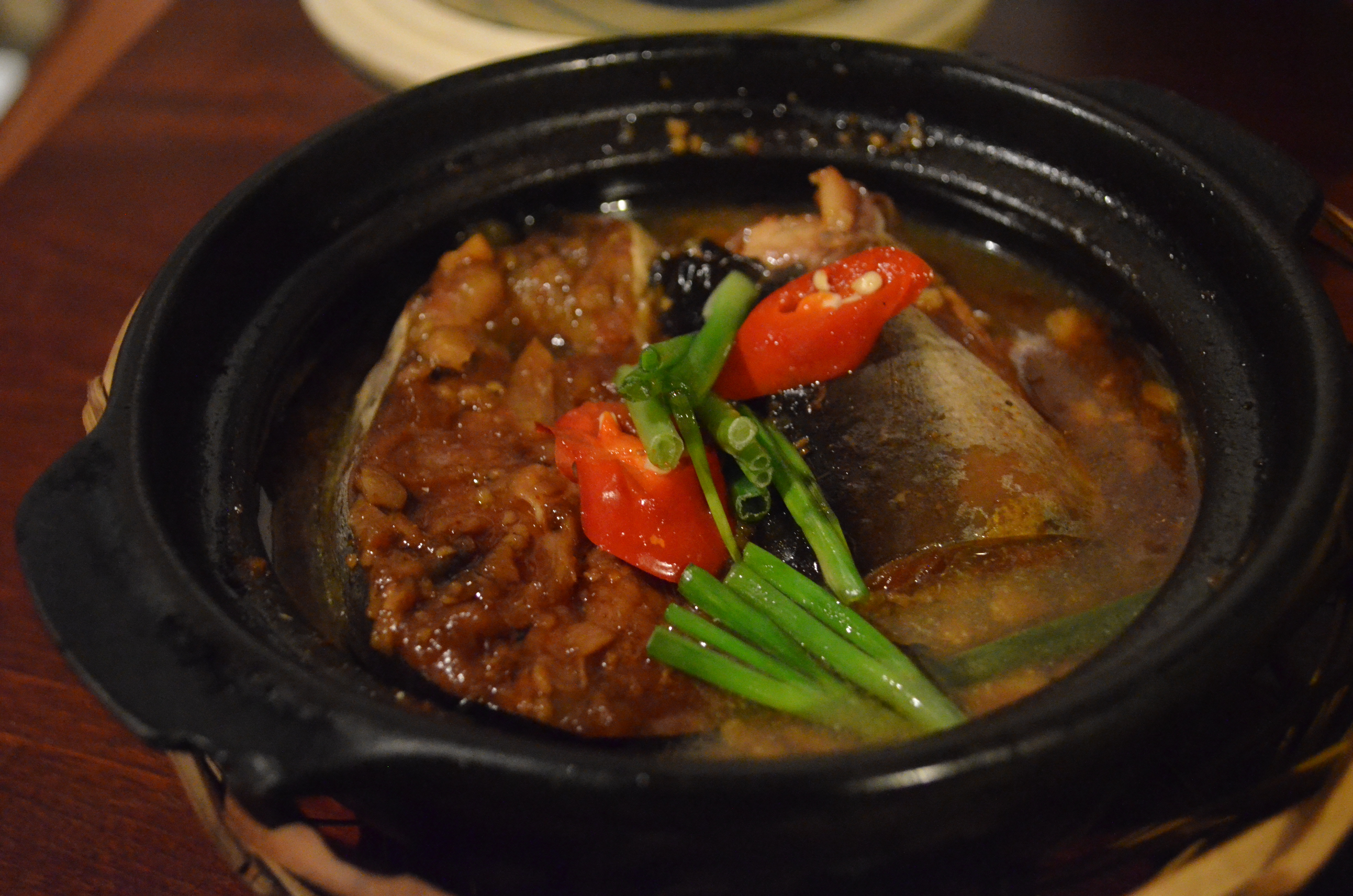 The food arrived surprisingly quickly – stir-fried pumpkin flowers, deep-fried homemade tofu with lemongrass salt seasoning, stir-fried beef, and claypot-braised fish in caramel sauce: