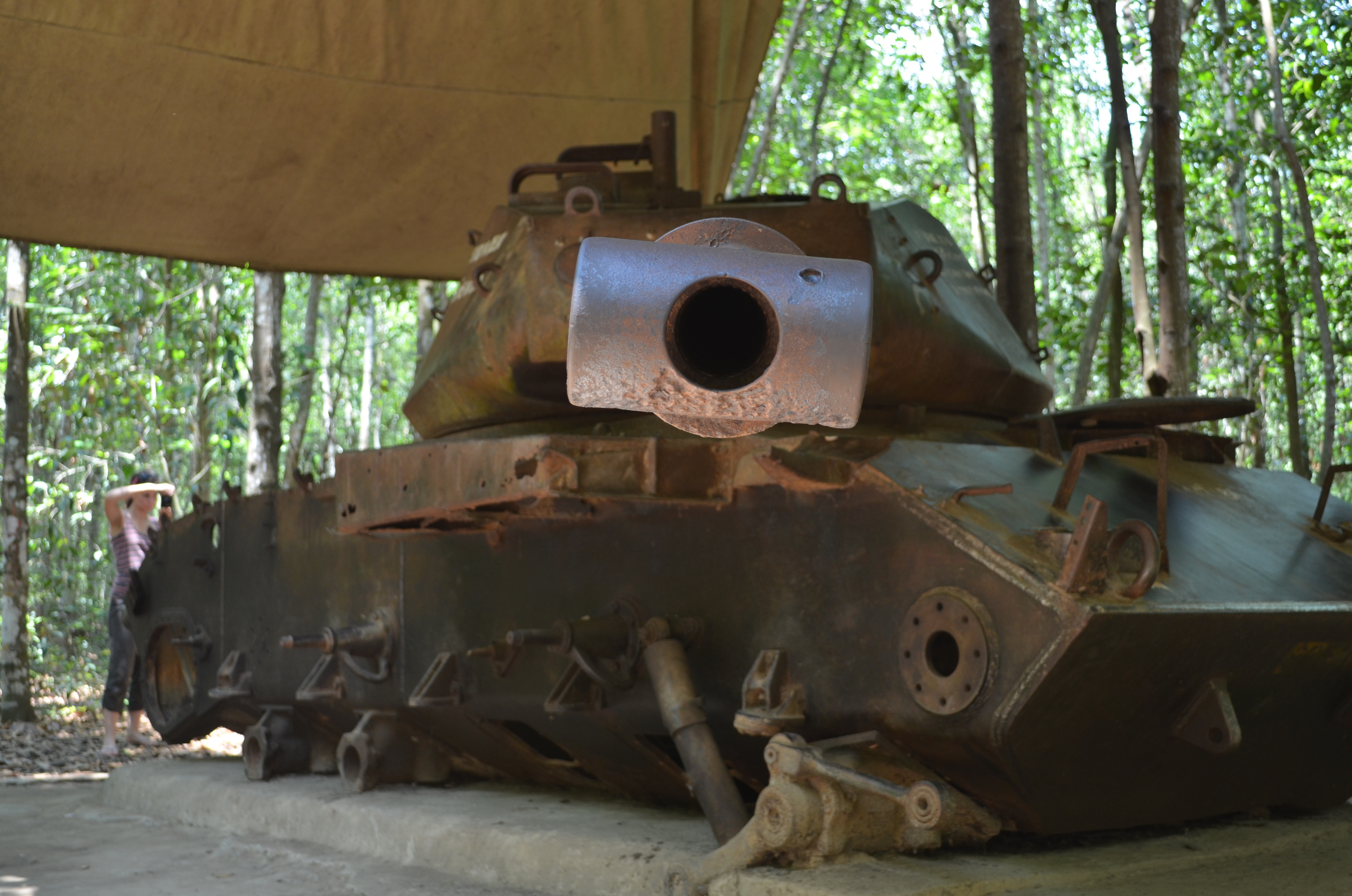 You may notice that I don’t have much in the way of the actual tunnels. One way of looking at it is that it is difficult to take photos while crawling on your hands and knees through a claustrophobically small space that simultaneously feels like an oven. Another, more enlightened viewpoint is that the other things we saw on our hour-long walking tour were more interesting. The bombs, for example. And especially the booby traps.