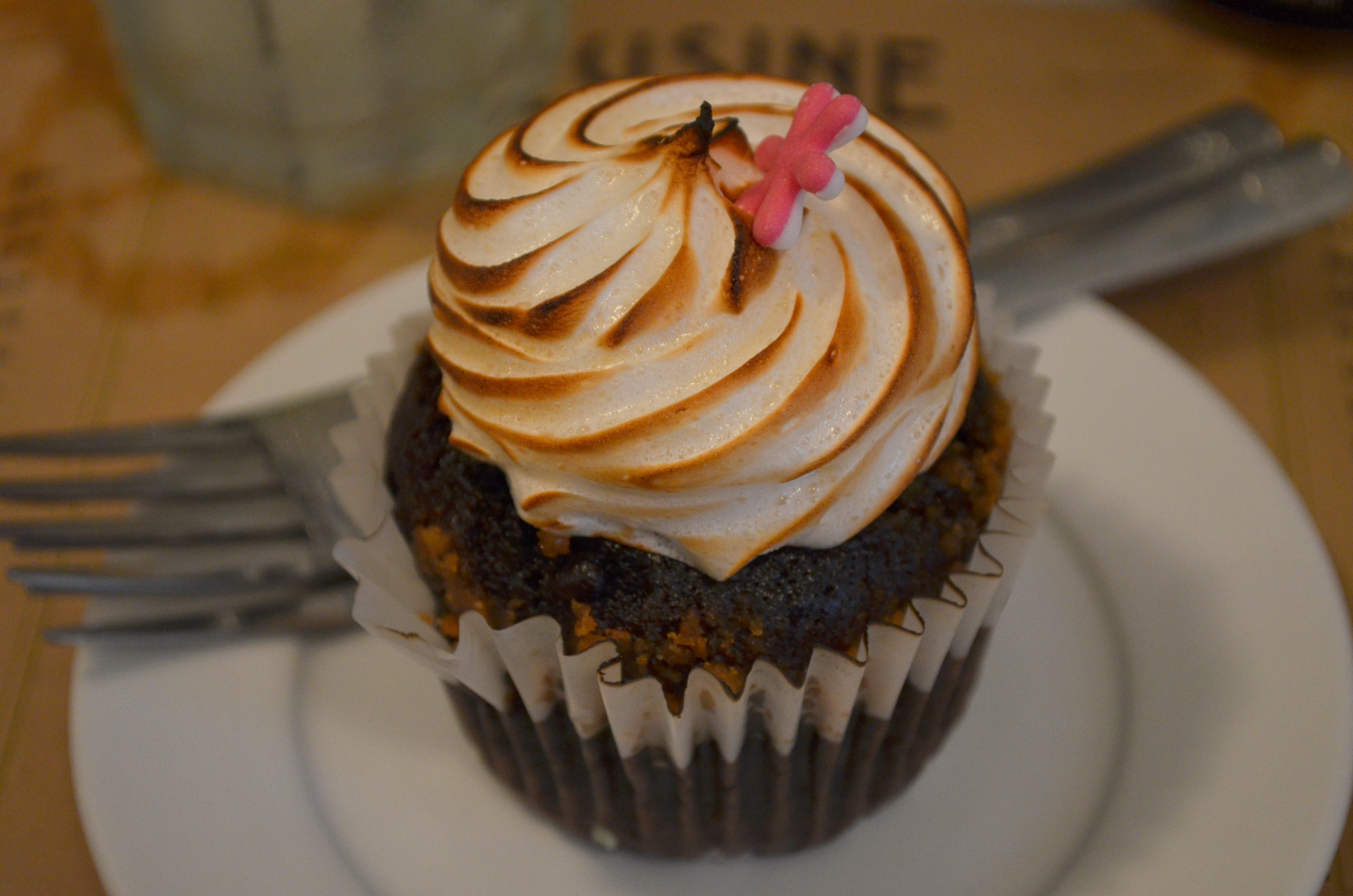 We stayed for lunch, ordering L’Usine’s take on banh mi and also a pulled pork sandwich with fried egg. I got a Vietnamese iced coffee, and we finished with a s’mores cupcake.