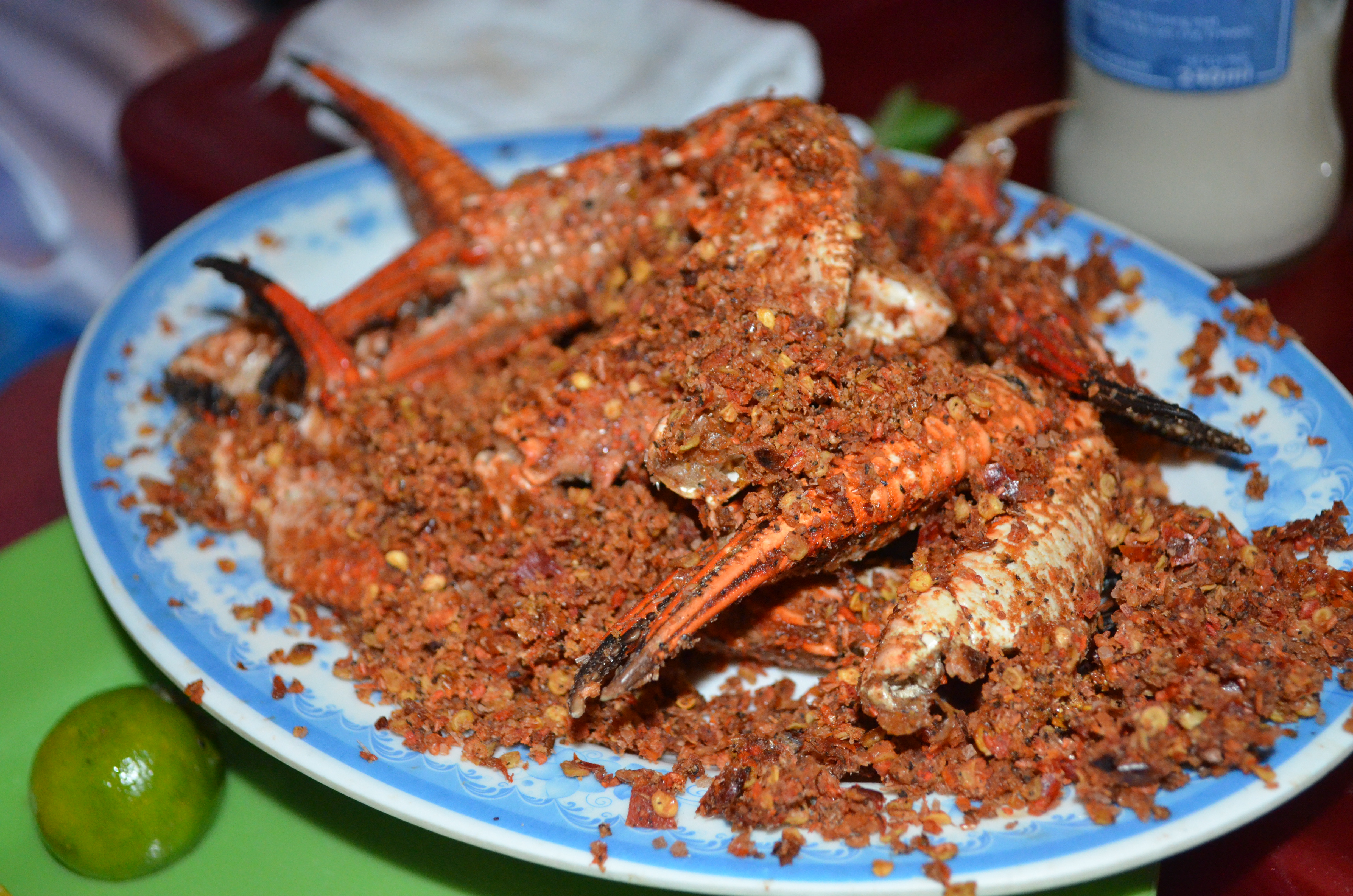Next, we headed to an outdoor barbeque joint, where we gorged on smoky bits of goat breast, okra, shrimp, squid, and frog. I sampled a bit of sugary Spark energy drink (it was a recurring theme that my personal guide, while incredibly hospitable, kept urging me to try suspect things over the course of the night), as well as monkey wine (banana wine).