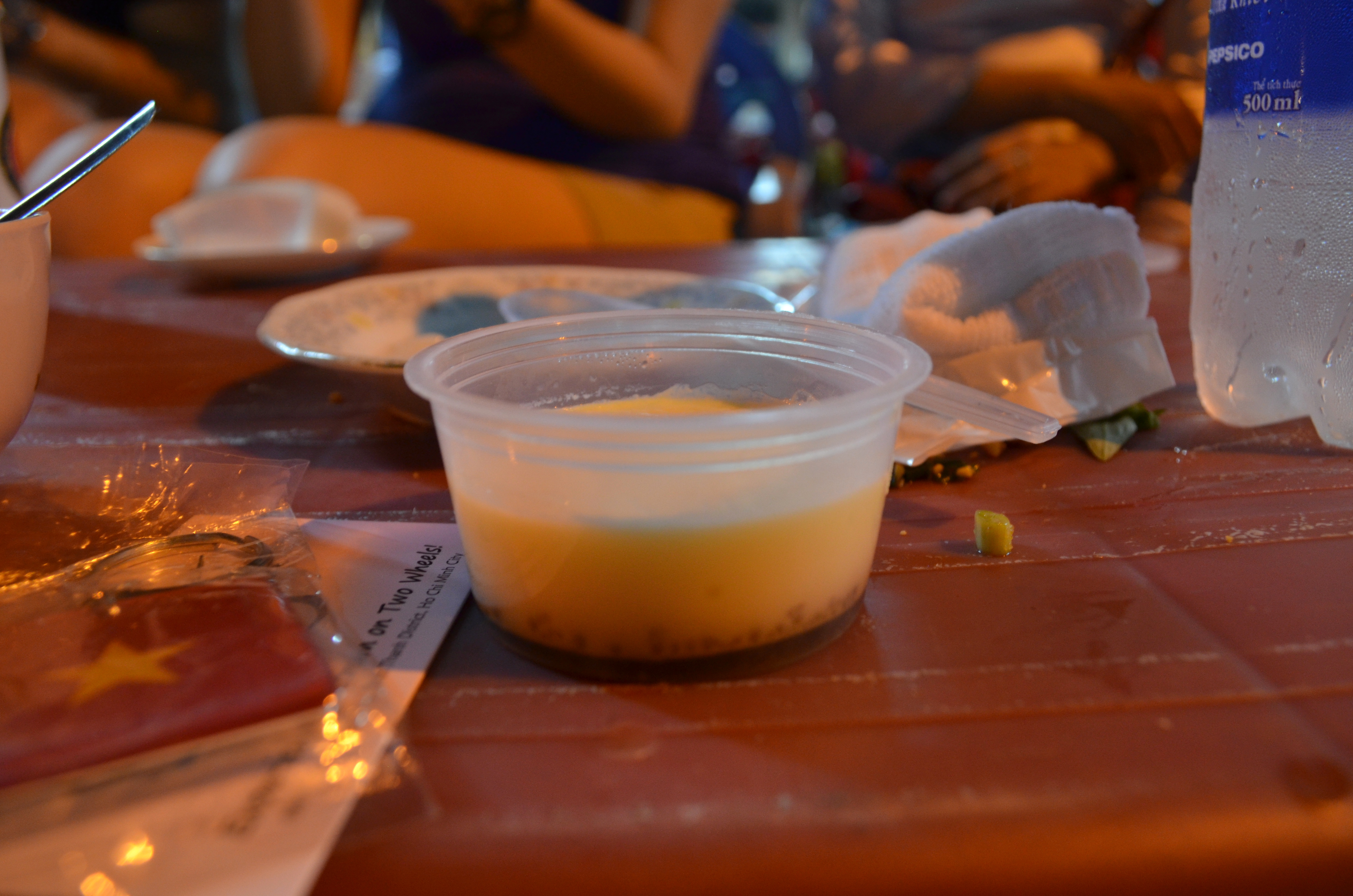 The scallops were a surprising and phenomenal discovery of flavor and texture profiles – the slightly briny scallop, the oily-crunchy umami of peanuts and scallions, and the tang of the spoonful of chili fish sauce that our guides added to each bite. The crab legs were amazing as well, flaky and sweet, perfectly paired with the sweat-inducing fire of the chili seasoning. We finished with a pair of desserts, a coconut jelly and a creme caramel of sorts: