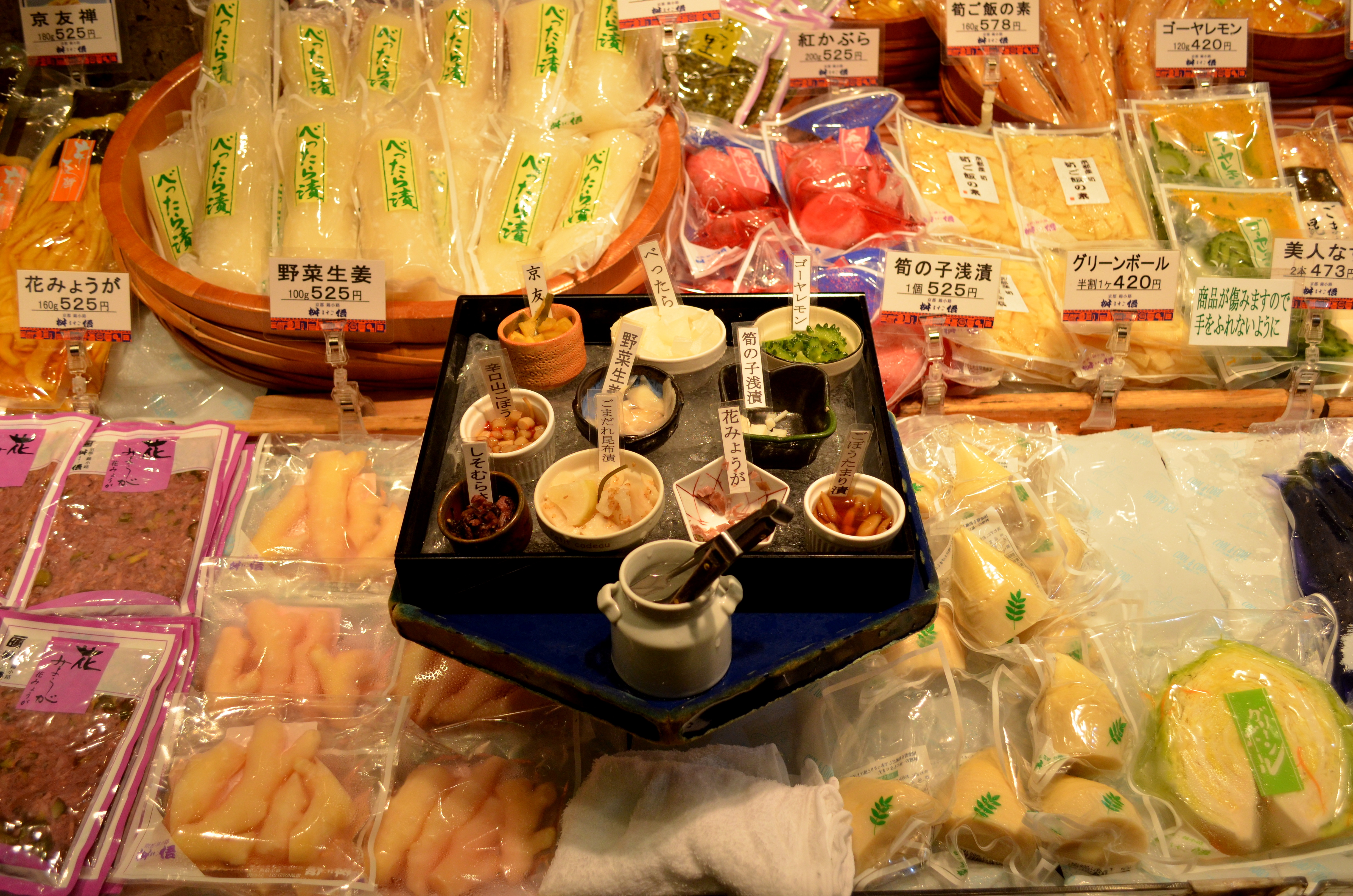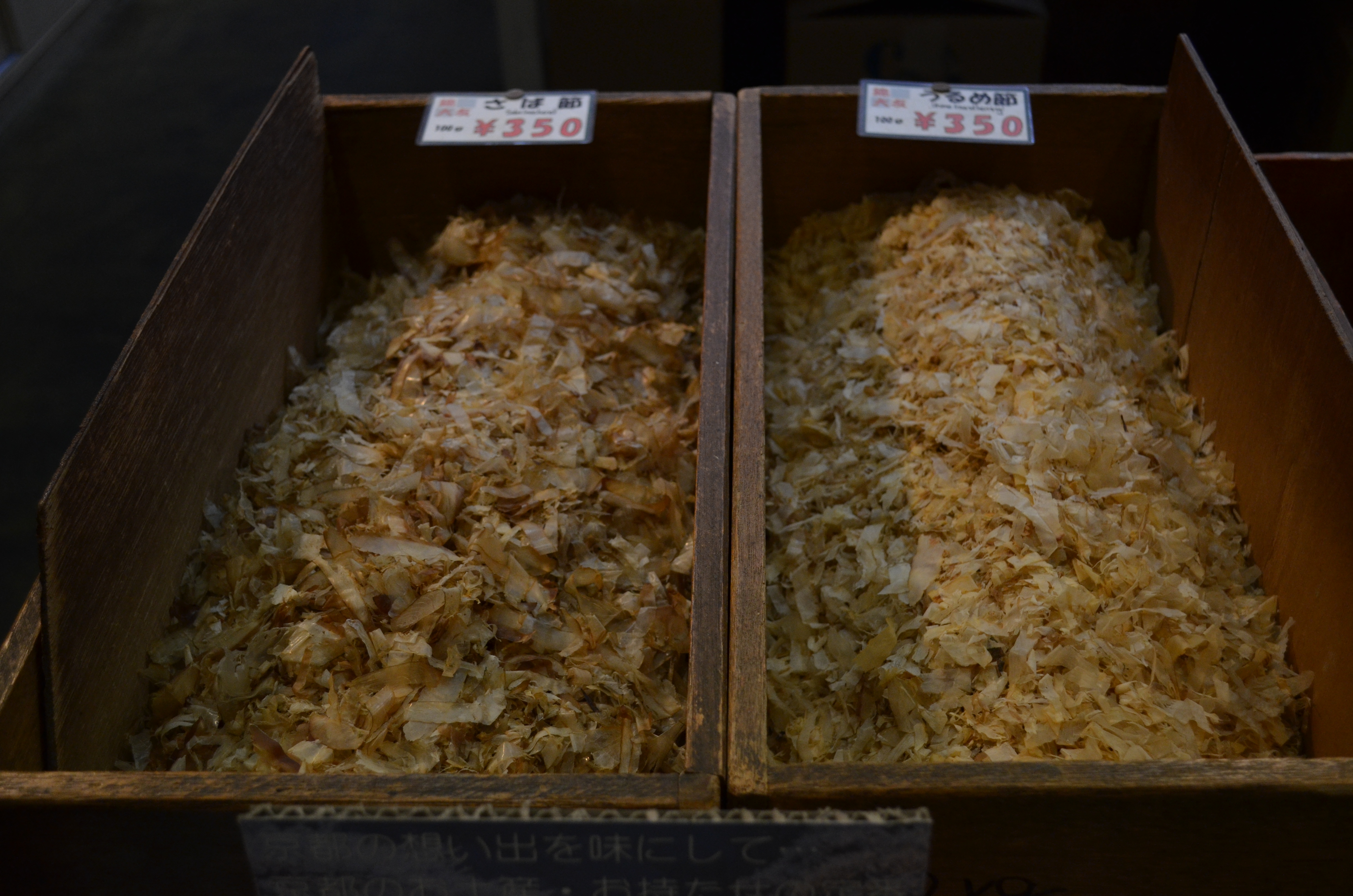 Kyoto’s Nishiki Market runs along a four- or five-block length of pedestrian street fitted with stalls and little shops selling an eye-popping smorgasbord of food and food-related things, from kombu to artisanal knives to mochi to Japanese spices to skewers to seafood. So much sensory overload from just a thirty-minute stroll down this narrow corridor of heaven.