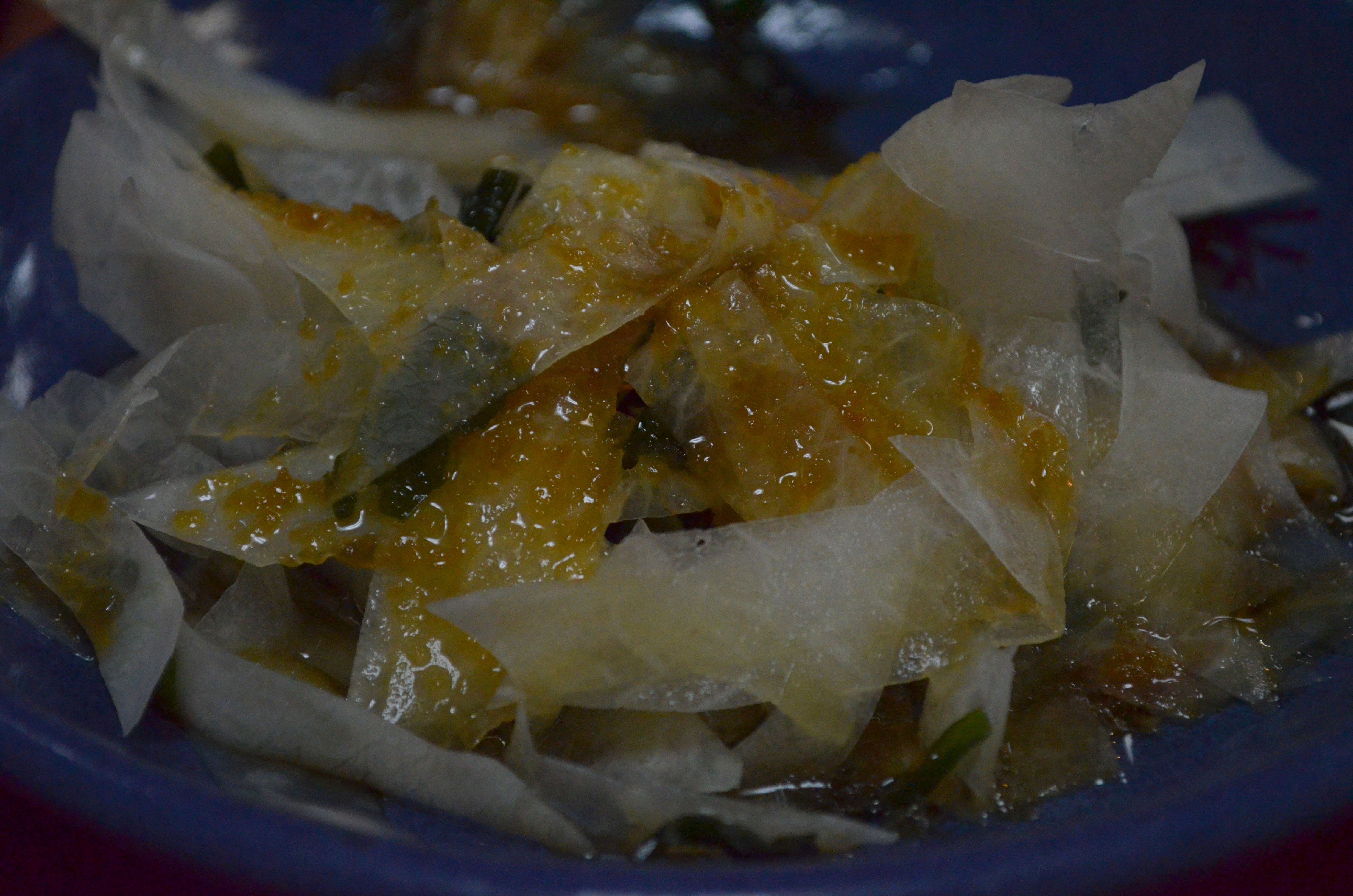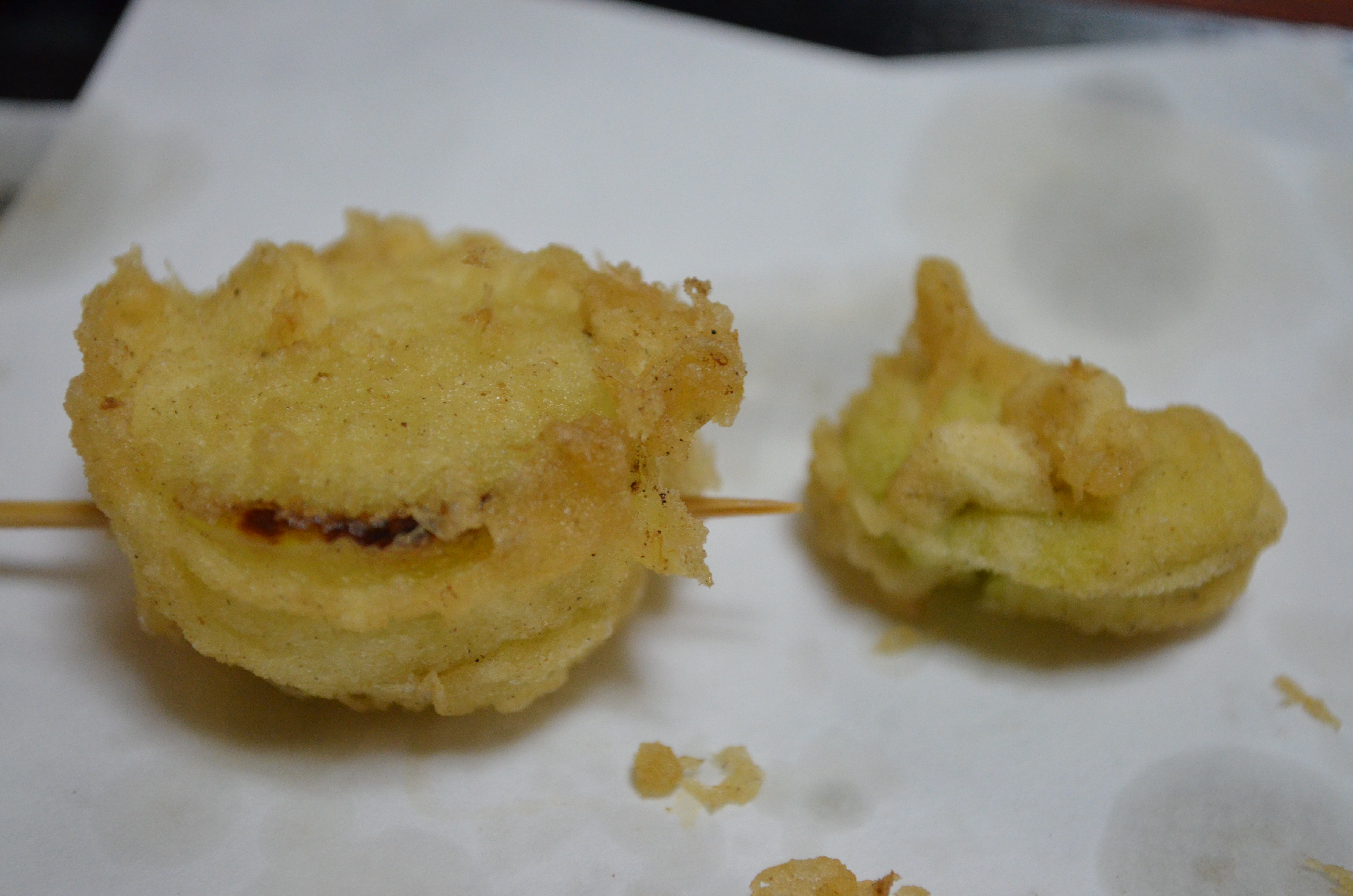 The tempura came in all shapes and sizes: slices of sweet potato and squash, clam (shell and all), shrimp head, kakiage (another variety of small shrimp), squid, etc. What really surprised me was how inconspicuous the oil was – there were only a light, thinly battered crisp and a hot bite of whatever underlying ingredient. My favorites were the tiger prawn, shrimp head, shrimp cake, sweet potato, and pearl onion.