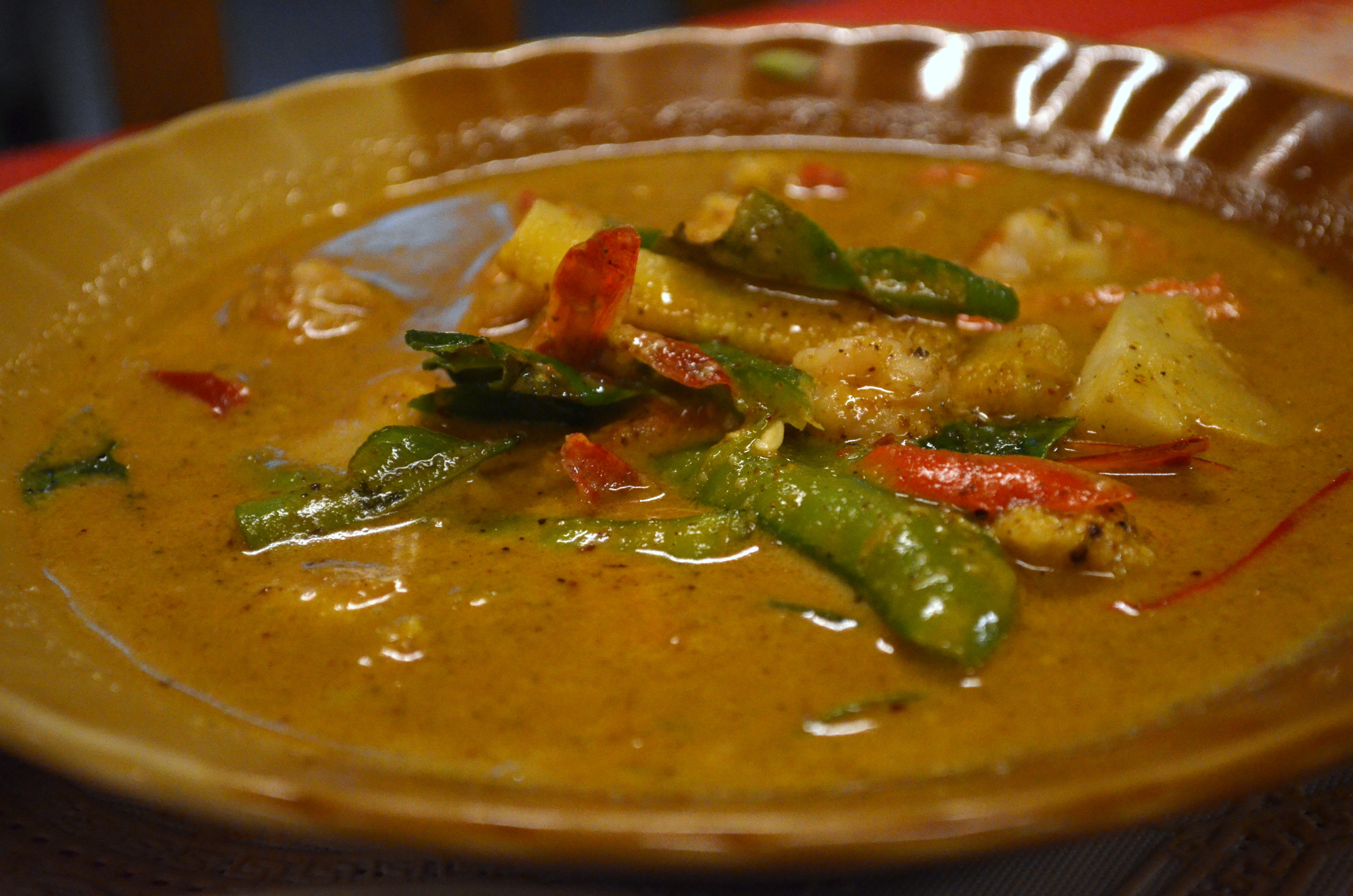 We went for lunch on a Monday and we went back for dinner the next day. Although the pick-your-seafood bonanza was only available during dinner, we still snuck in a fried fish with garlic, vermicelli spring rolls, crispy pork green curry (with coconut rice), and a coconut smoothie (inside a coconut).
