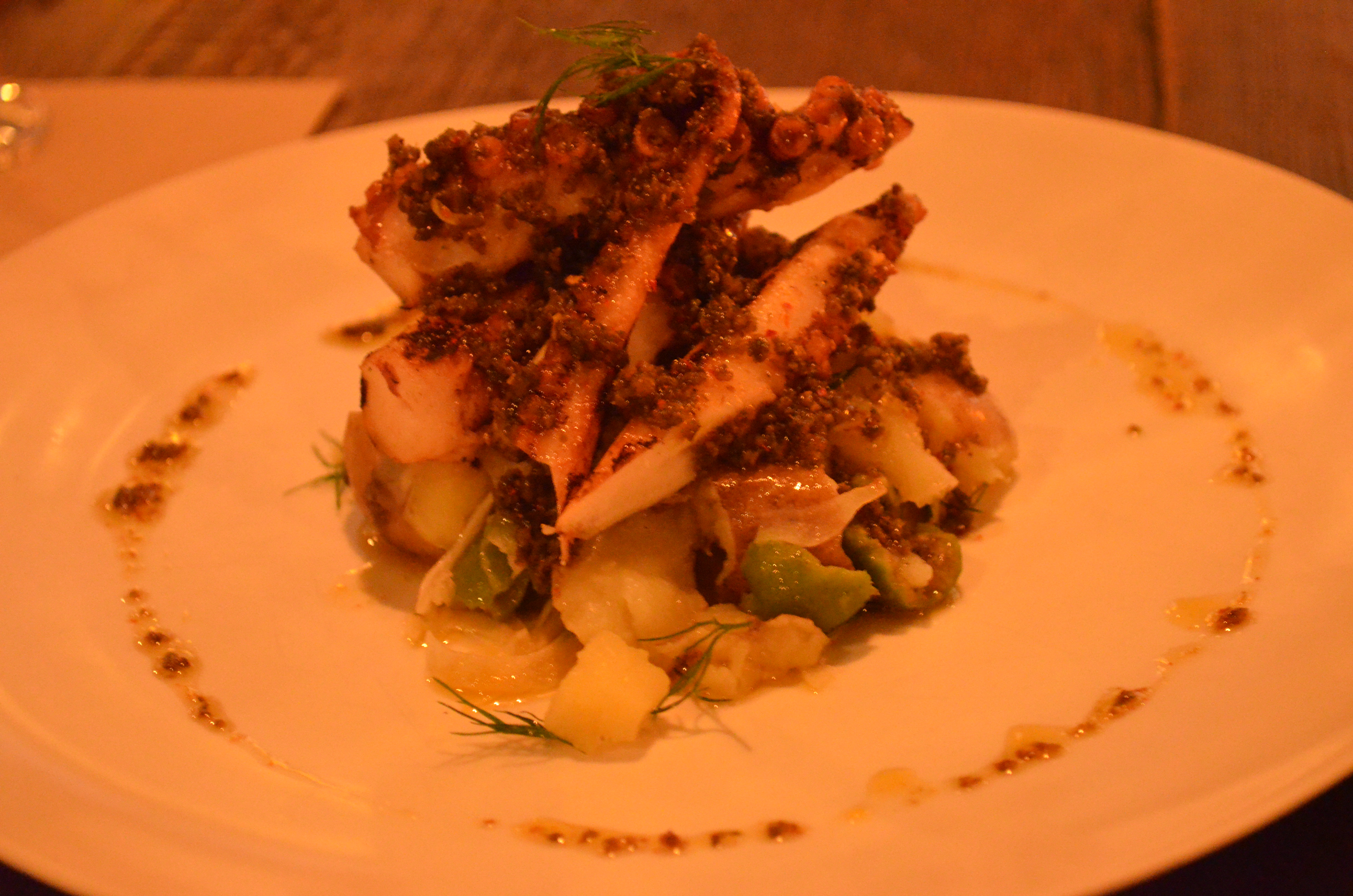 We ordered drinks (mine a lychee soda), char-grilled octopus & potato salad, and salmon tartar on garlic crostini. Mercato’s amuse-bouche of sorts is their mini arancini. The octopus was great: the intense saltiness of olives was a really nice addition to crisped chunks of octopus drizzled in olive oil. While the salmon crostini had a indulgent toasted brioche texture that I really liked, the salmon didn’t have enough flavor to make it a truly standout dish.