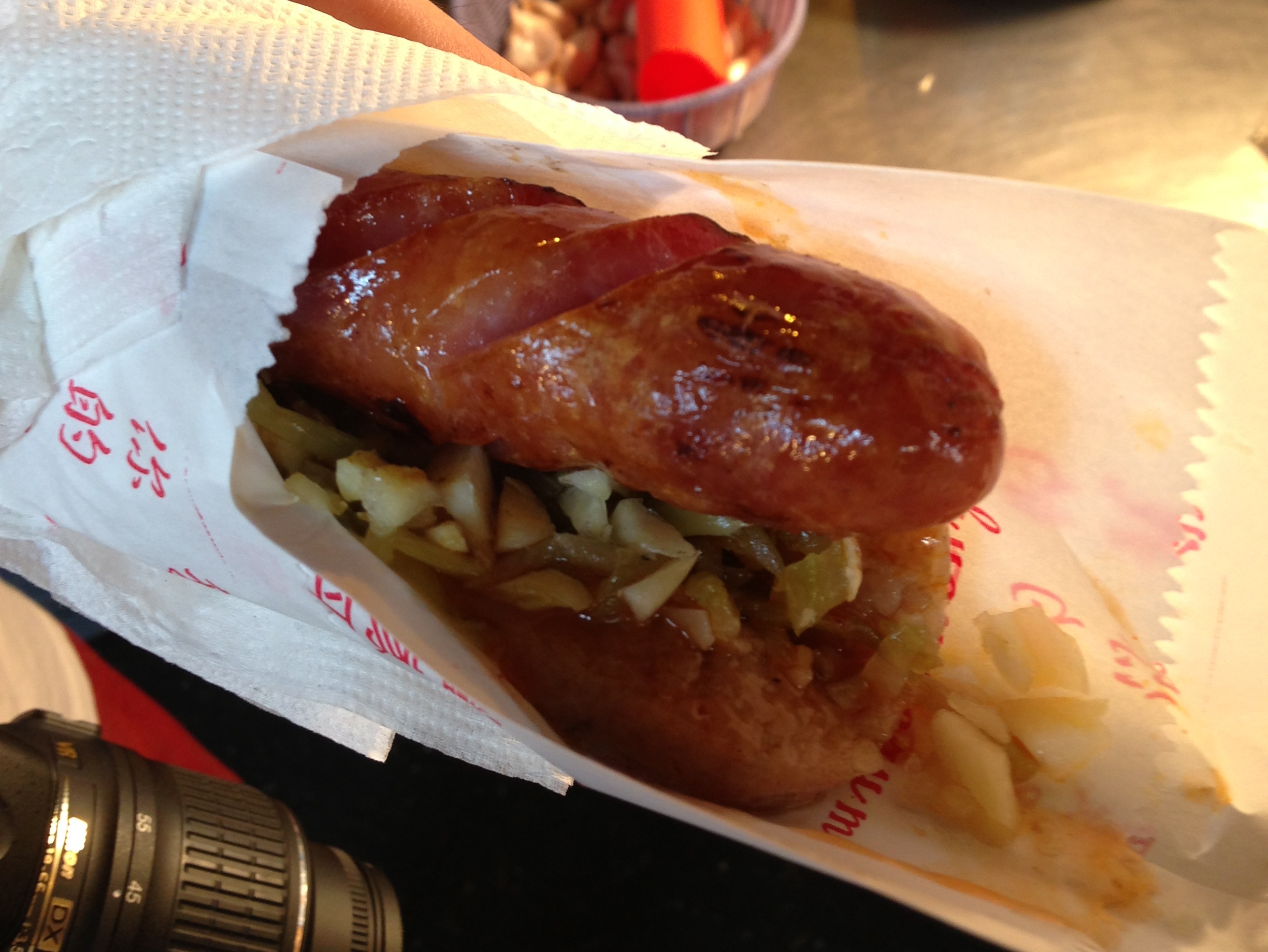 It’s bit of a challenge to eat neatly, and with the two casings, a bit chewy, but those were really the only complaints, especially if you love the sweet, crisp-skinned, smoky, chunky Taiwanese sausages like I do.