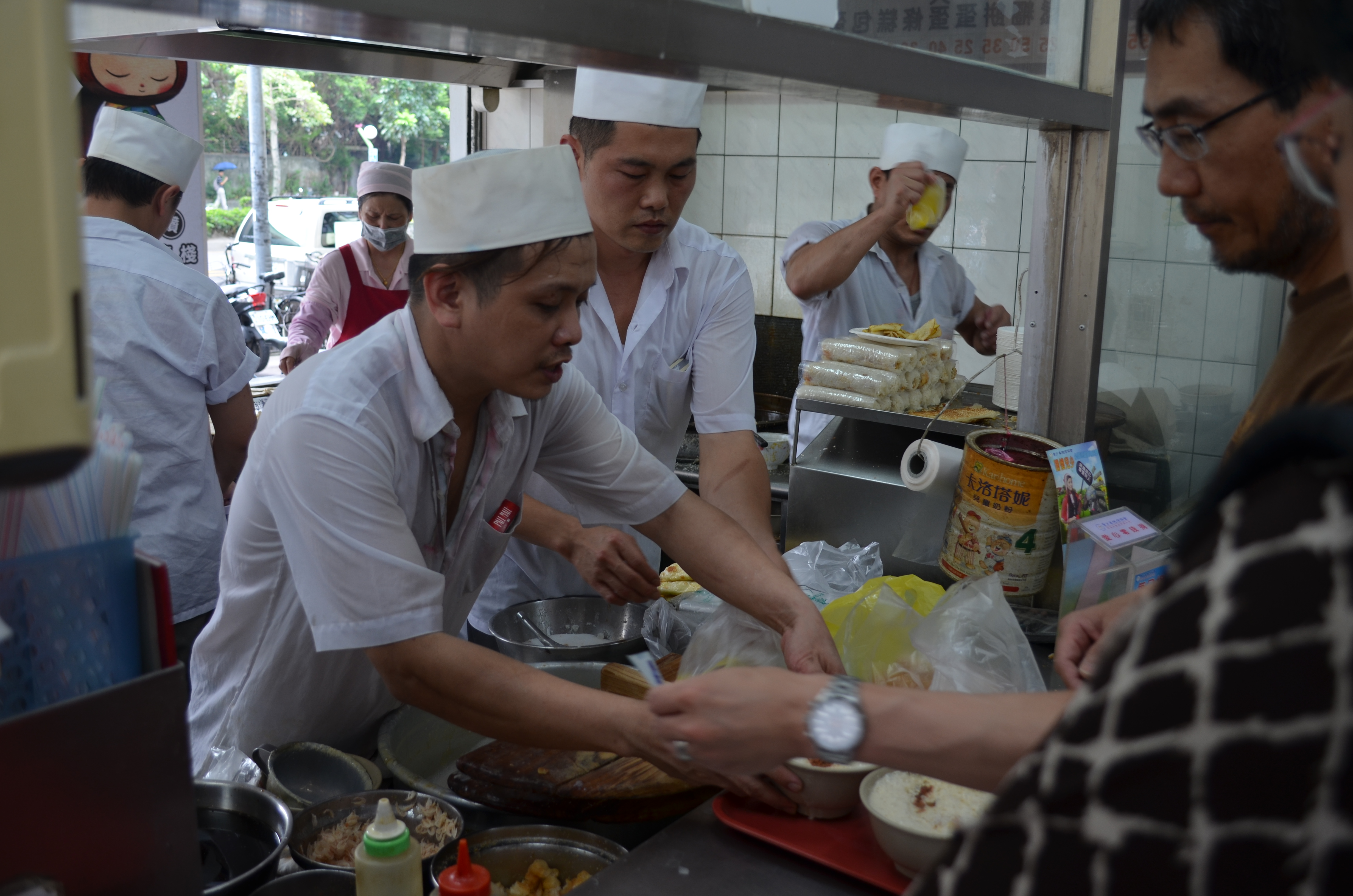 Breakfast is a big thing in Taiwan, and Yonghe Dou Jiang Wang (永和豆浆王) specifically is one of Taipei’s much-lauded breakfast joints, serving up a number of savory snacks and versions of soy milk. I visited the location just south of the Da’an metro station, on the first floor of a nondescript building, where two small lines had formed for Yonghe’s eat-in and take-out counters.