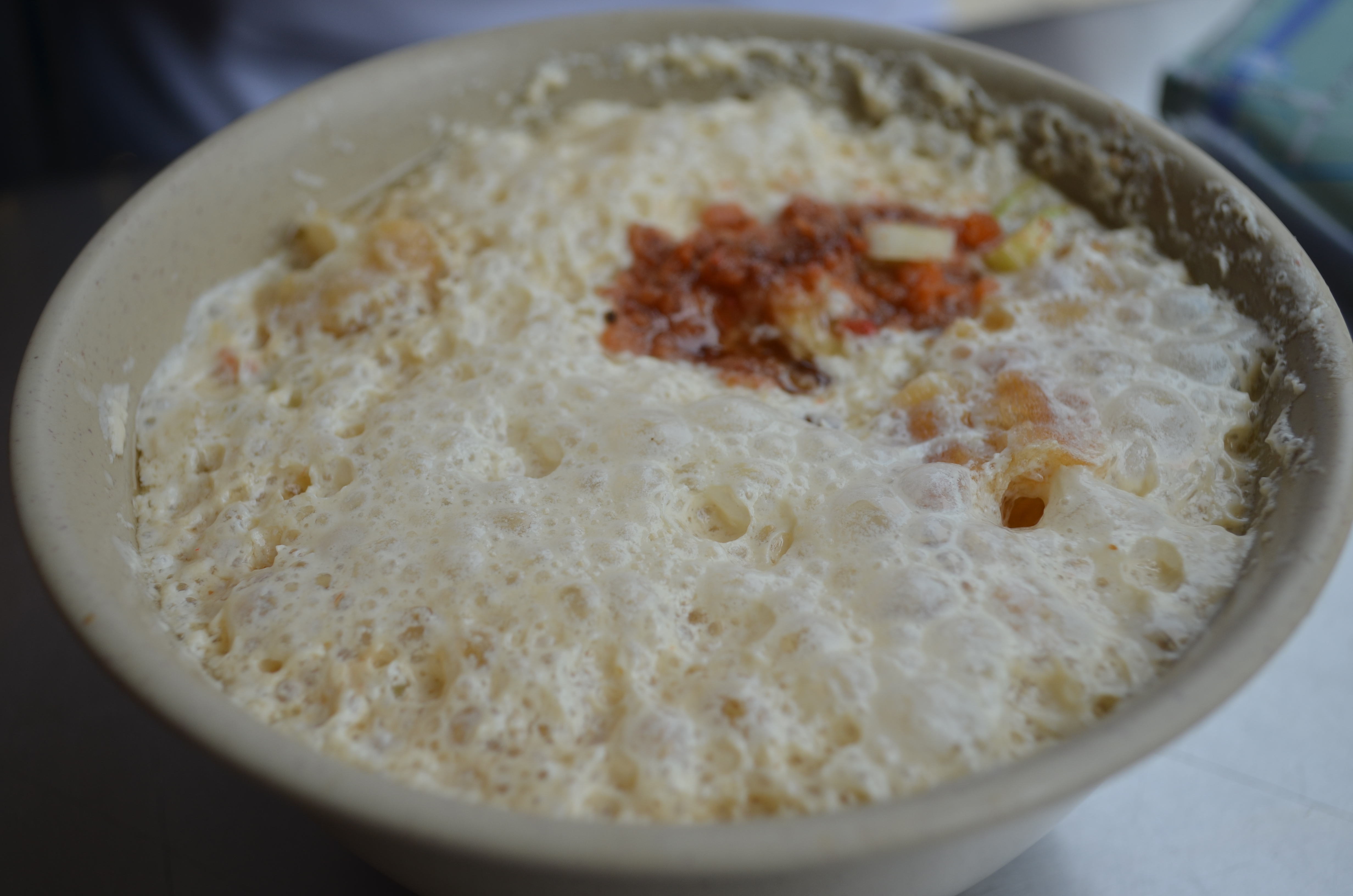 The salty hot soy milk, which has vinegar to kind of curdle the milk, as well as dried shrimp, scallion, chili, pickled radish, and a bit of pork floss for seasoning. I didn’t really take to this, but it’s something Yonghe is known for.