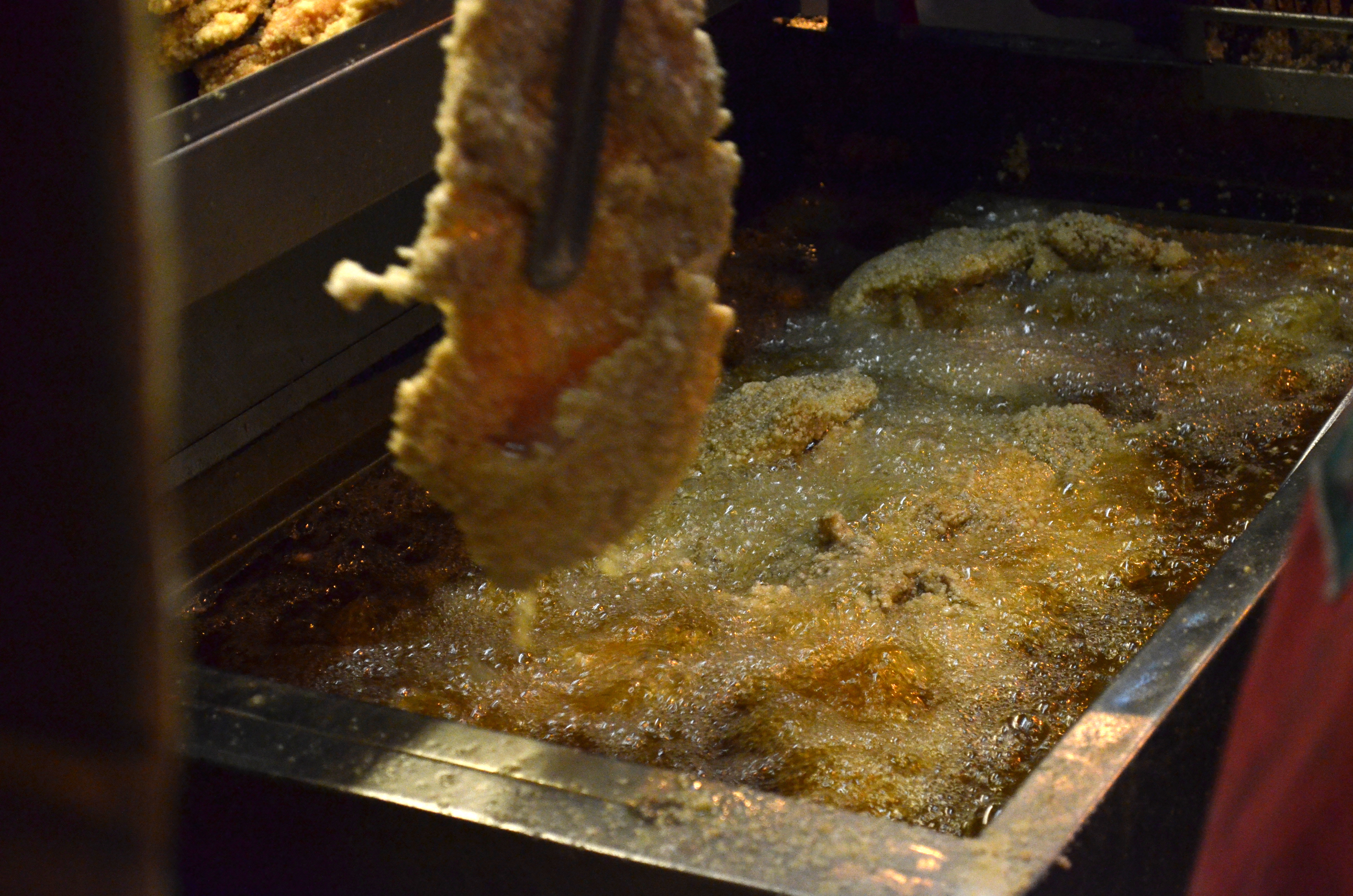 There weren’t any big signs (that I remember, anyway) but somehow we made our way to the stalls where all the grilling and frying and searing and queuing and gawking and pointing and drooling and chewing was happening. Probably on the strength of my nose, frankly. I definitely lined up for the chicken cutlet, which has a uniquely sweet and peppery seasoning that seems to expand even more with the frying. The aroma is hard to distinguish from the oiliness, but you don’t really dwell on that when you’re inhaling the crunchy batter and juicy meat. I couldn’t get through a whole one.