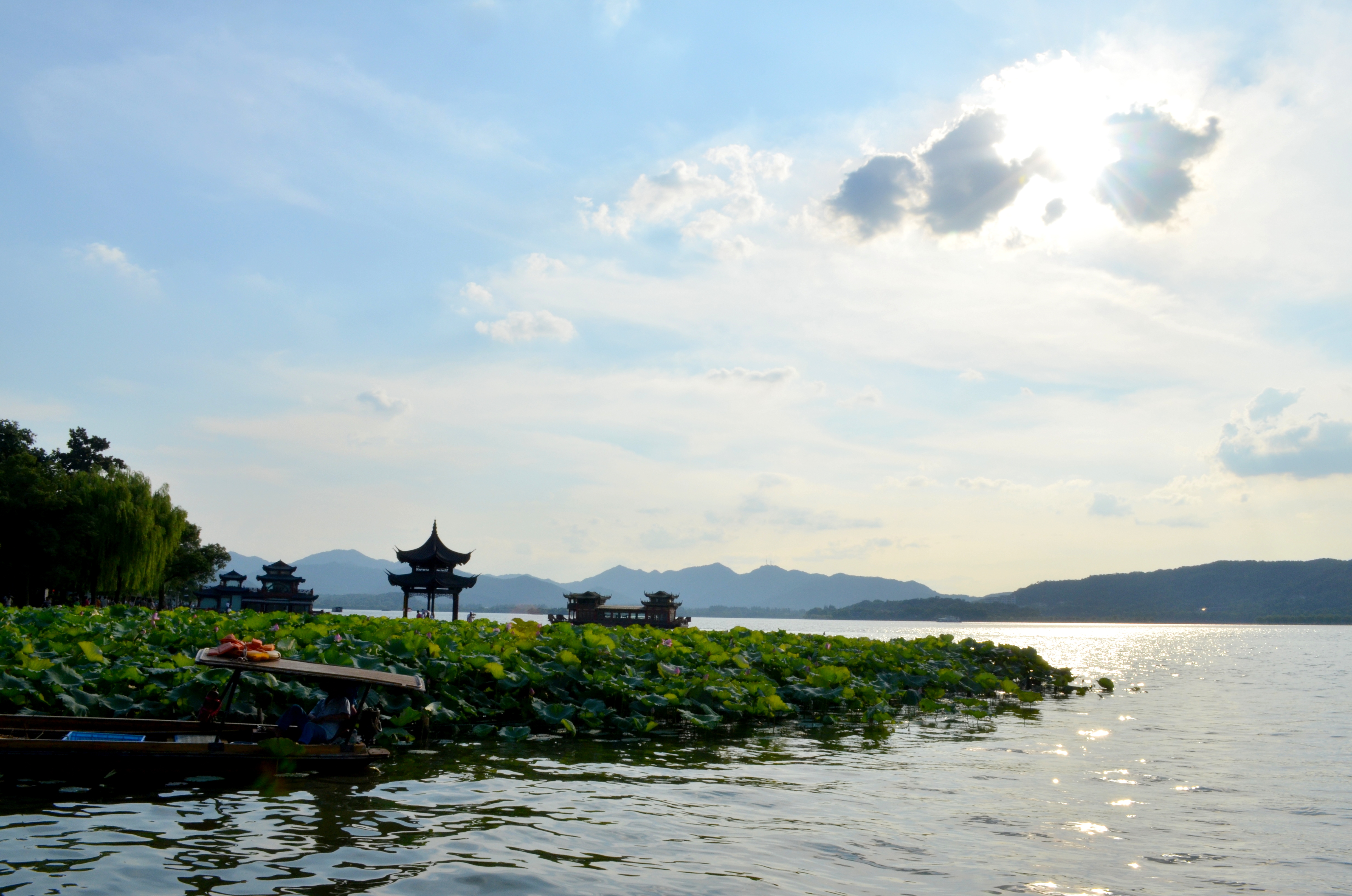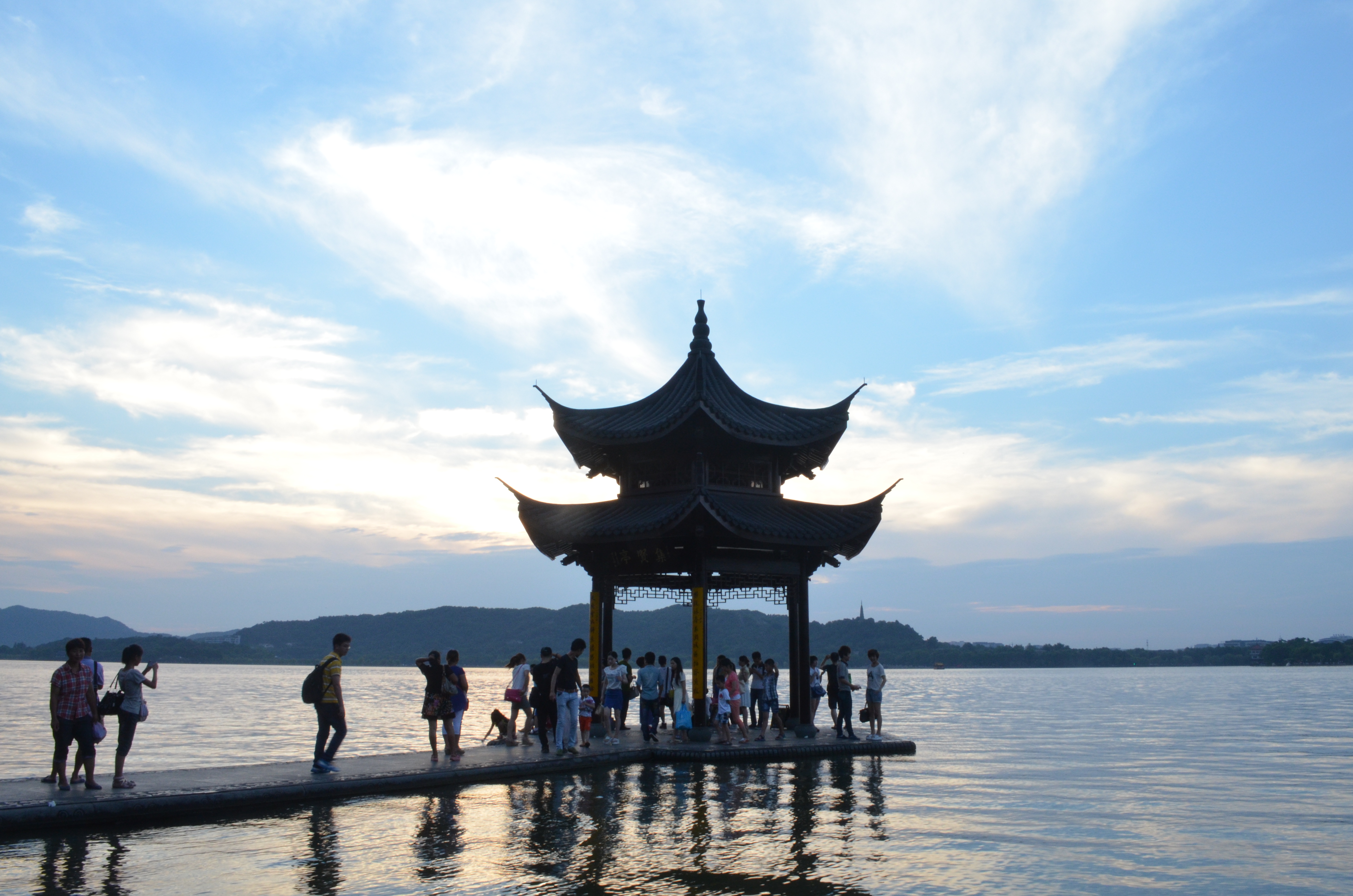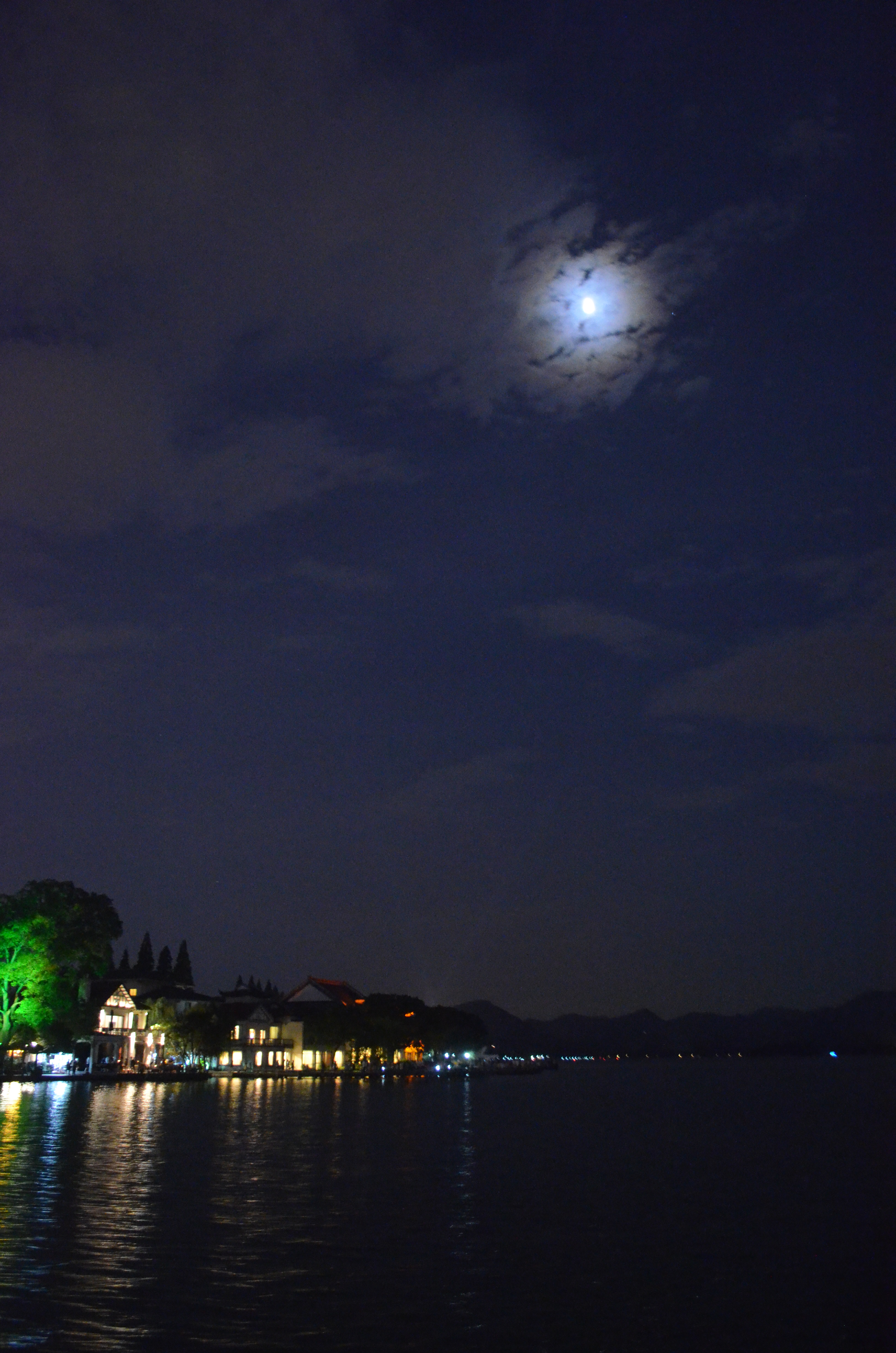 During a weekend trip to hot and muggy Hangzhou, we took a late afternoon stroll around its famed West Lake, one of China’s most well-known bodies of water. The summer sky was breathtaking, especially as it settled into dusk. We took one of the last boat rides around the lake, returning to dock after dark, with the fat, glossy moon hanging over the serene waters.