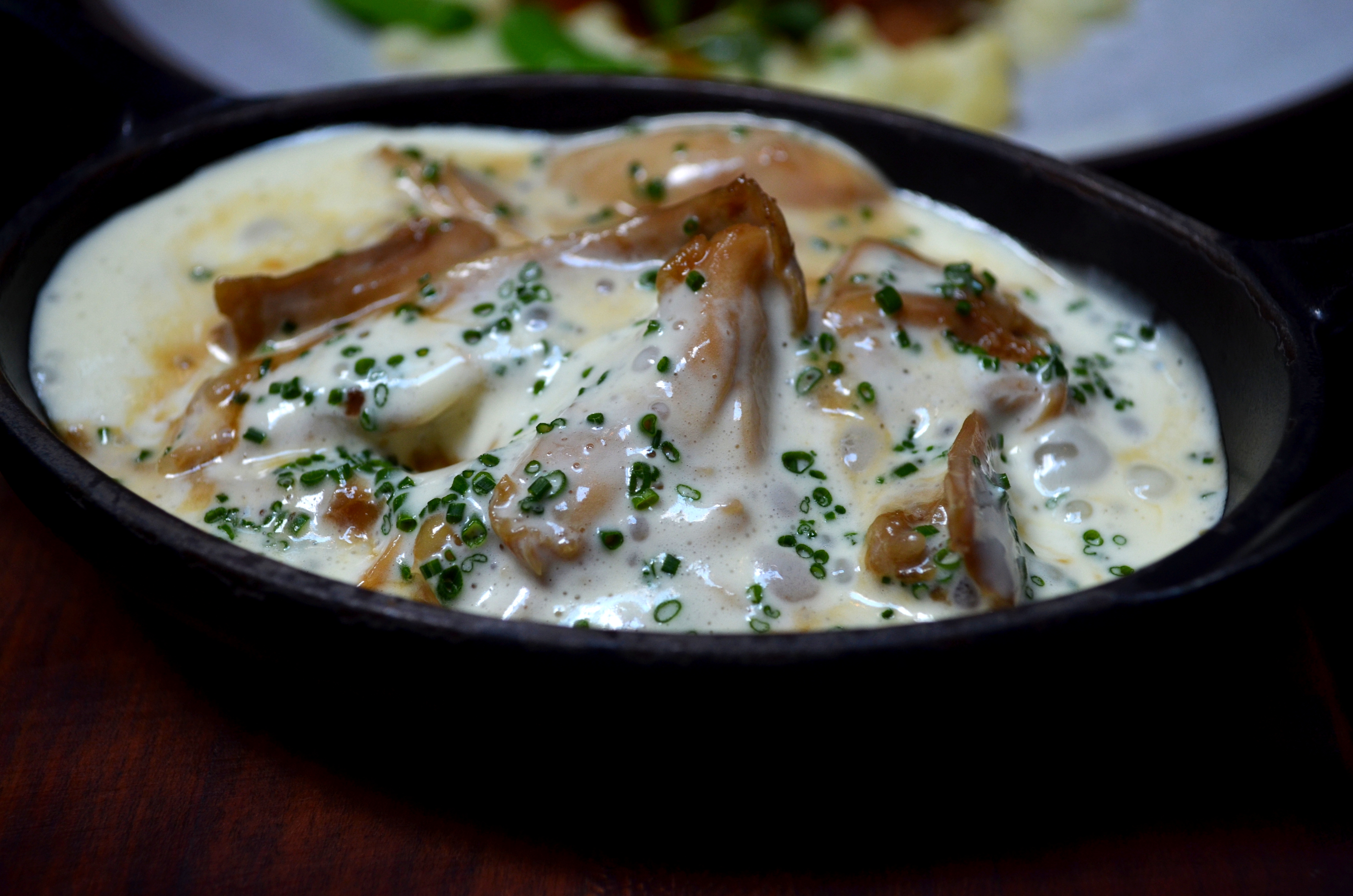 The dark meat had been cooked in a fricassee with mushrooms and shallots and topped with a vin jaune hollandaise (more details on the whole process here at the NY Times).