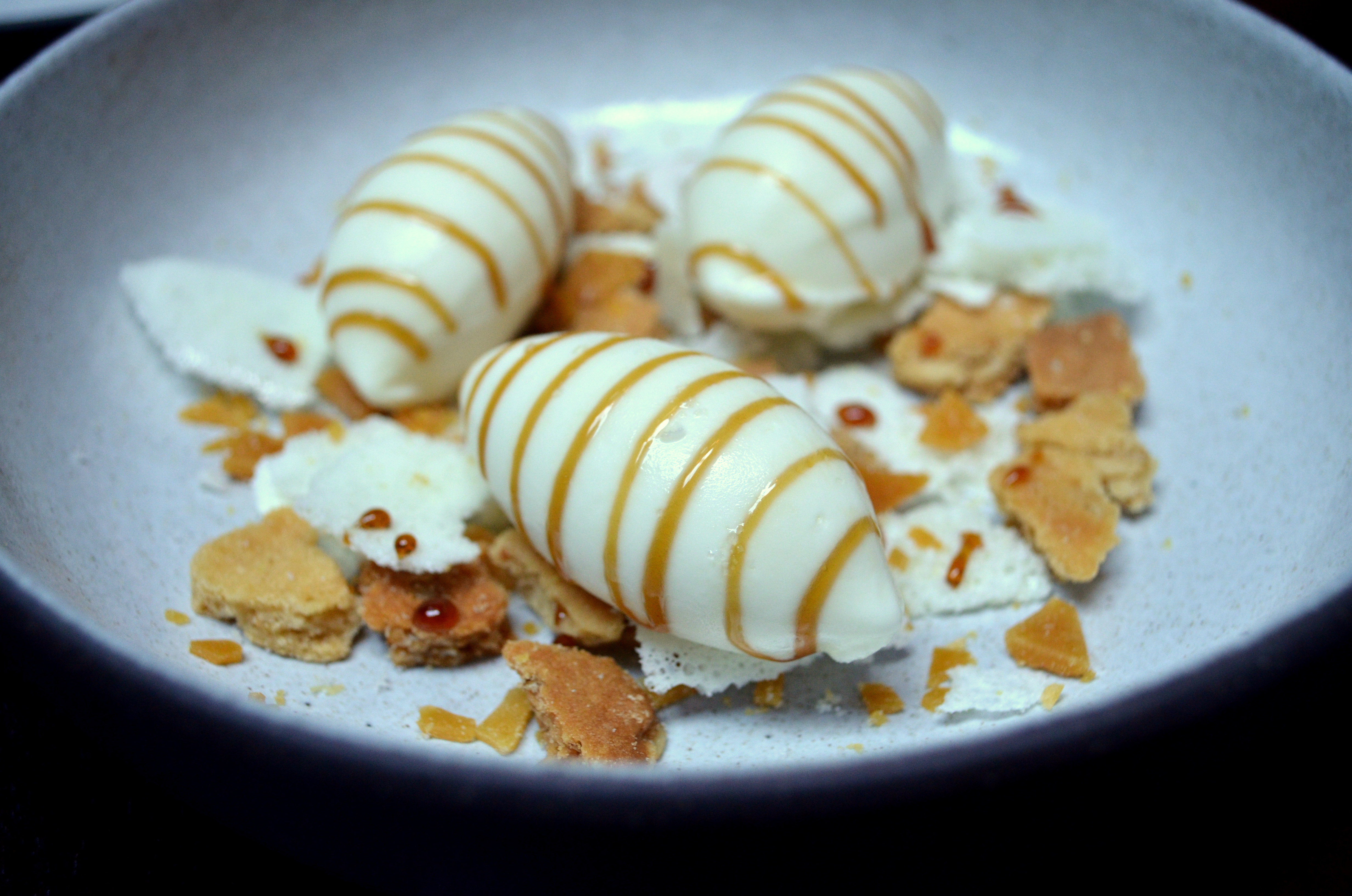 Not to gloss over dessert, the ‘milk and honey’, which was also a bit of a revelation. Simple, just two flavors, one of which is milk. But so interesting – a hodgepodge of texture and temperature (ice, ice cream, shortbread, brittle, syrupy honey) and such intensity of flavor (particularly of the honey). Really well-thought out. And just like the previous courses, a beautifully composed dish.