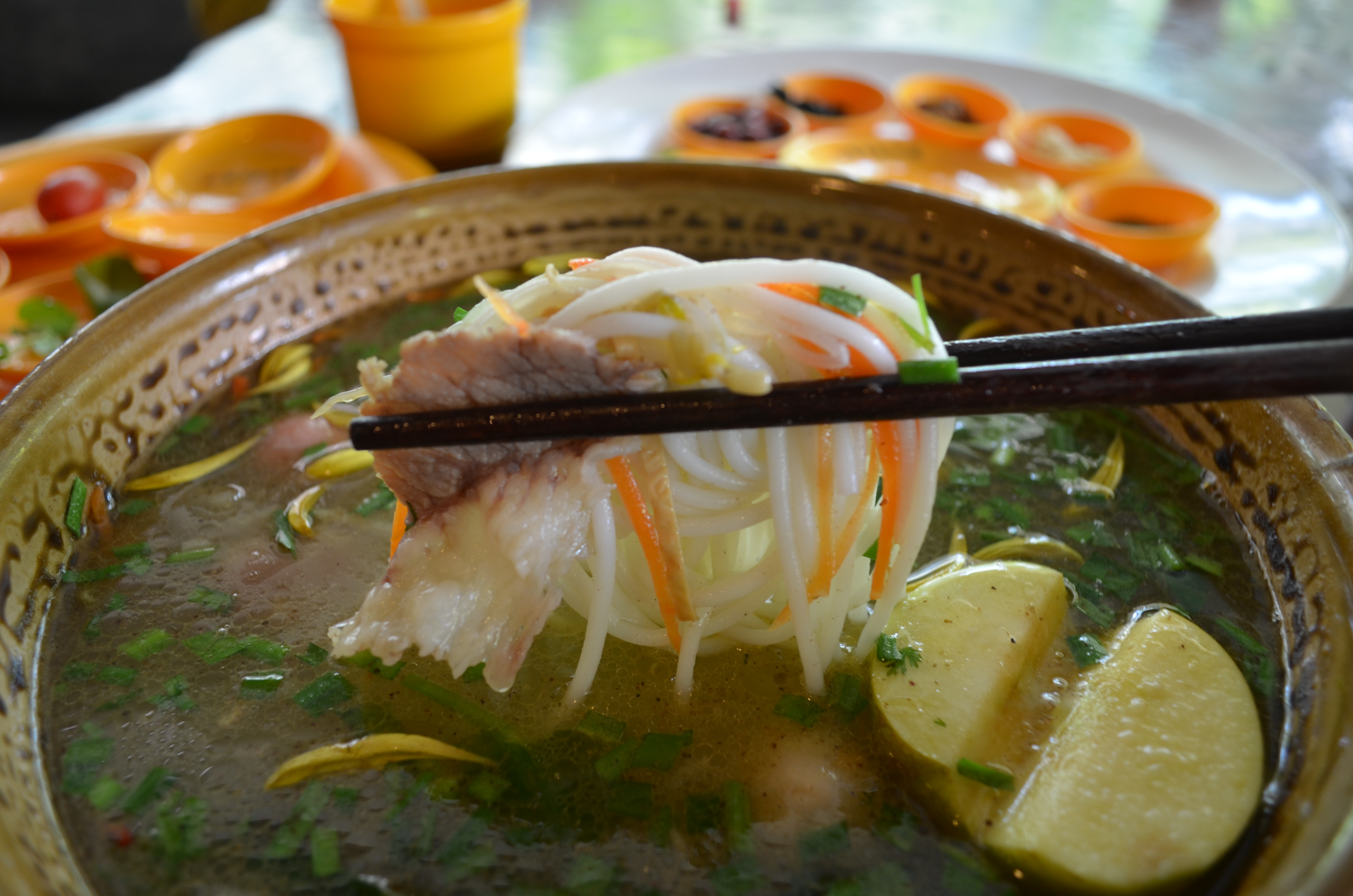 On my second bowl, I began to like even more the concept of bridge crossing noodles, in part because of the diversity of ingredients, and experiencing how each interacts with and develops in the salty heat of the broth, how each contributes to the texture and flavor of bites. Each serving is a diaspora of color and aroma, and with some experience, you can really tailor each bowl as you like, so long as you enjoy the soup base.