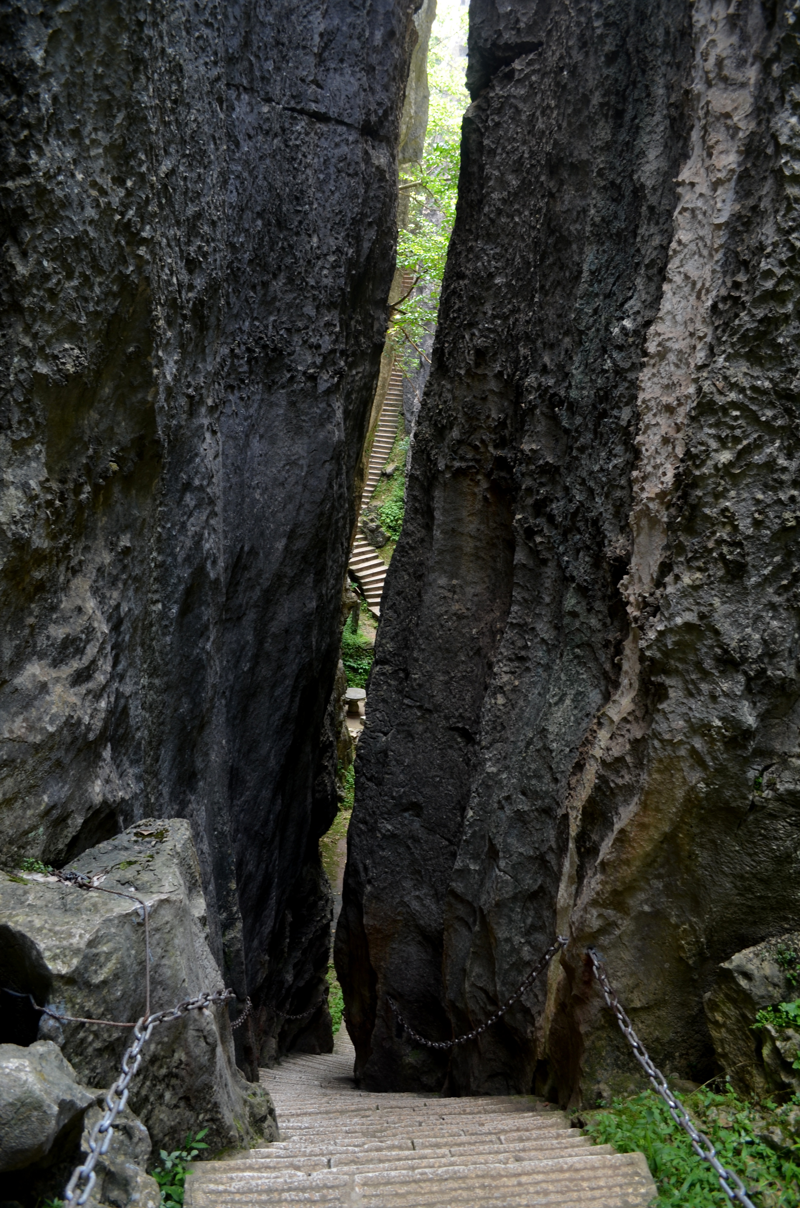 We covered perhaps half of the park, almost all secluded. There were steep, claustrophobic ravines, with glimpses of light and green shimmering through.
