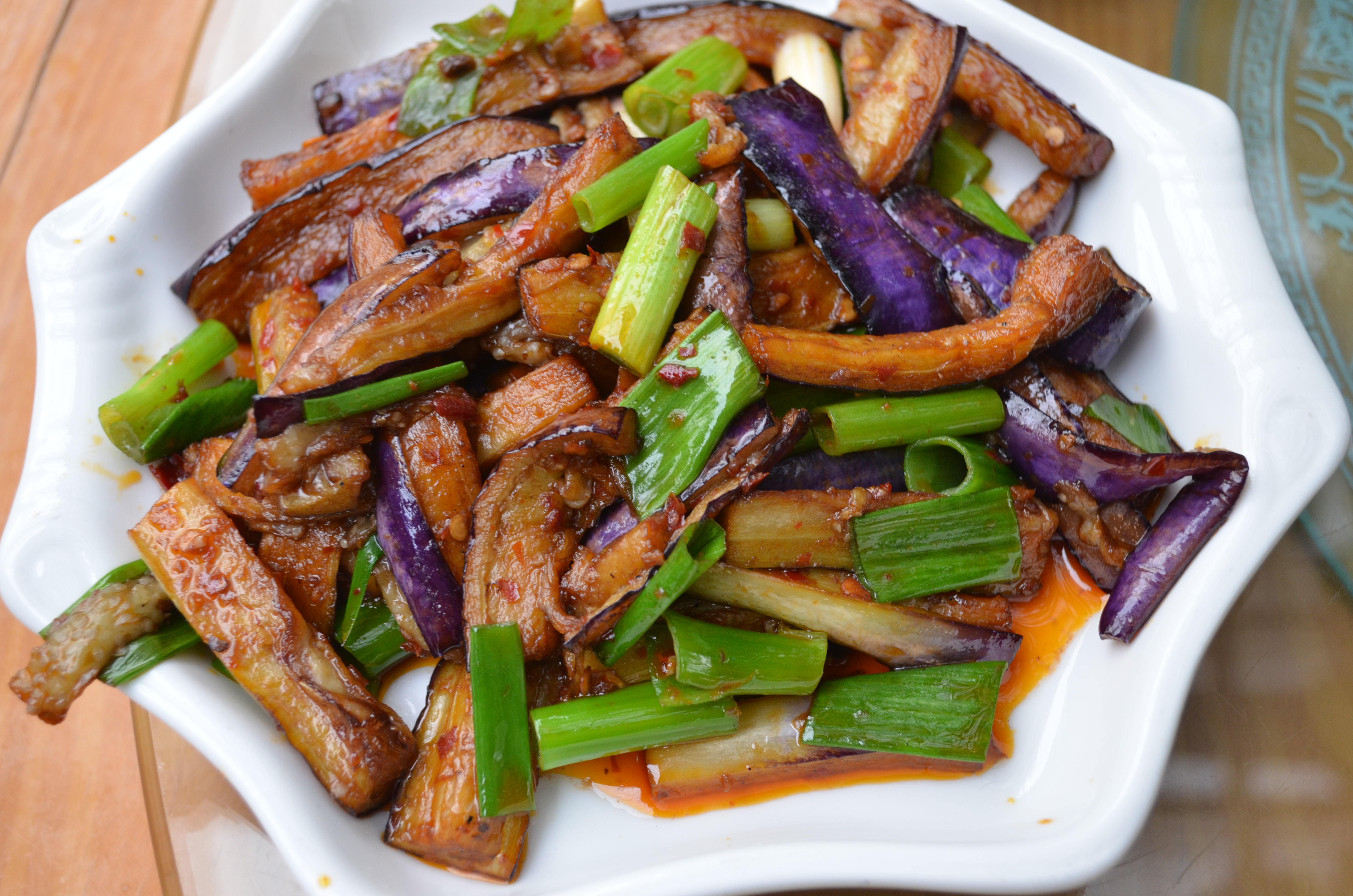 Some chili eggplant with scallions.