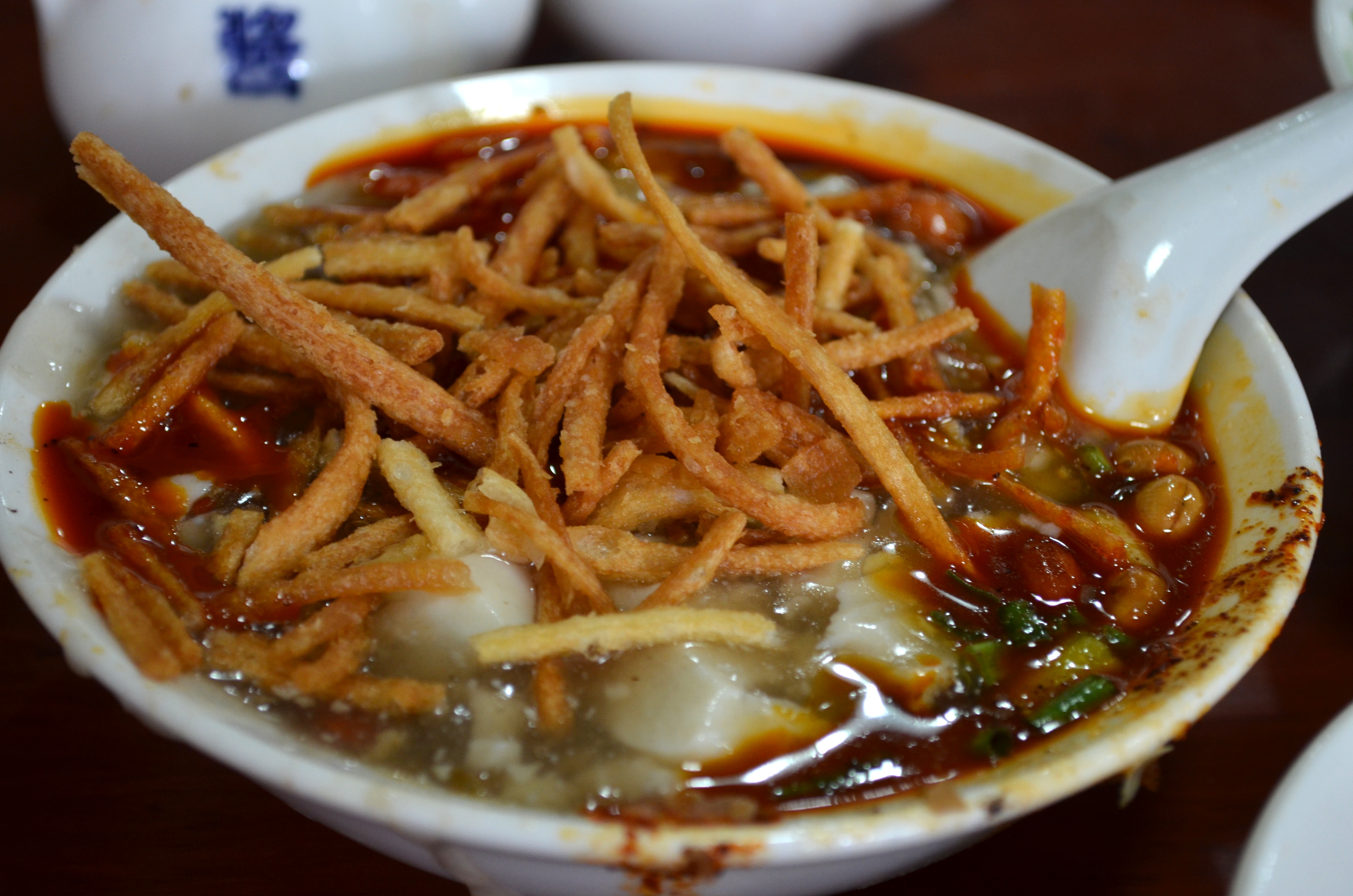 Xiao Tan Douhua (小谭豆花, Dianping) is a celebrated snack shop in Sichuan, churning out many of the classic Sichuan small plates, like red-oil dumplings (抄手) and dan dan noodles (担担面), that you’ll see on even more traditional sit-down restaurants’ menus. The specialty here is their extra-soft tofu (豆花), which is featured either as soupy dishes both sweet and savory, or as meaningful additions to noodles.
