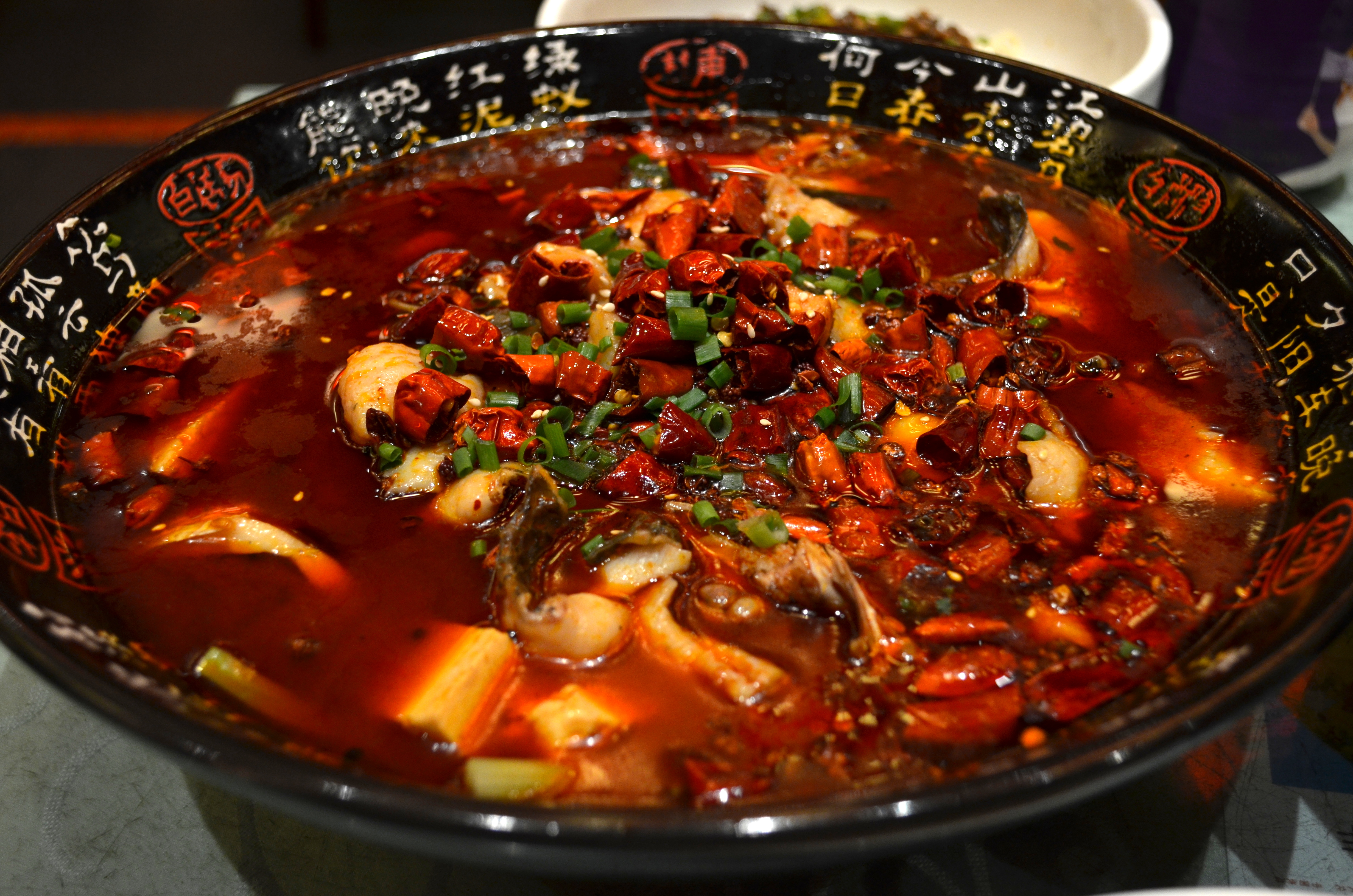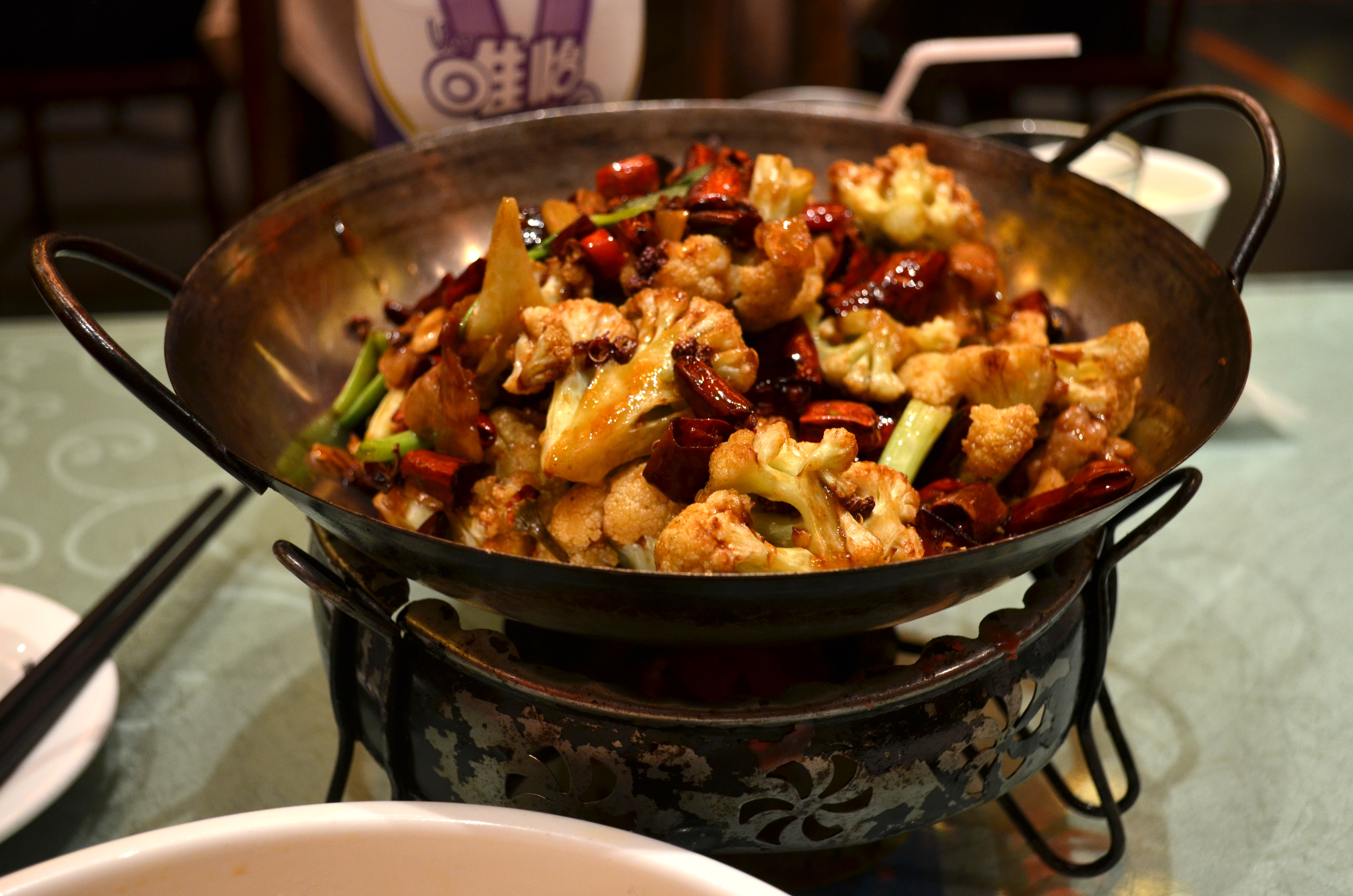 So when I came back with Myra, we also ordered one of these, plus a cauliflower hotpot, some red-oil braised fish, and twice-cooked pork. One thing I can’t fault Chen for is the feed-a-family sizes of their portions. The cauliflower was very tasty, especially when the pot had stabilized in temperature and the physical heat helped intensify the effect of the dried chilis. As a Hunan chef explained to me once, the key to dry hotpots is to have enough oil so that the pot doesn’t burn, which then tends toward very greasy dishes. This was an exception, deeply flavorful without being drowned in oil.