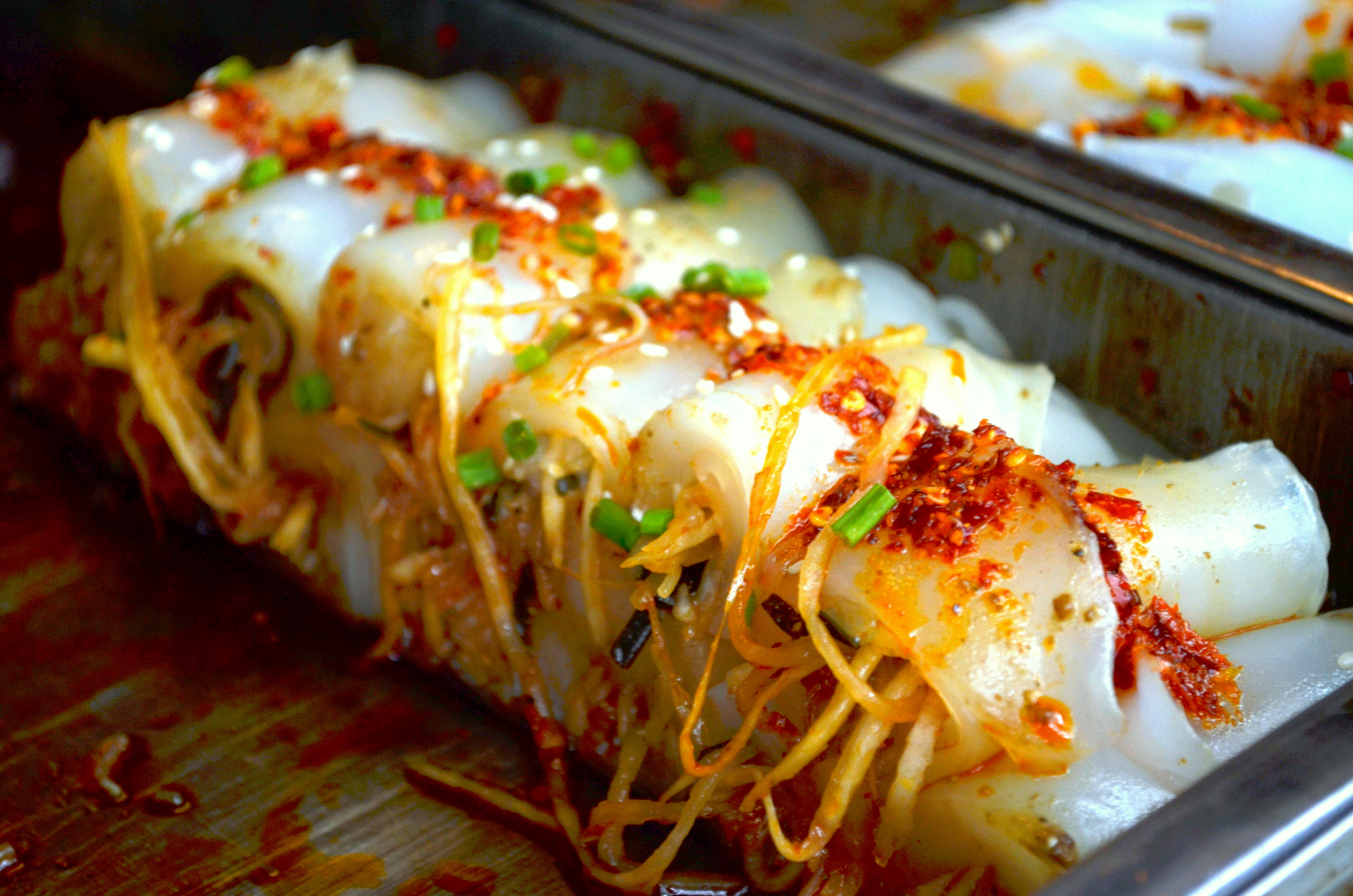 These mung bean jelly rolls were at once light, refreshing, and deceivingly spicy (partly because of the light and refreshing part, but also because of the vinegary, cilantro-tinged complexity of the spice). Sort of like a great, cold papaya salad at a good Thai restaurant, where even the intense heat won’t stop you from eating.